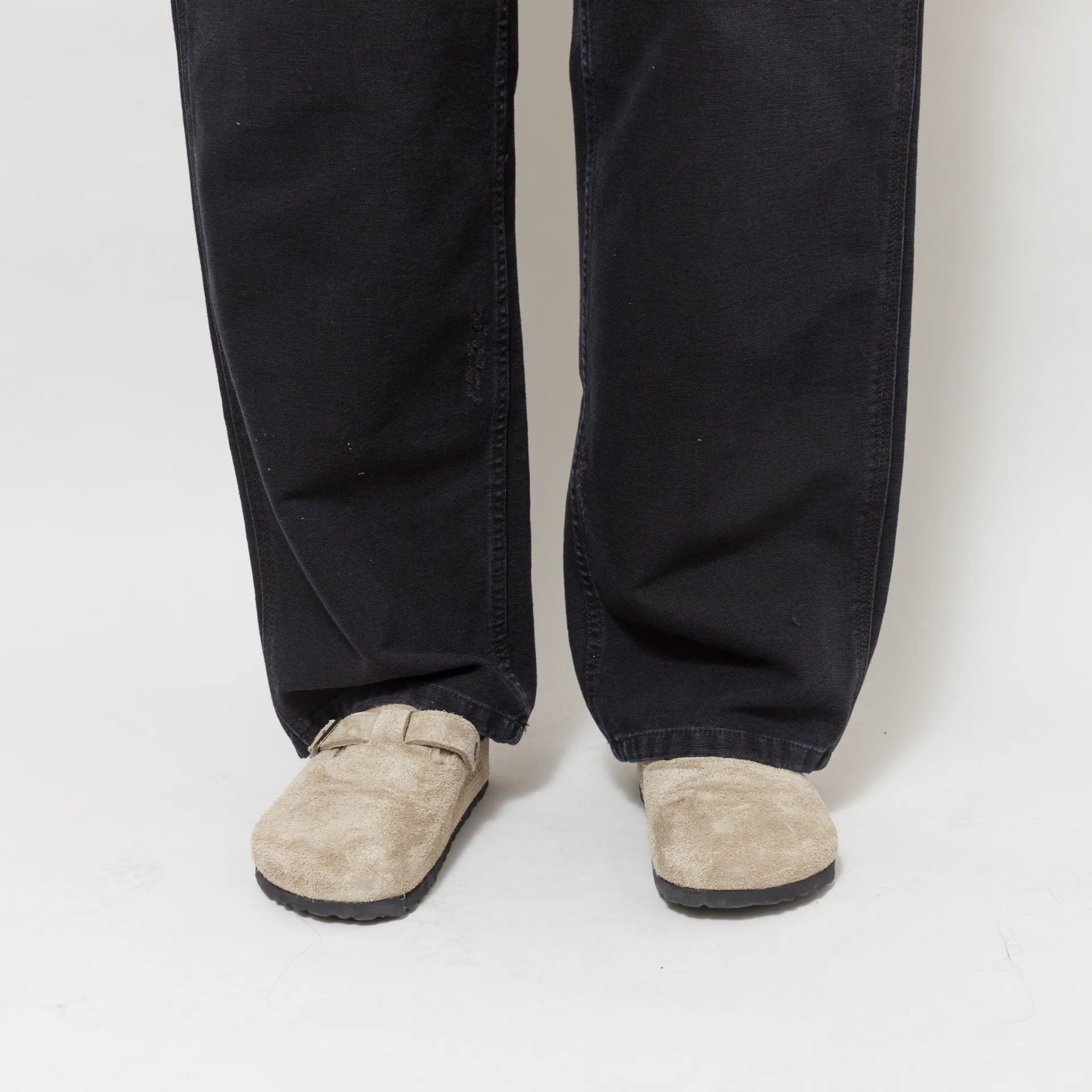 A pair of utilitarian-inspired trousers from Carhartt WIP, constructed from heavyweight cotton Dearborn Canvas that has undergone a grind wash, a process which results in a slightly distressed, worn-in finish. They're cut with a relaxed fitting waist and a loose, straight leg. Featuring a zip and button fly, leading to a classic belt loop waistband, with triple-stitch detailing, tool pockets and a hammer loop. The design is complete with a classic four-pocket design and the Carhartt Square label to the back.