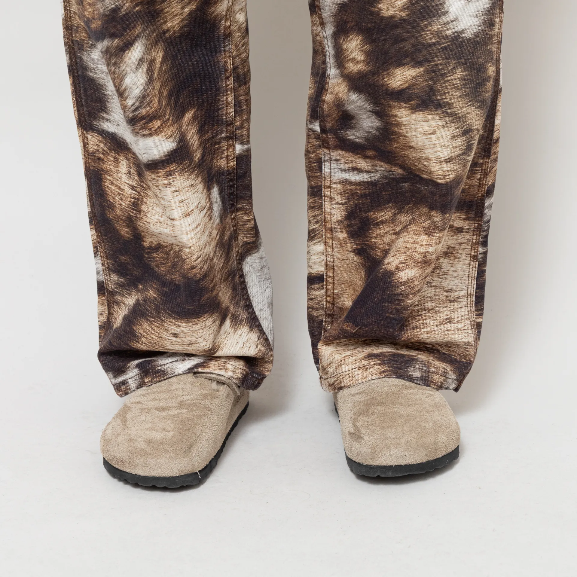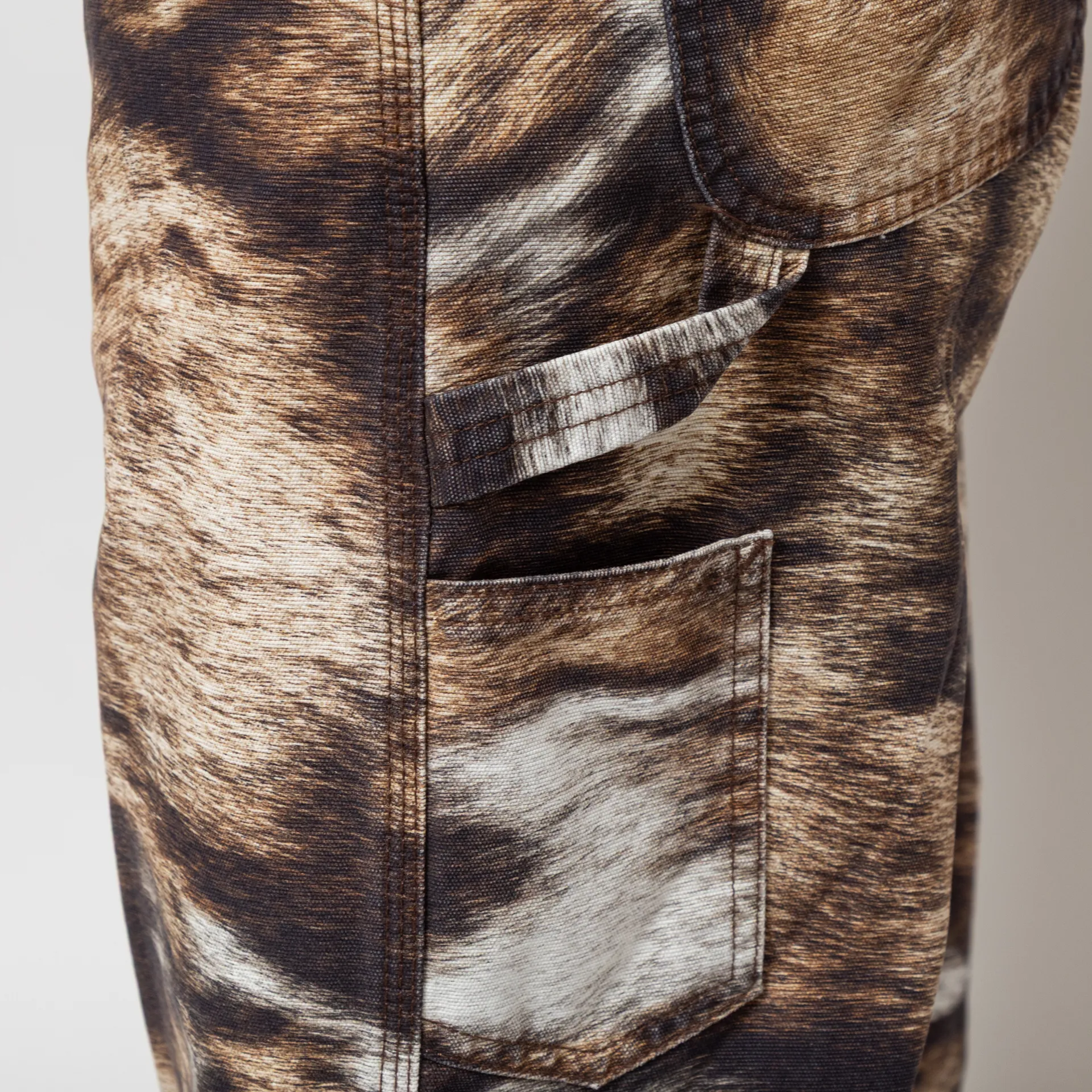 A pair of Brandon Single Knee Pants from Carhartt WIP's womenswear collection, constructed from midweight Hubbard canvas with an all-over wild dog print.