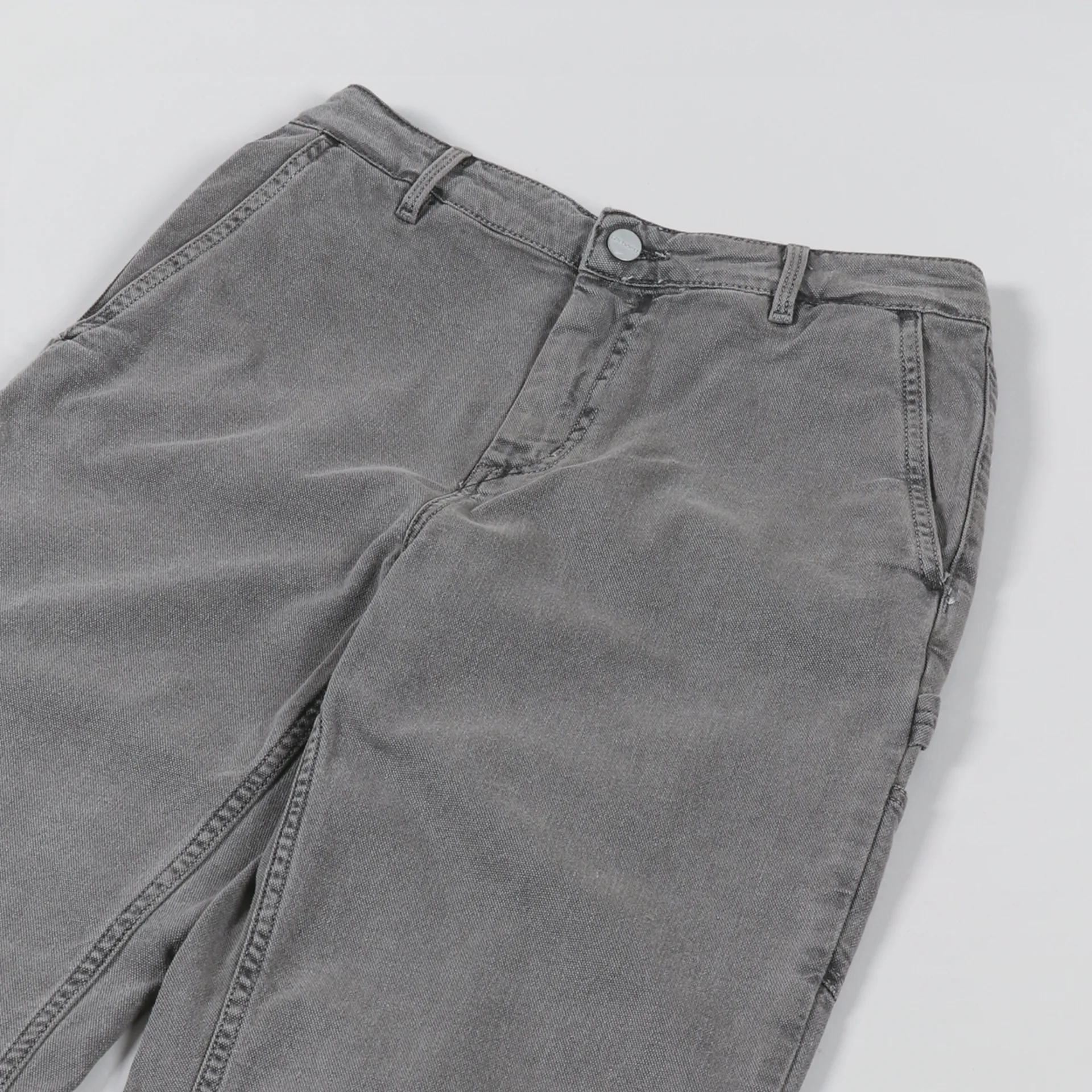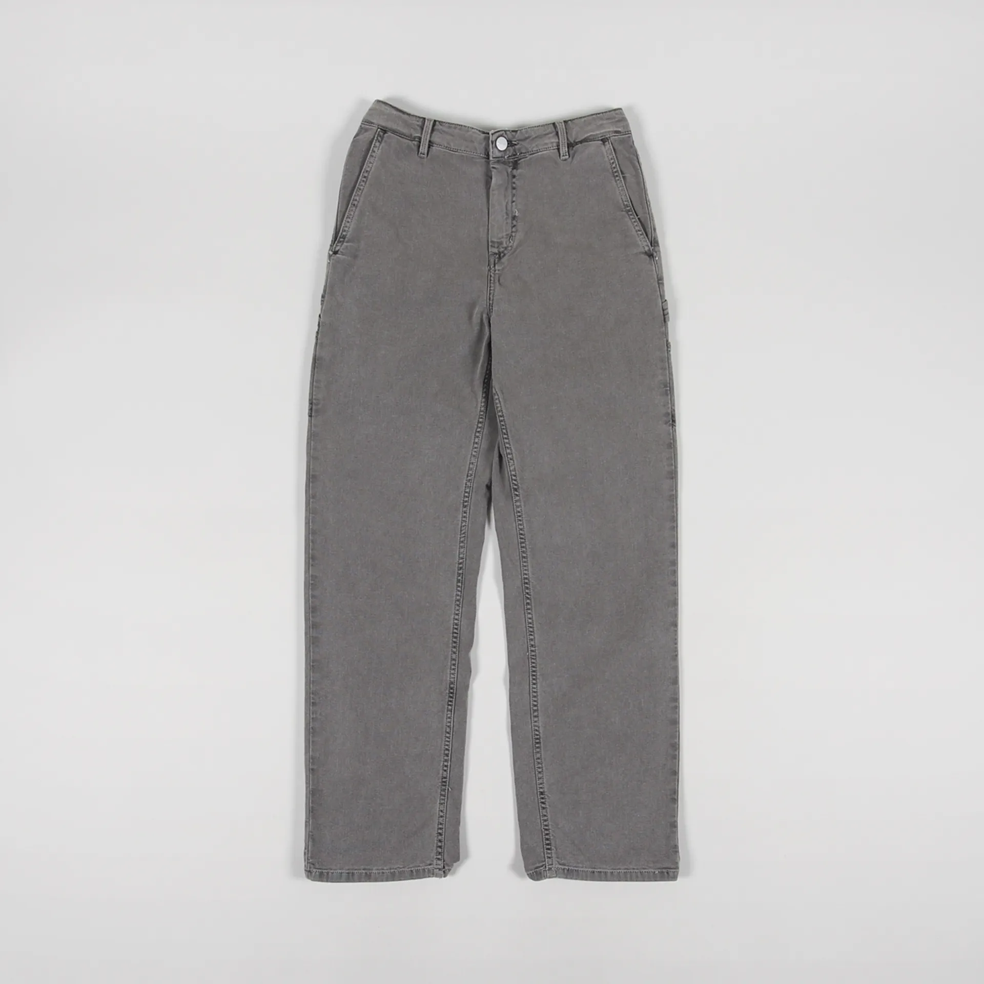 A pair of jeans from Carhartt WIP's Women's collection, made from a durable yet comfortable 97% cotton/3% Lycra 'Hudson' Stretch Canvas with a zip and button fly and a regular four pocket design plus painter/tool pockets to the legs.
