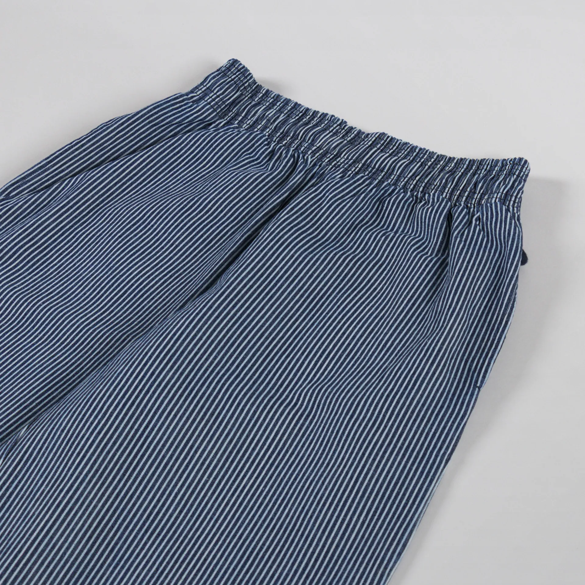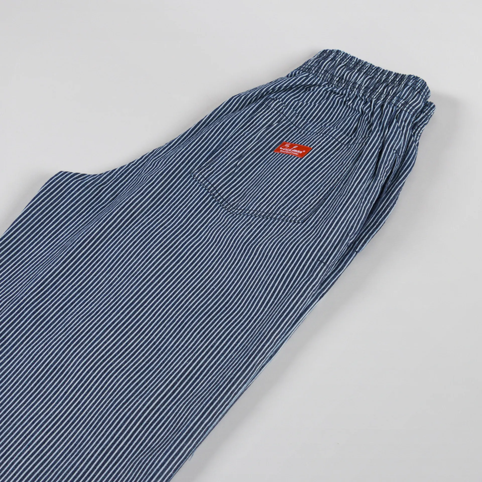 A pair of trousers from Cookman, cut in a relaxed fit around the hips with a lovely wide leg and an all-over striped design. They're constructed from durable cotton hickory and have an elasticated waistband with drawstrings to adjust. Finished with a four-pocket design and a woven logo patch.