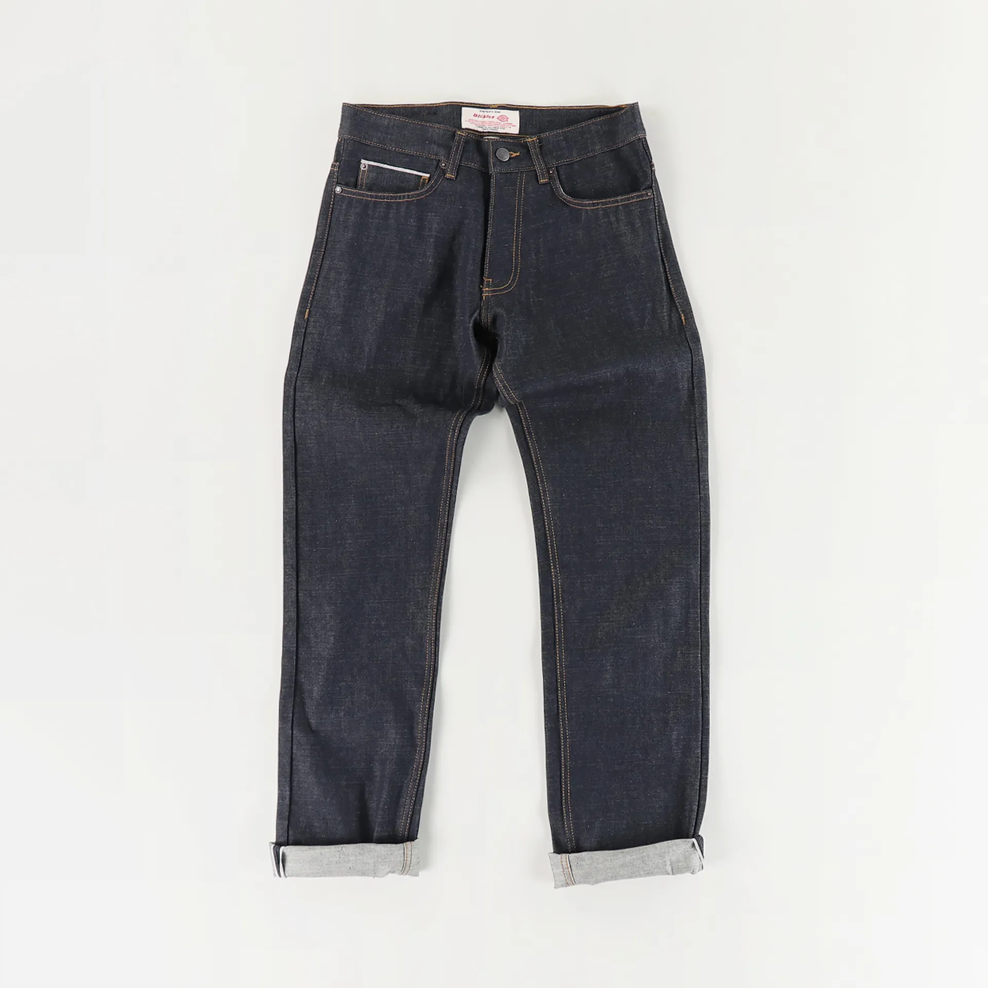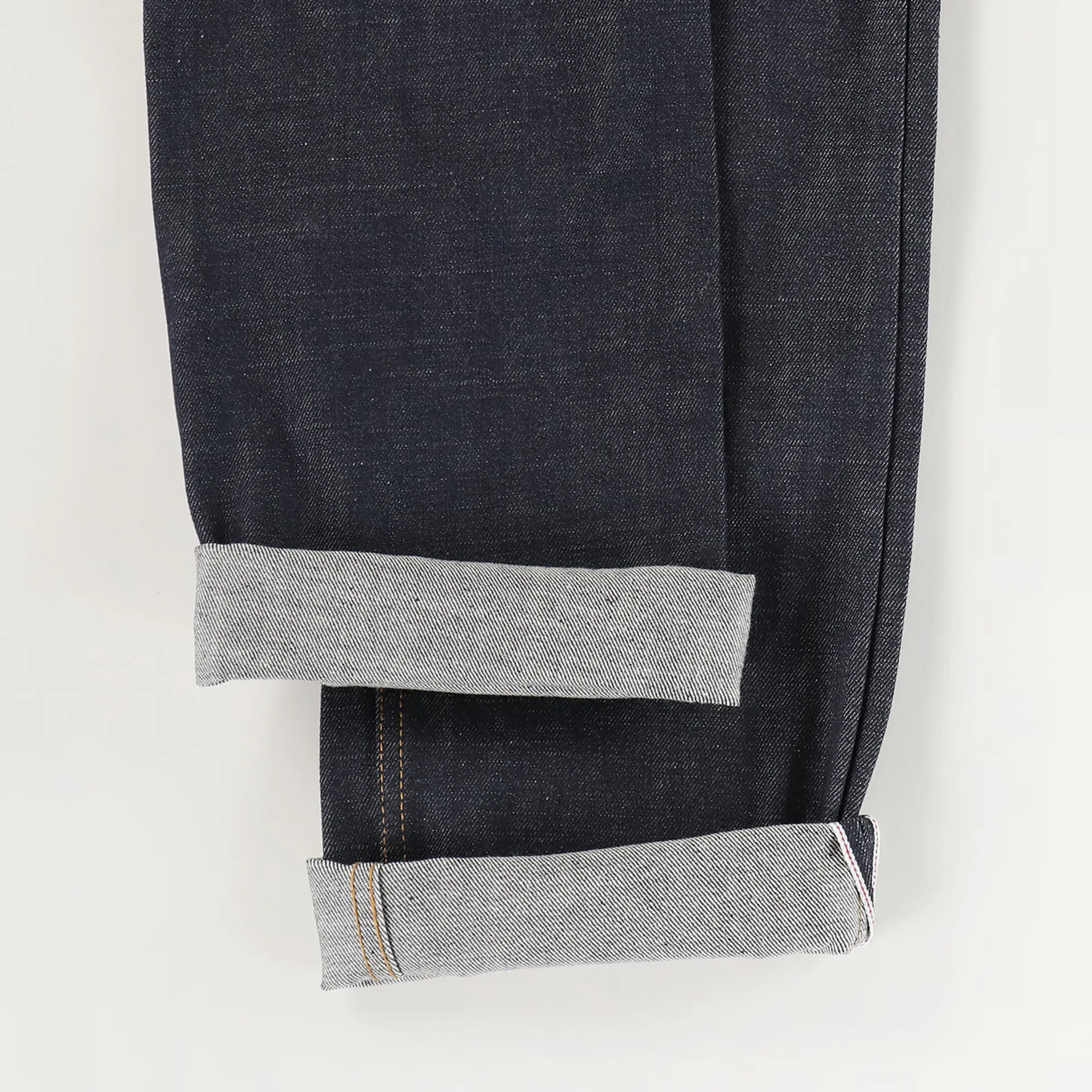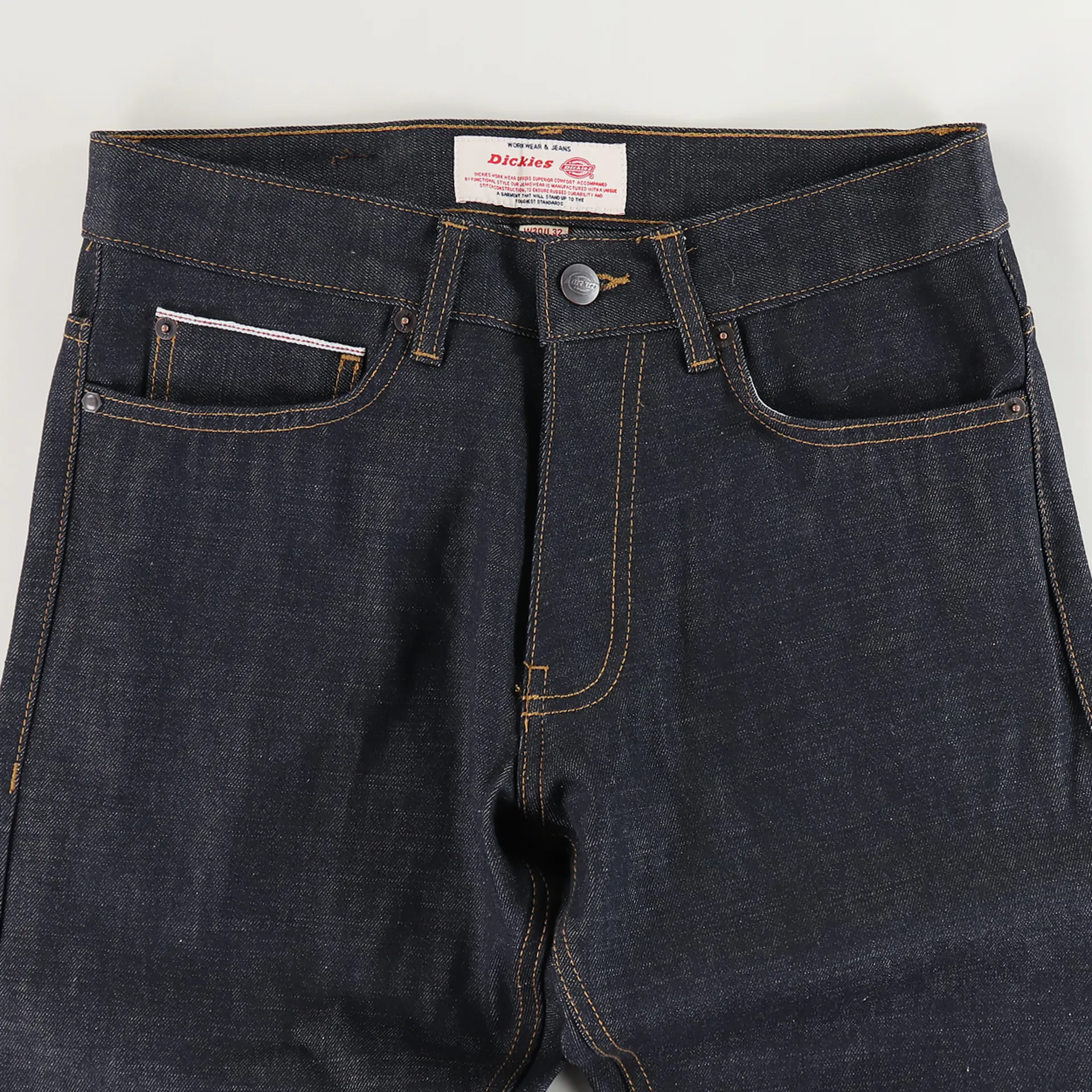 A pair of jeans from Dickies Lifestyle made from 100% cotton with leather detailing and a selvedge leg. It's a regular straight fit with a five pocket design.