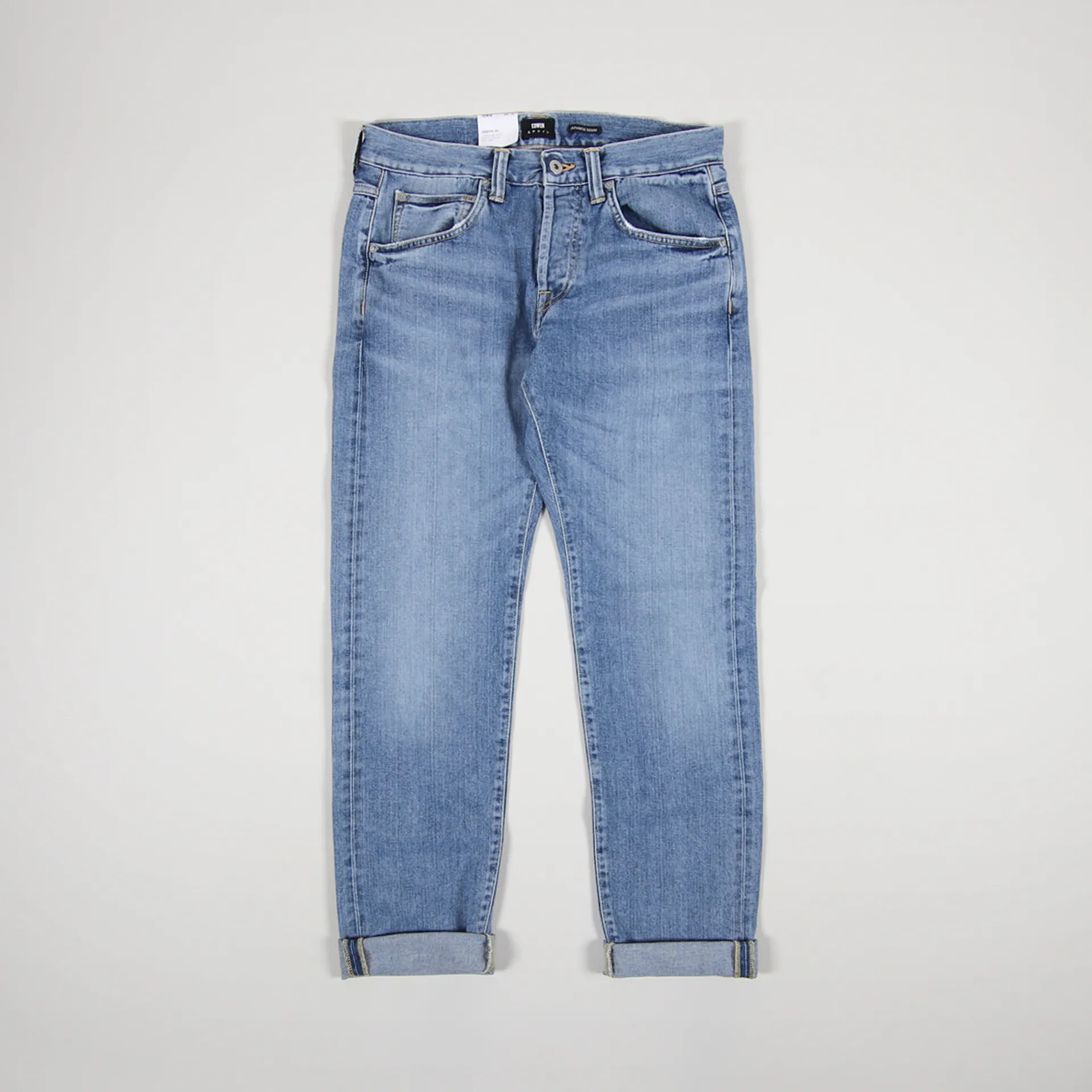 A pair of jeans from Japanese denim company Edwin, made from a comfortable yet durable 100% cotton denim with a five pocket design and a buttoned fly.