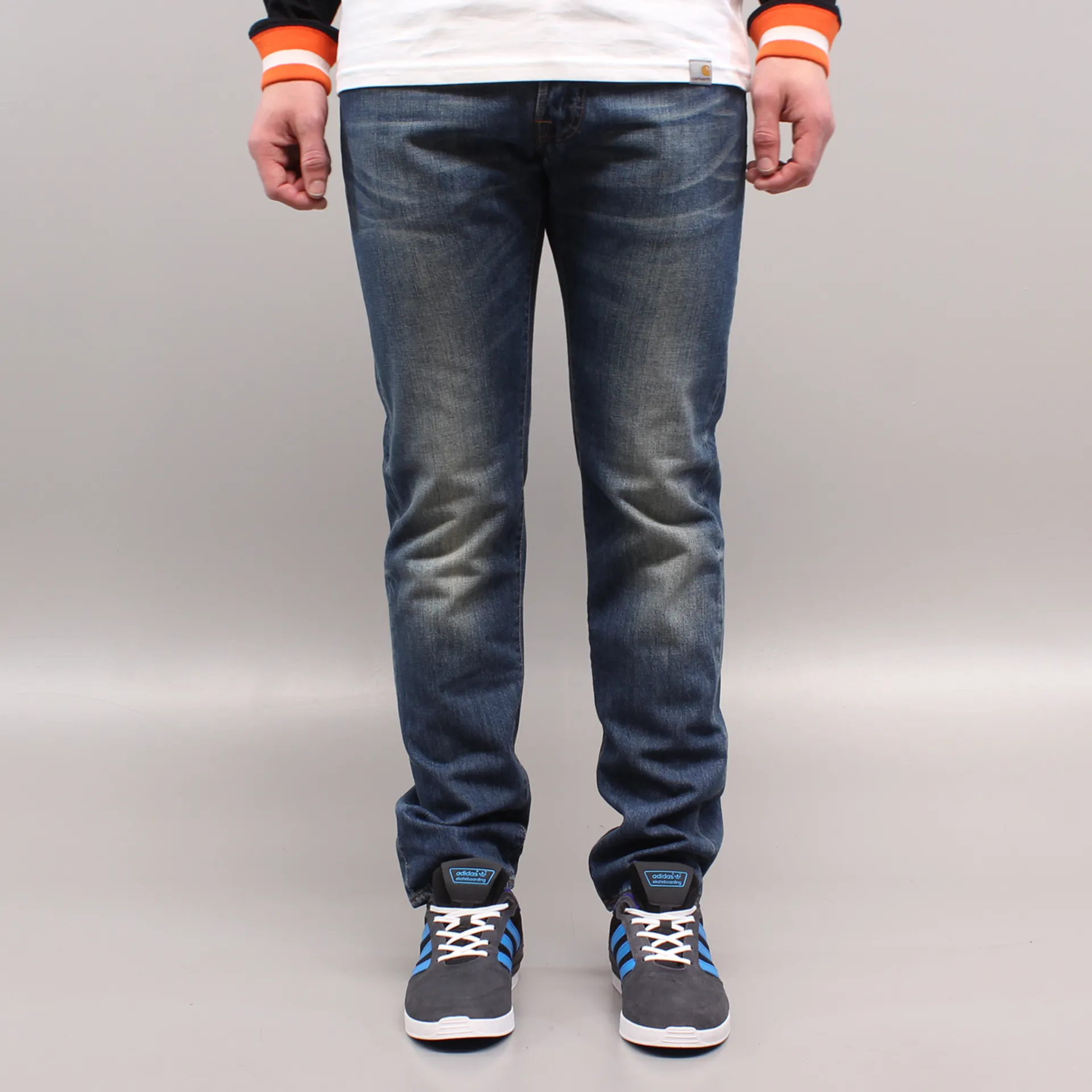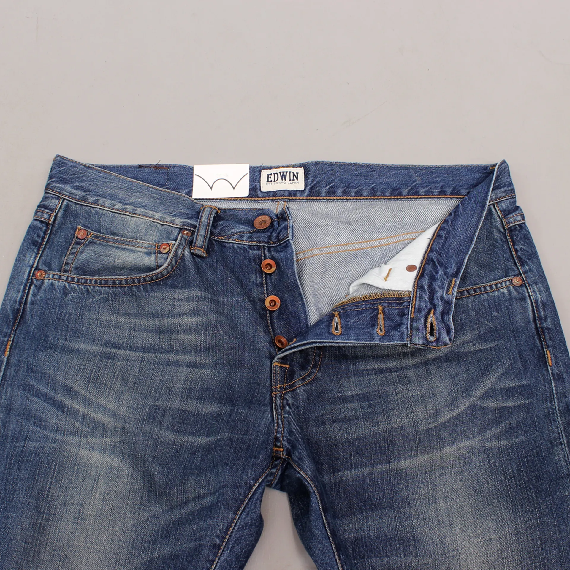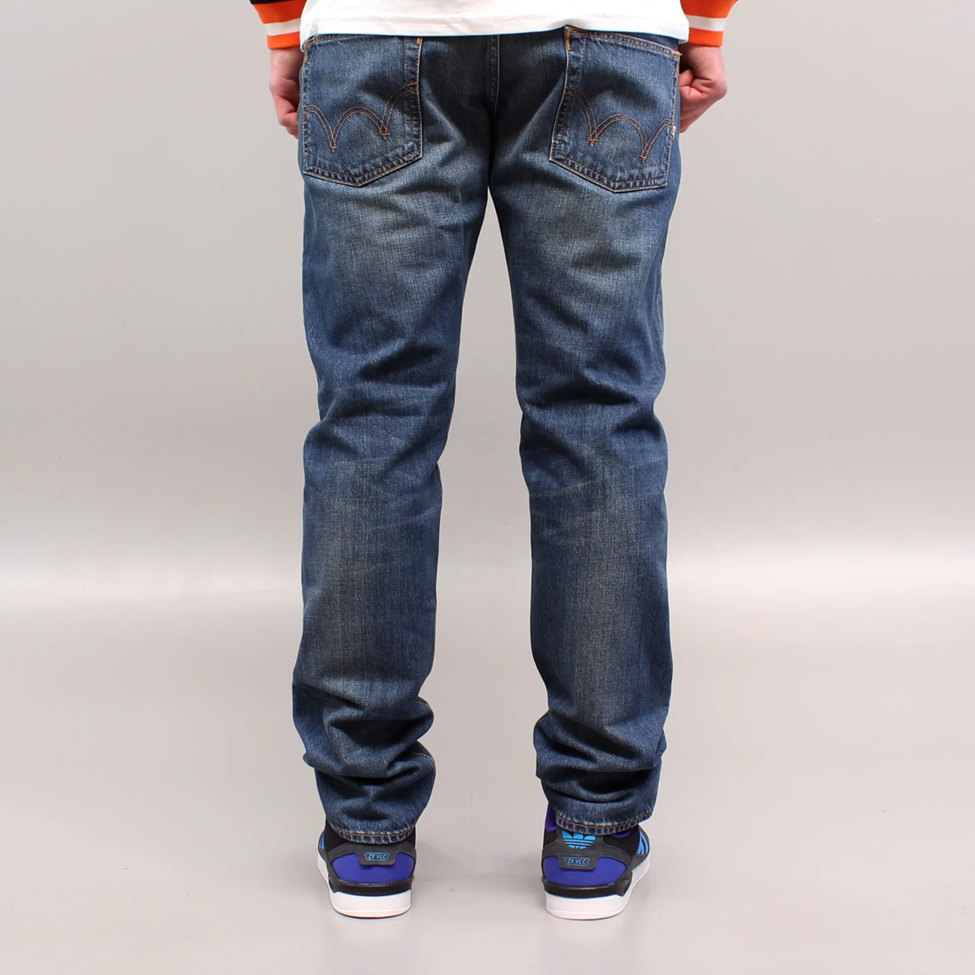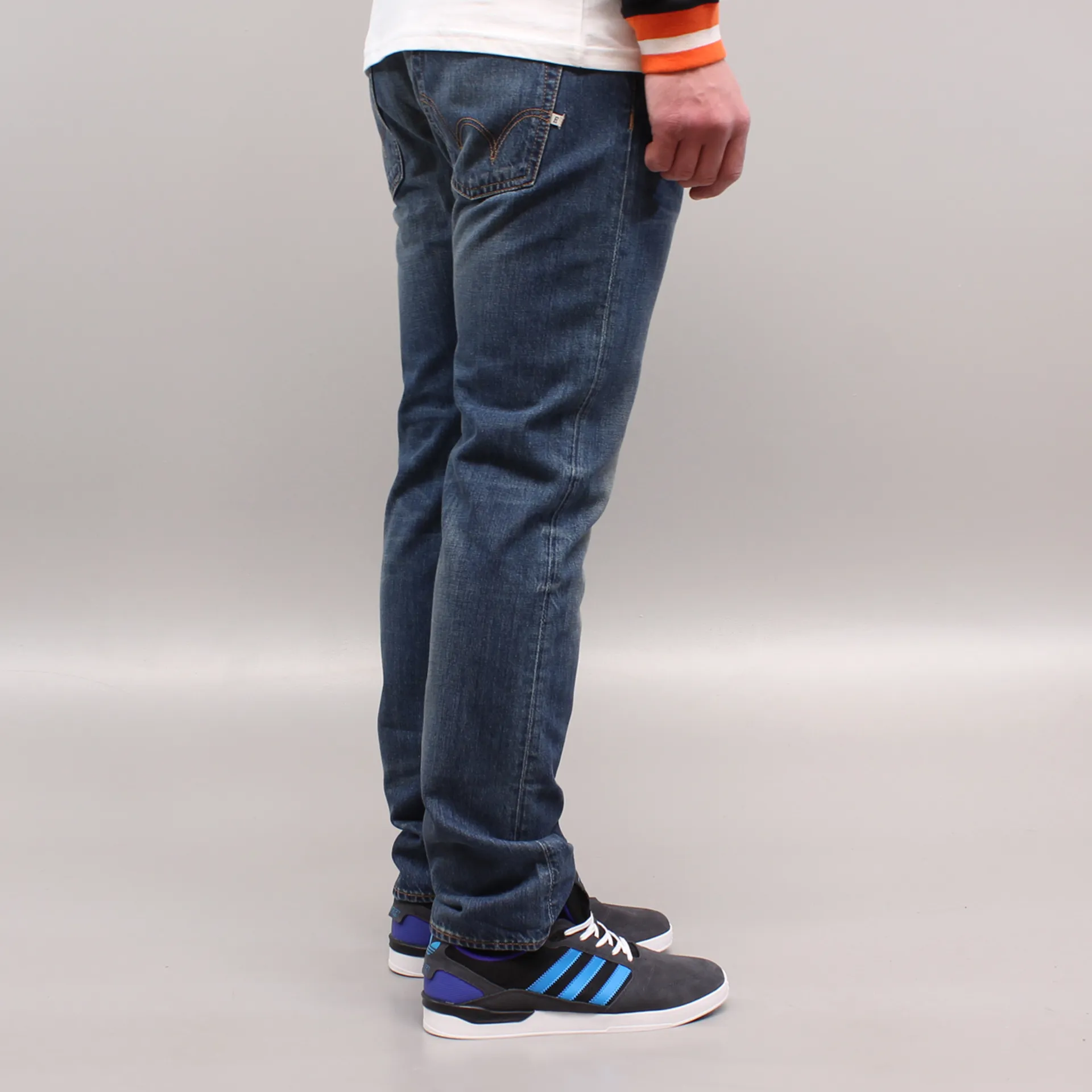 A relaxed tapered fit with a blue mid used wash by Edwin.