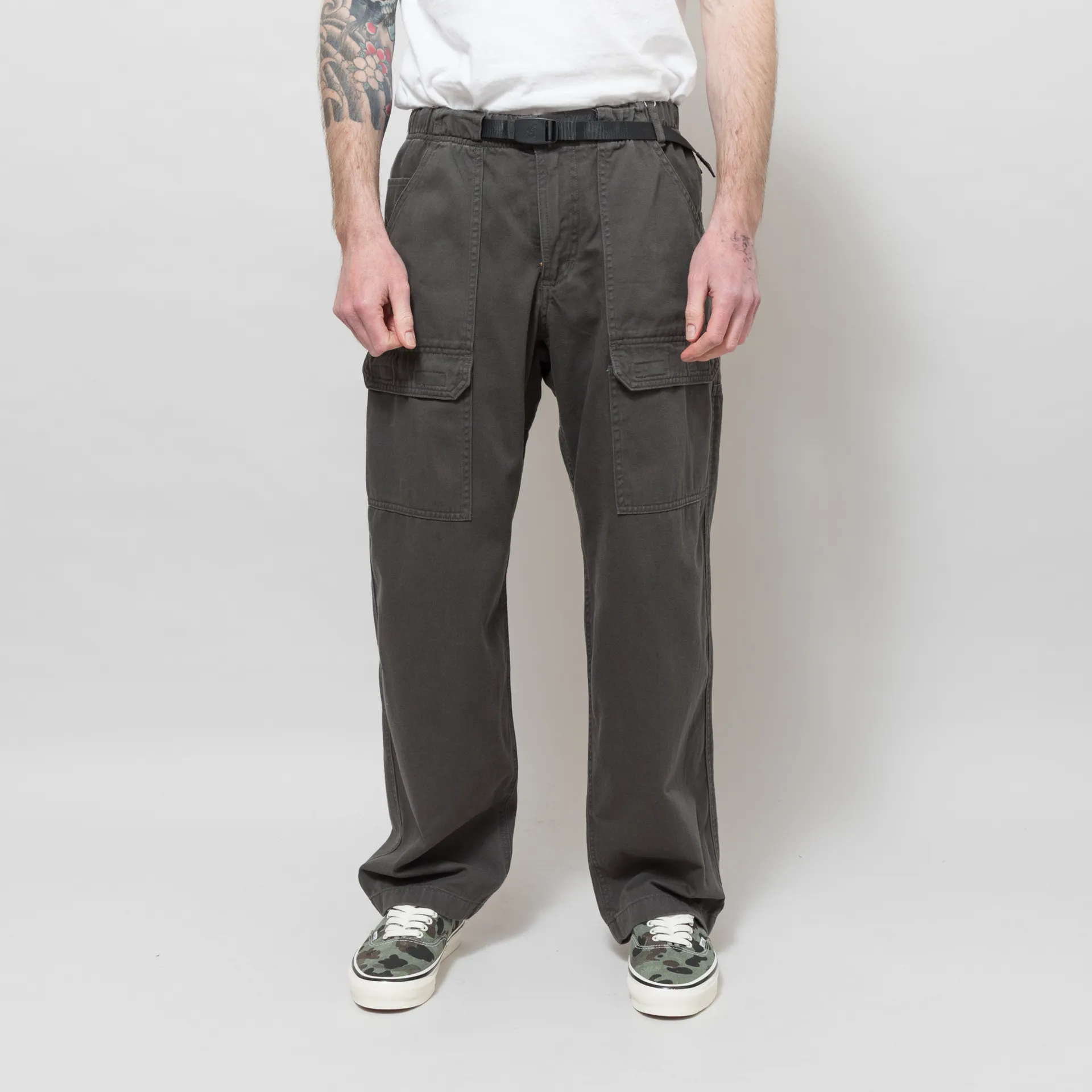 The Gramicci EQT Pants have been cut in a roomy, baggy silhouette for that laidback look we all dig, crafted from durable cotton twill. They feature a massive 8-pocket design - two velcro patch pockets, four slanted pockets, and two coin stashes. Finished with the iconic Gramicci belt, an adjustable feature we all love here at WCH HQ.