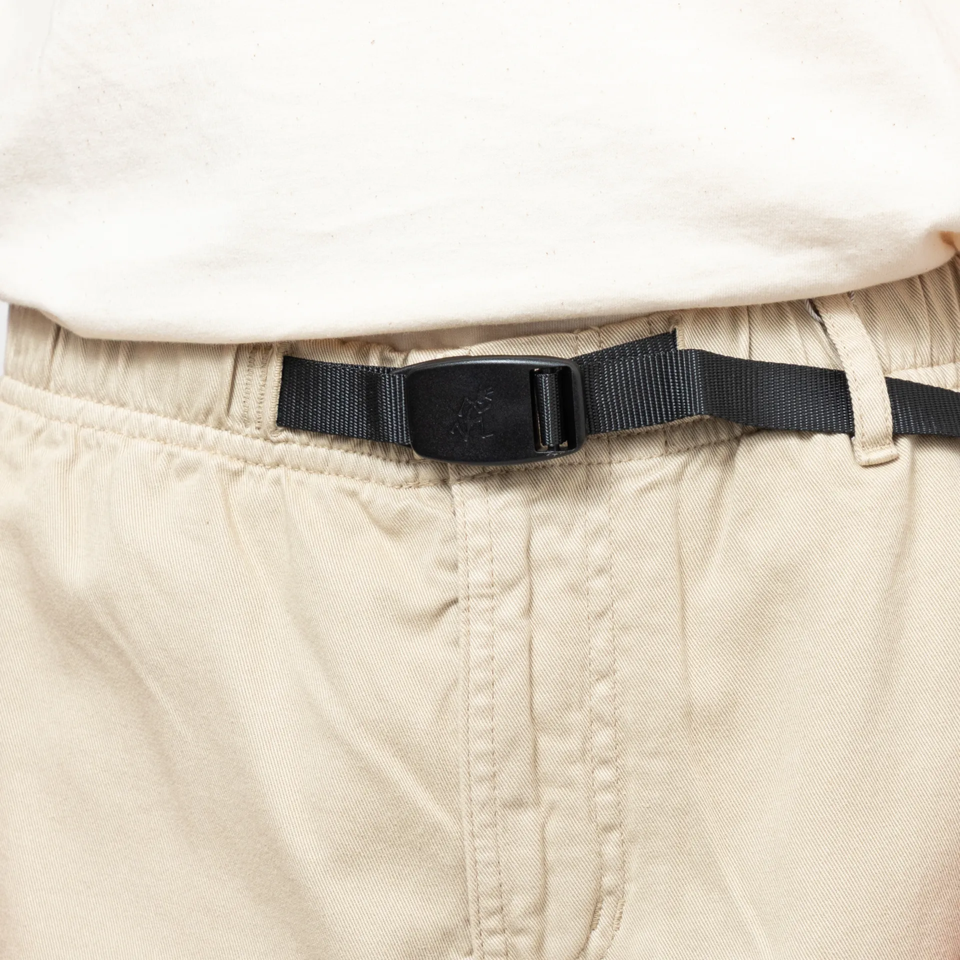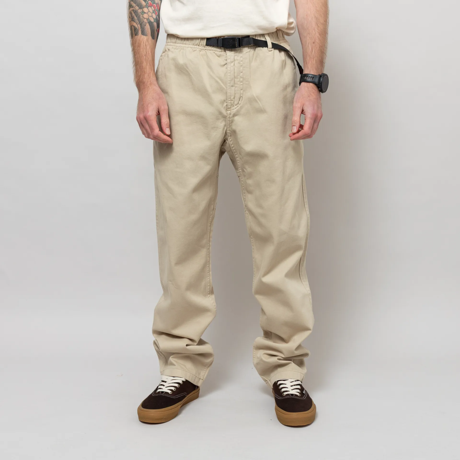 A pair of Gramicci's standard trousers, modelled on classic climbing pants and made from 100% cotton twill which is comfortable, durable, and the waistband is flexible with elastications and an adjustable belt.