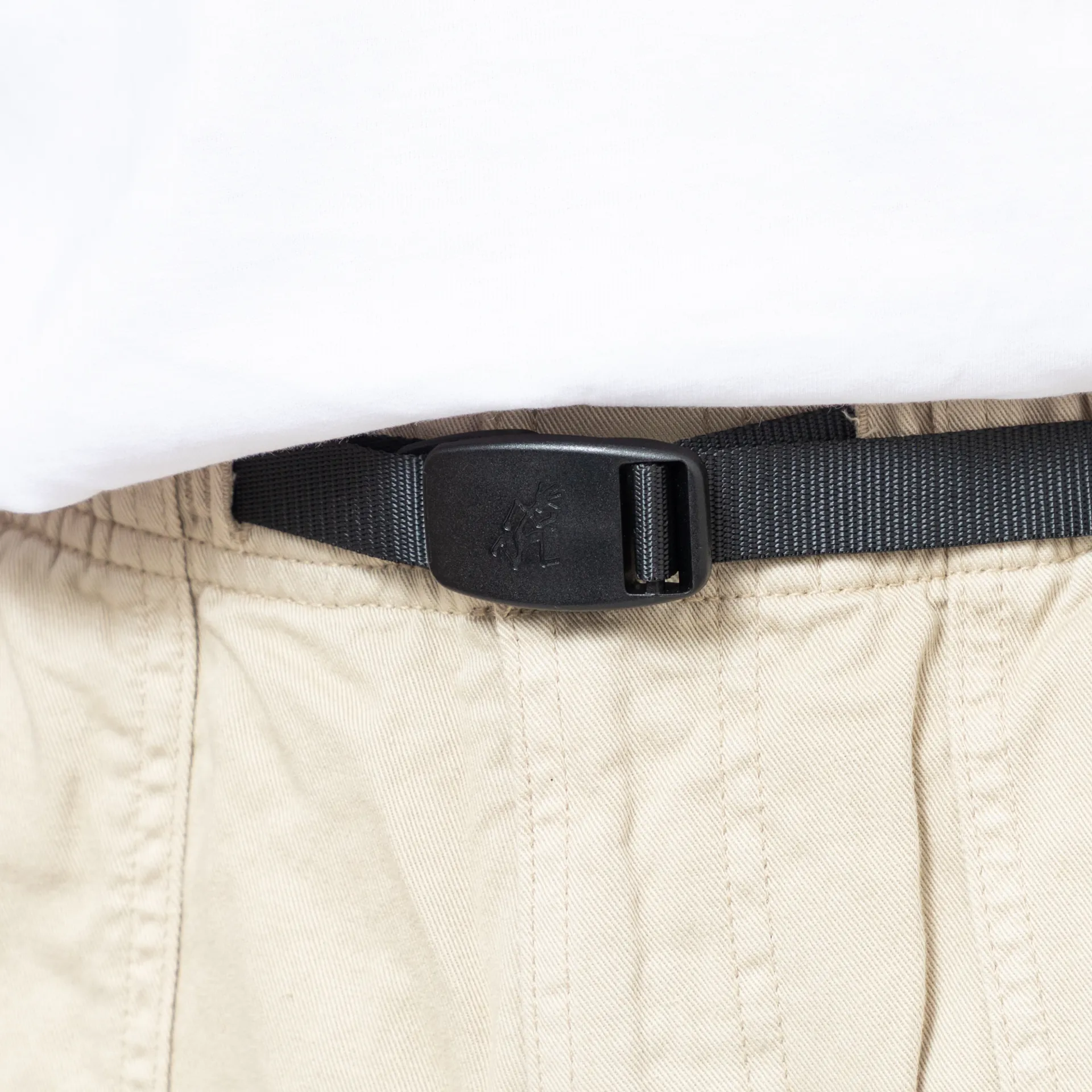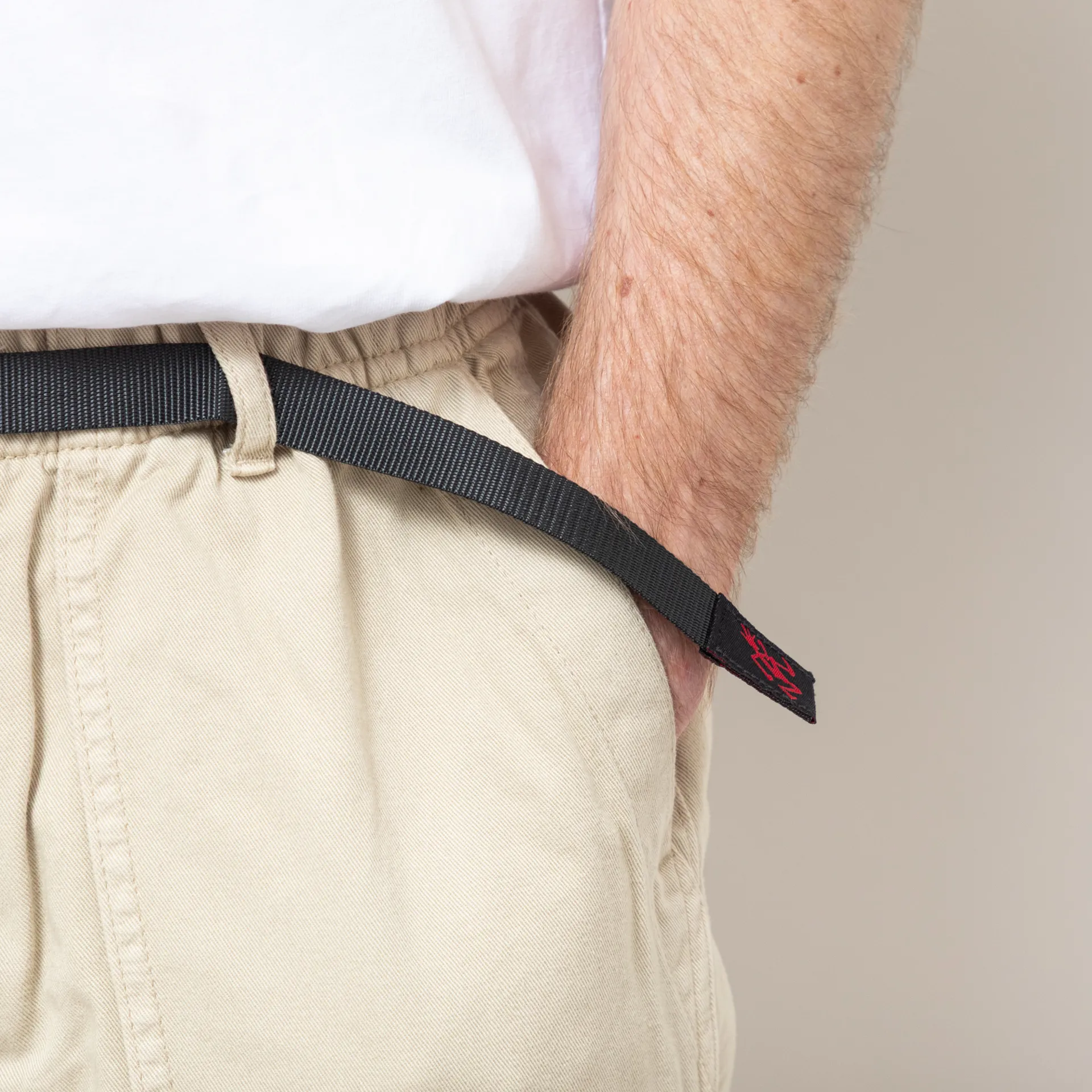 A pair of climbing pants from Gramicci. Made from 100% cotton twill, these are strong and durable, soft and comfortable, and the waistband and built-in blent provide a flexible fit.