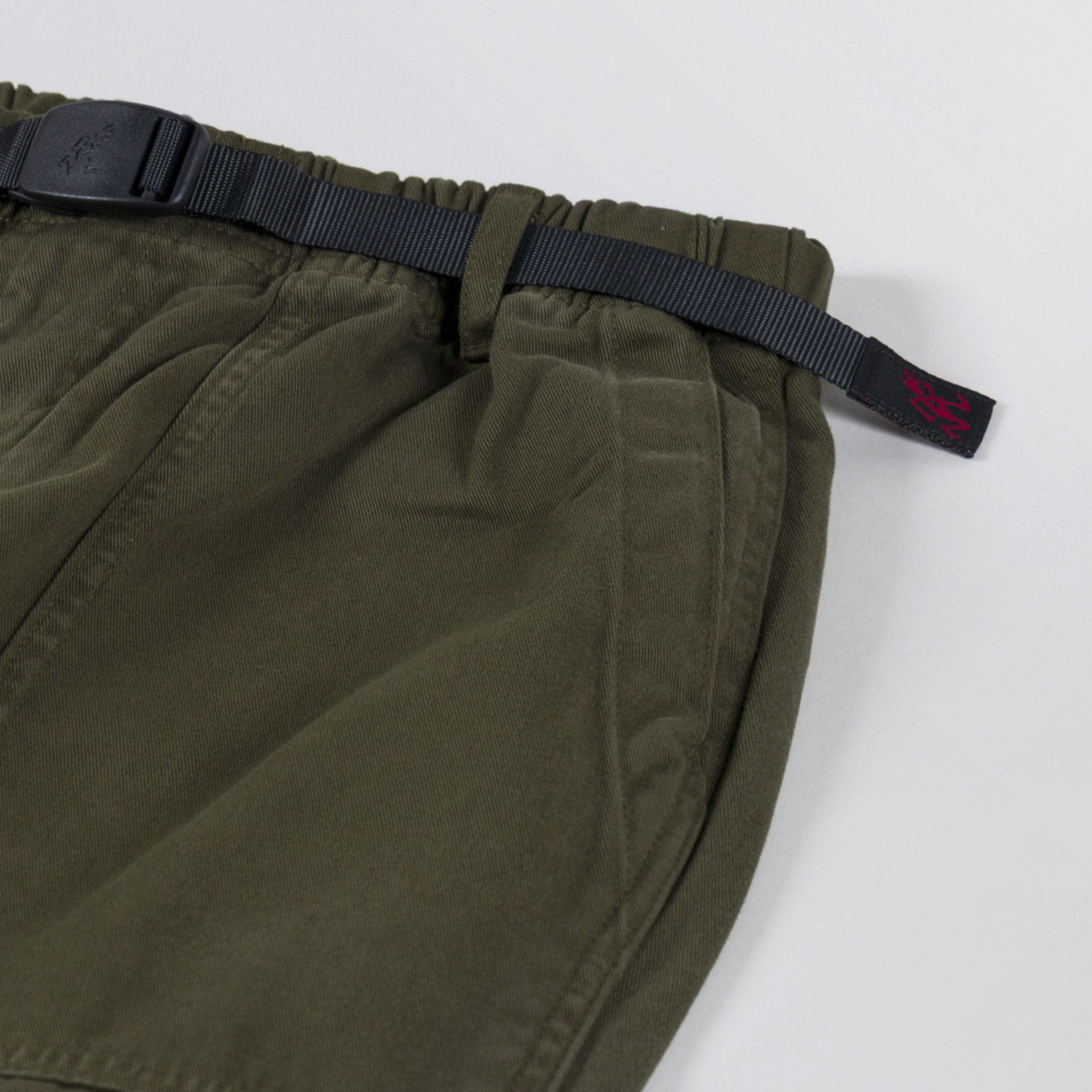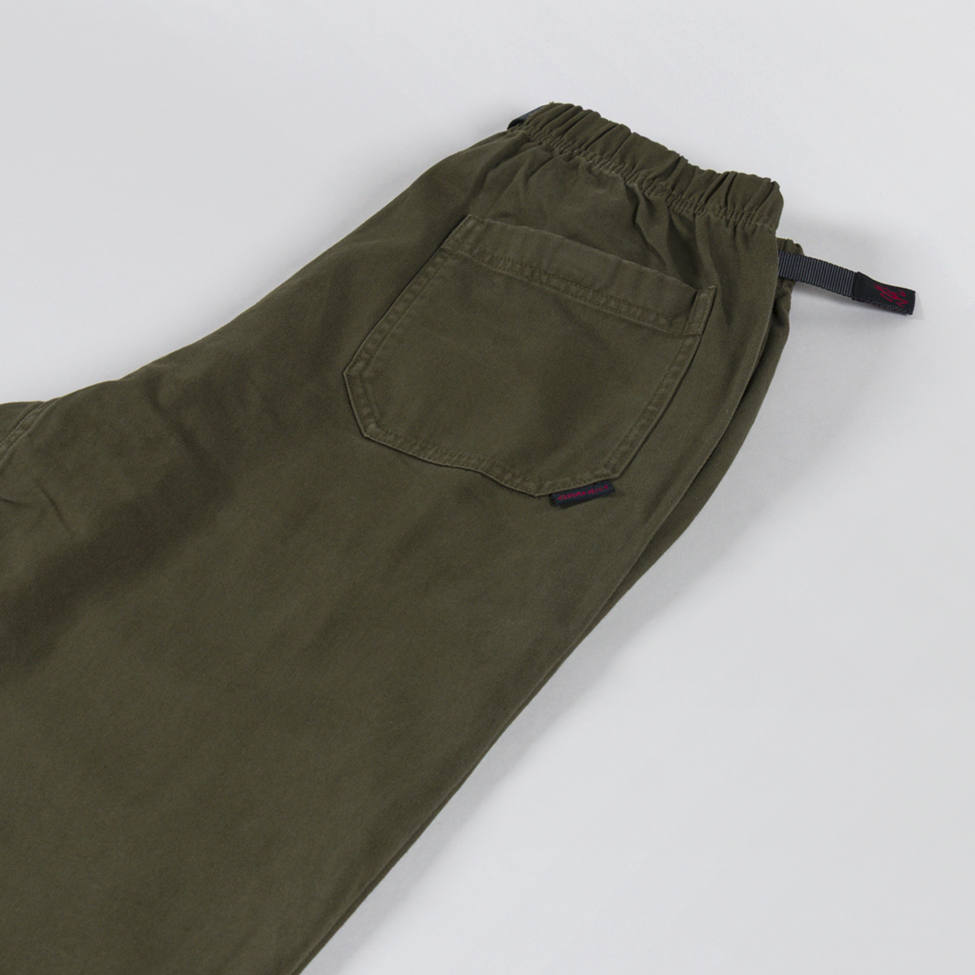 A pair of climbing pants from Gramicci. Made from 100% cotton twill, these are strong and durable, soft and comfortable, and the waistband and built-in blent provide a flexible fit.