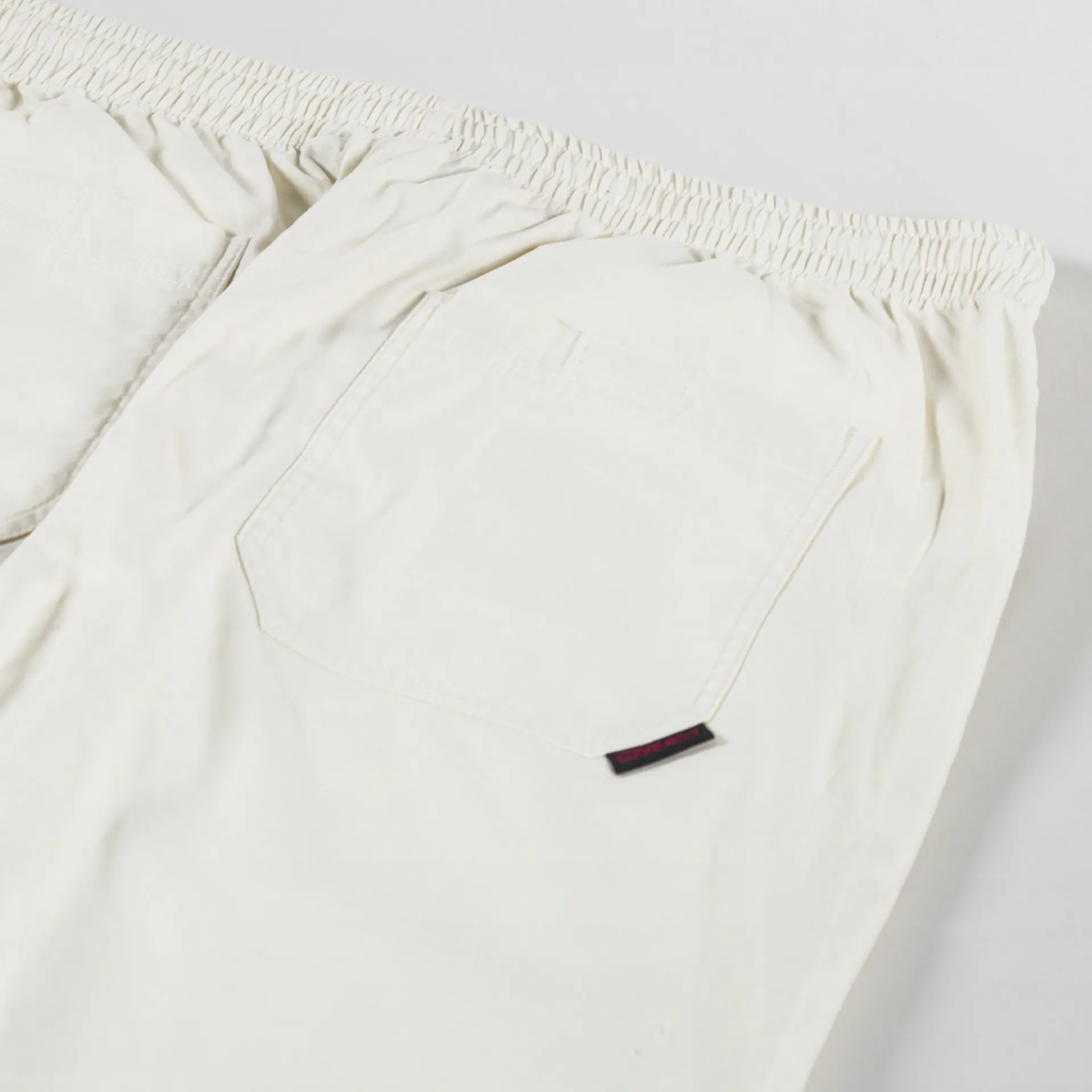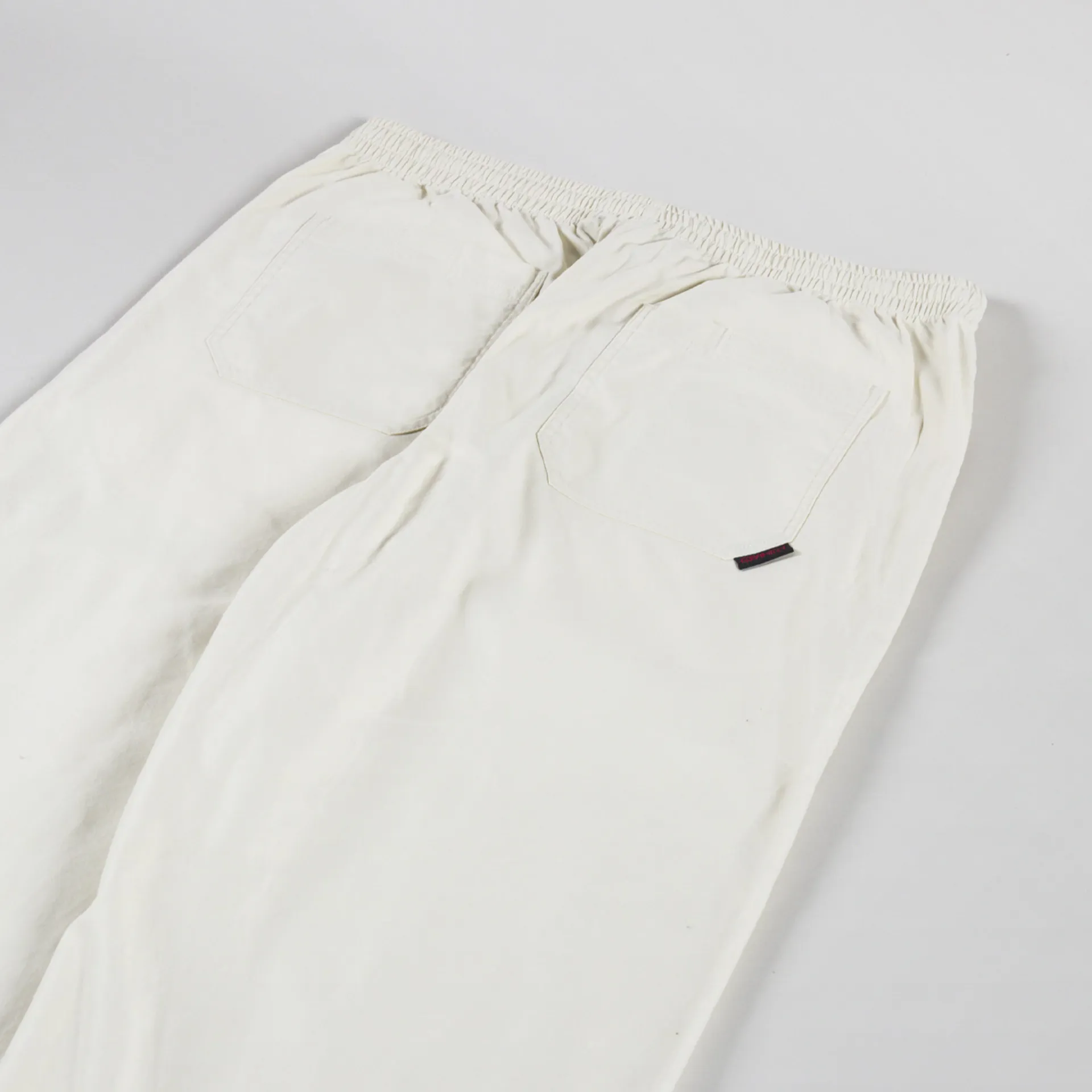 The Swell Pants from Gramicci have been cut in a relaxed fit with a straight leg, constructed from soft brushed 100% cotton. They feature an elasticated waist with adjustable drawstrings, a diamond-shaped crotch gusset with two side pockets and two patch pockets to the back. Finished with the signature Gramicci flag label to the back pocket seam.