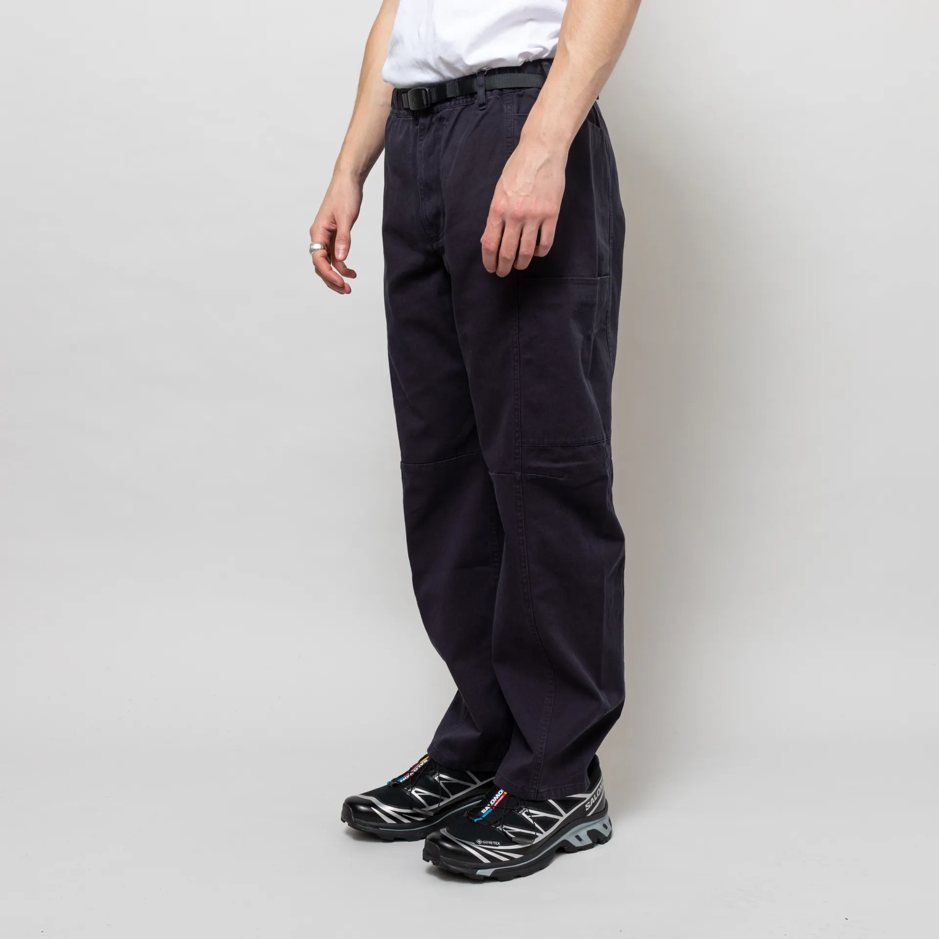 A pair of relaxed, tapered trousers from Gramicci, constructed from hardy cotton twill that's been garment washed for a softer hand feel and worn in appearance. They feature a zip and button fly, leading to an elasticated waistband with the signature integrated belt and a diamond-shaped crotch gusset for freedom of movement. They're a bit more shapely than most pants on the baggier side of things, categorised as a 'balloon' fit, with a high waist and plenty of room in the thigh with a gentle taper. The design is complete with large wraparound pockets throughout.