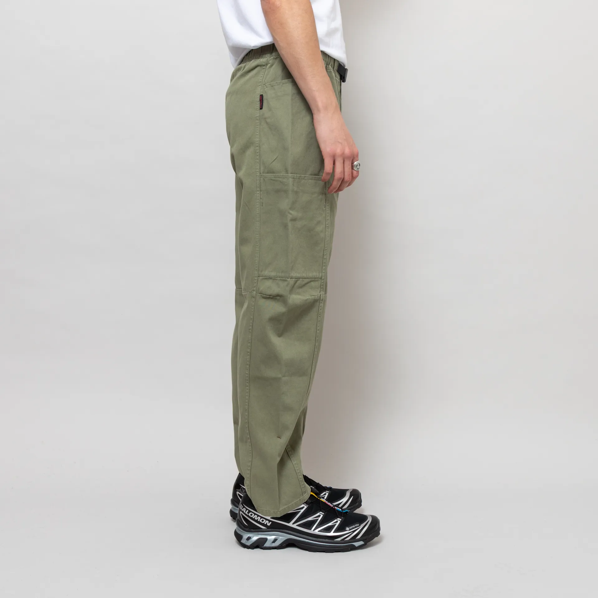 A pair of relaxed, tapered trousers from Gramicci, constructed from hardy cotton twill that's been garment washed for a softer hand feel and worn in appearance. They feature a zip and button fly, leading to an elasticated waistband with the signature integrated belt and a diamond-shaped crotch gusset for freedom of movement. They're a bit more shapely than most pants on the baggier side of things, categorised as a 'balloon' fit, with a high waist and plenty of room in the thigh with a gentle taper. The design is complete with large wraparound pockets throughout.