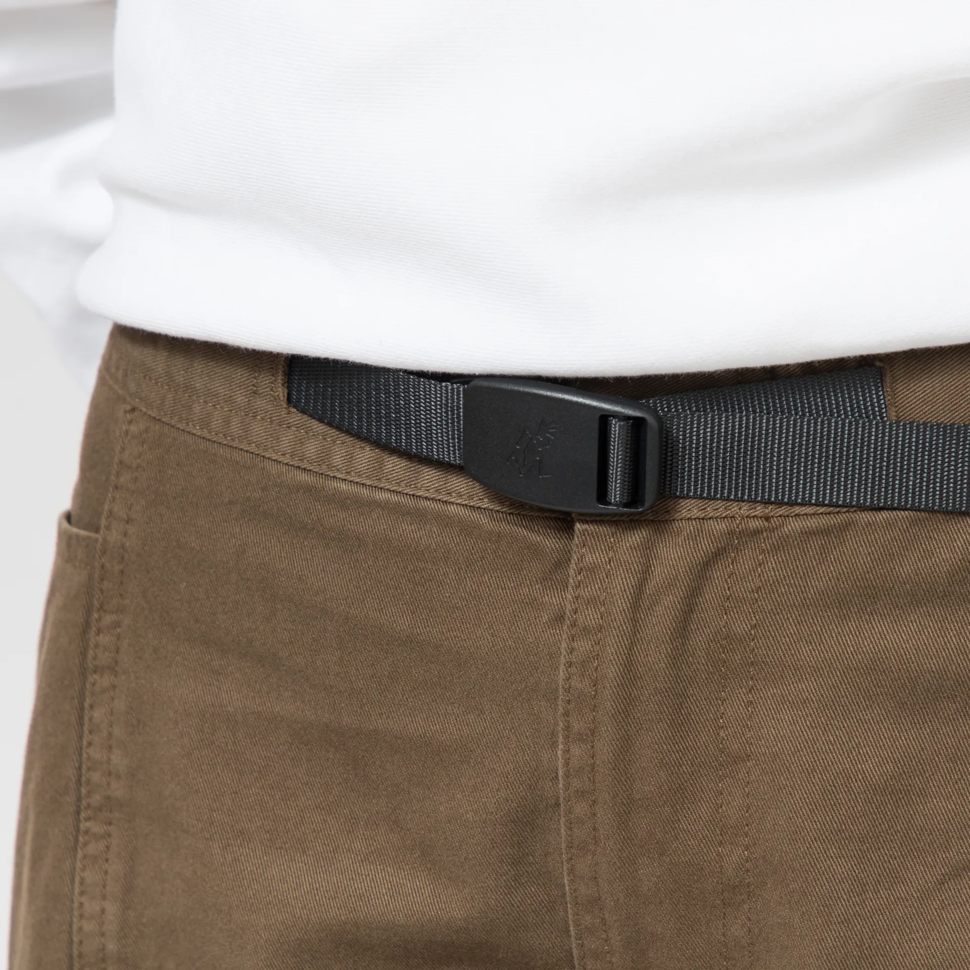 A pair of trousers from American climbing label Gramicci, made from a comfortable yet durable cotton twill with a zip and button fly, a woven clip belt and four patch pockets. Branding is simple with woven logo tags to the belt and rear.