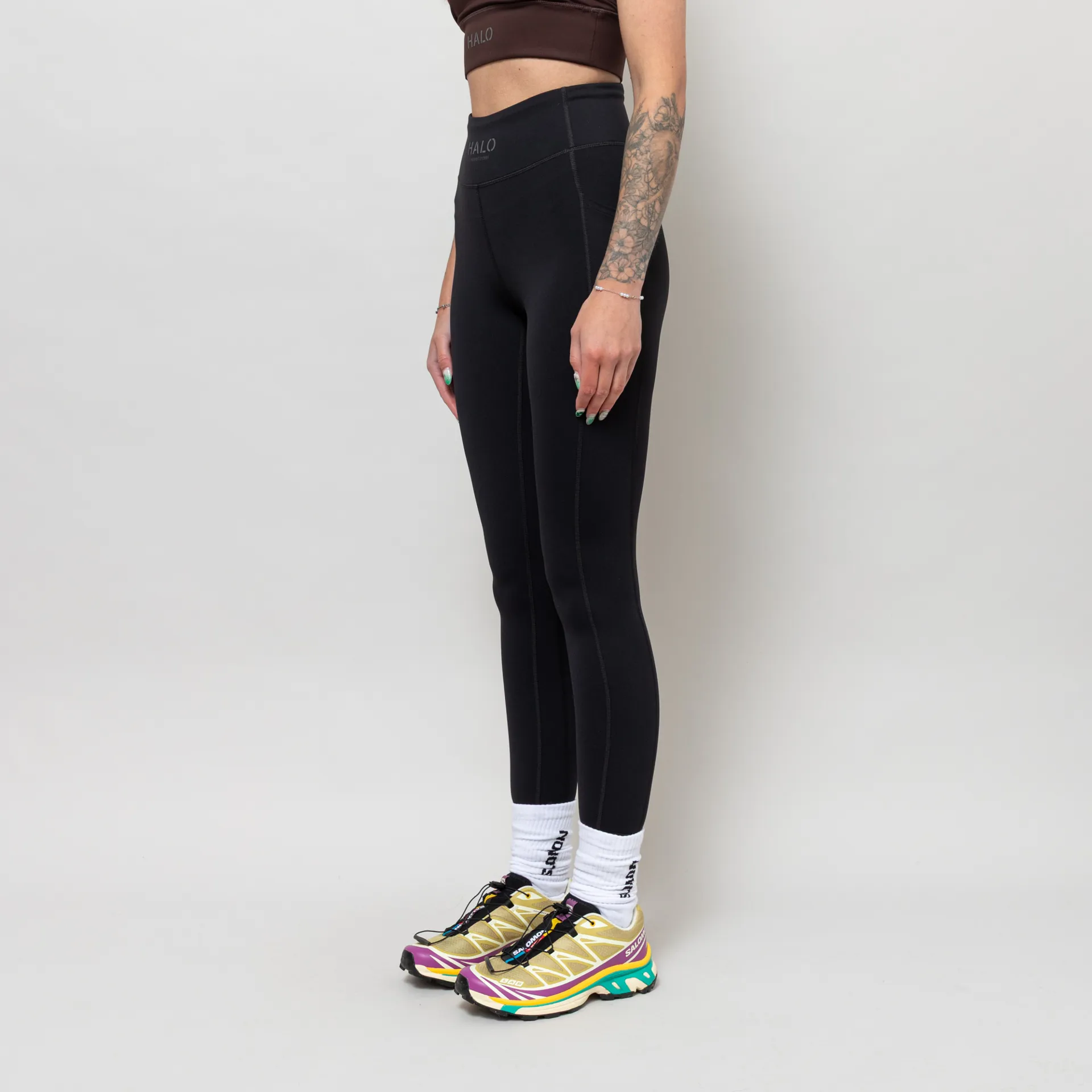 A pair of sports leggings from Halo, cut with a high-waist and a full length leg. They're constructed from flexible polyamide with four-way stretch, which allows them to flow with the natural shape of your body for freedom of movement. With laser-cut edges for a seamless finish, a side pocket and small coin pocket to the rear. Branding consists of a reflective Halo logo at the waist, and a reflective ATW logo down the back right leg.