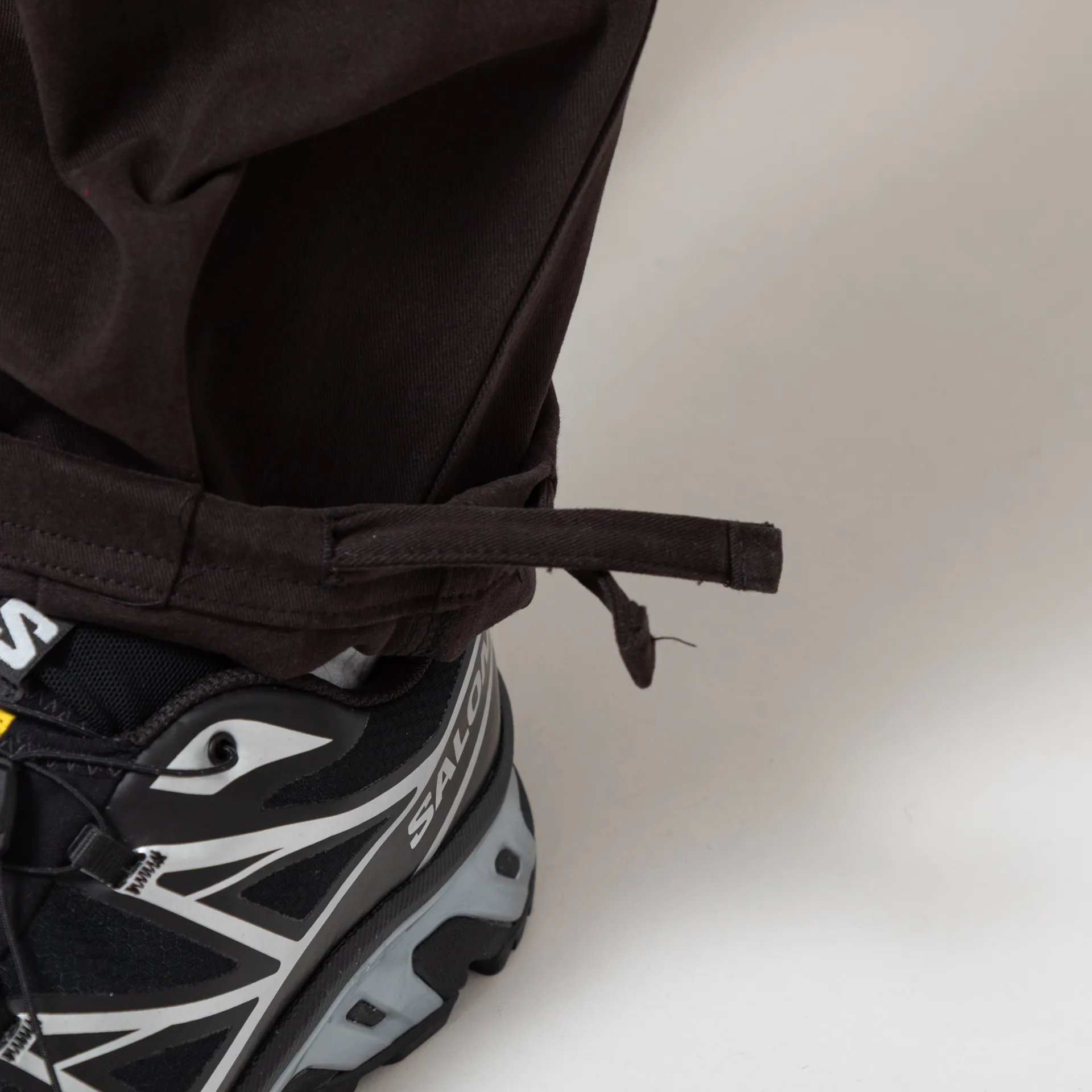 A pair of cotton twill balloon pants from ICHPIG, featuring an elasticated waistband with drawstrings to adjust the fit, two front pockets, two back welt pockets and a rubber ICHPIG logo. Finished with ties at the leg openings to taper in or widen the leg.