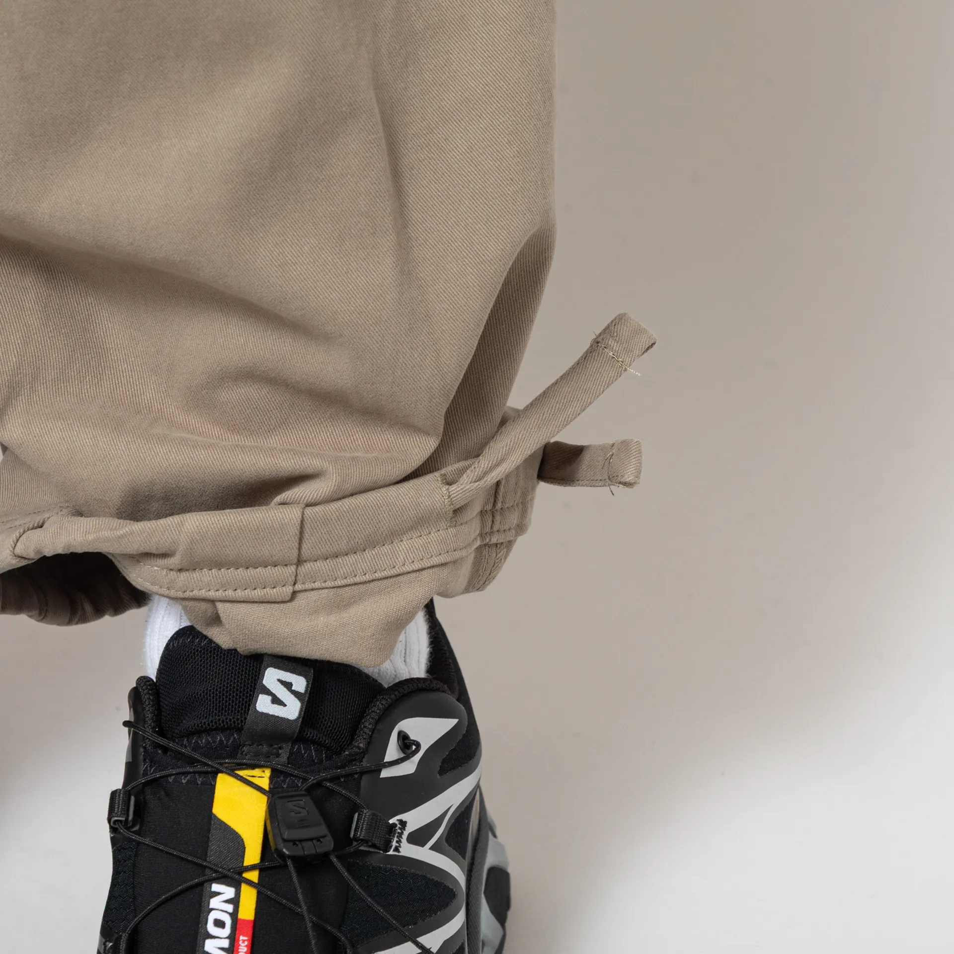 A pair of cotton twill balloon pants from ICHPIG, featuring an elasticated waistband with drawstrings to adjust the fit