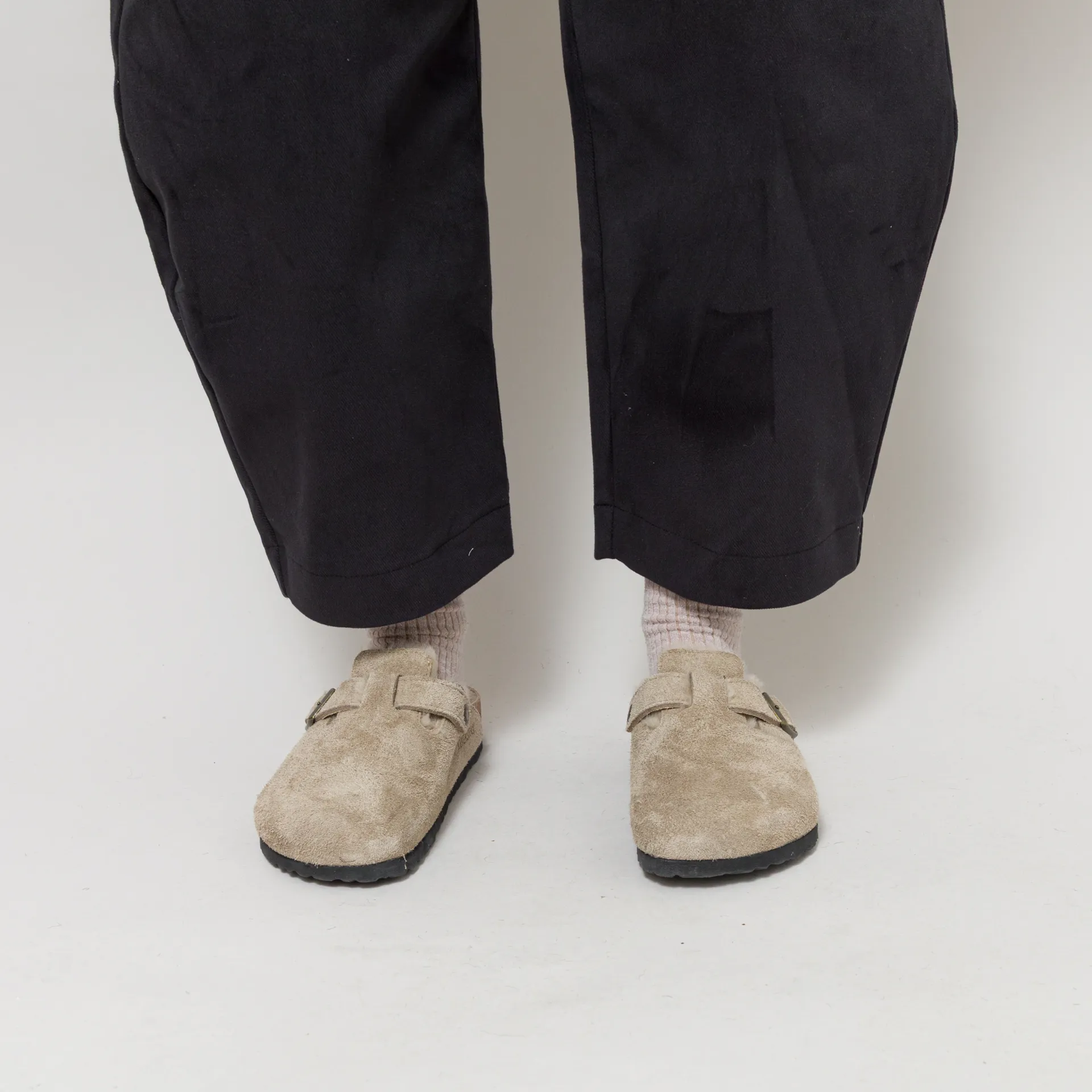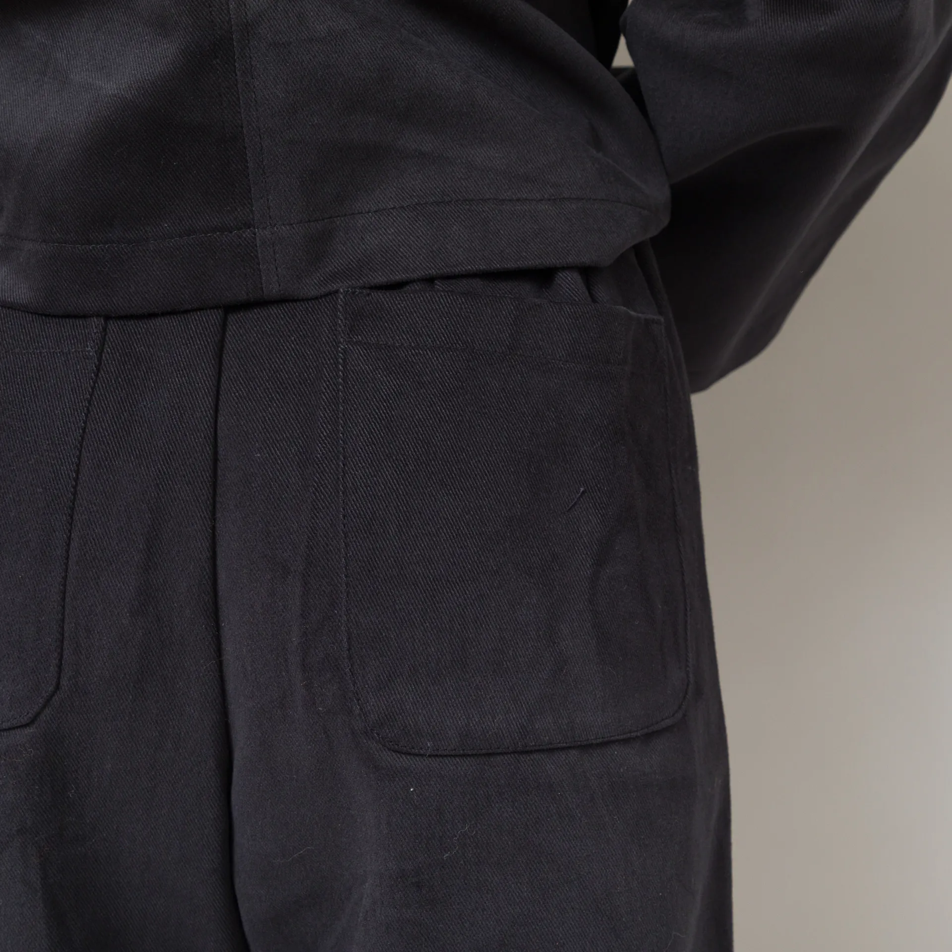 The Buoy Trousers from Kate Sheridan are cut with a regular-fitting waist and a relaxed barrel leg silhouette, constructed from durable cotton drill. They feature a buttoned fly, leading up to an elastic waistband with two patch pockets to the back.