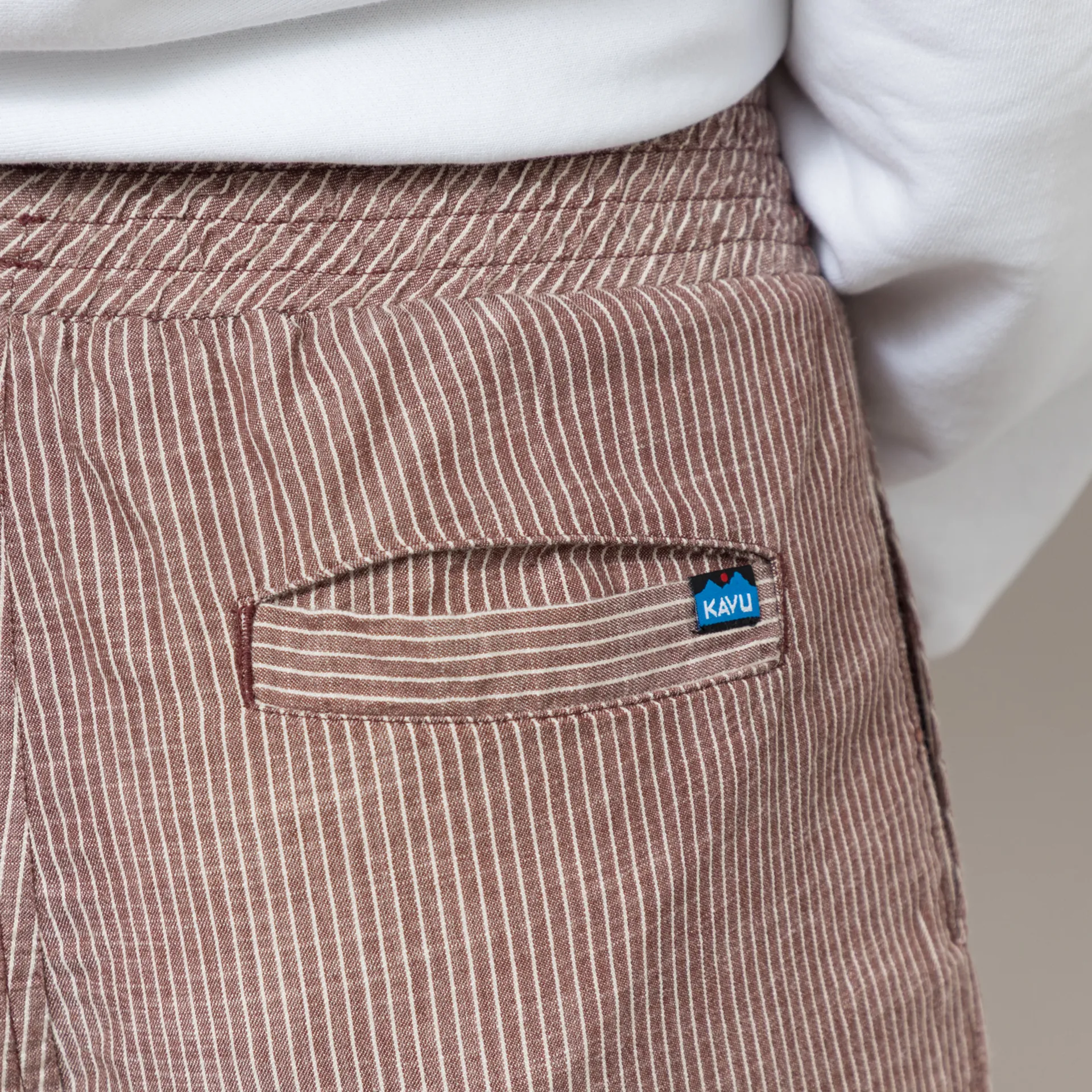 A pair of lightweight, striped trousers from Kavu, constructed from a soft cotton/tencel blend and cut in a regular fit with a straight leg. They have an elasticated waistband, two front pockets, two back pockets and a small woven Kavu label to finish.