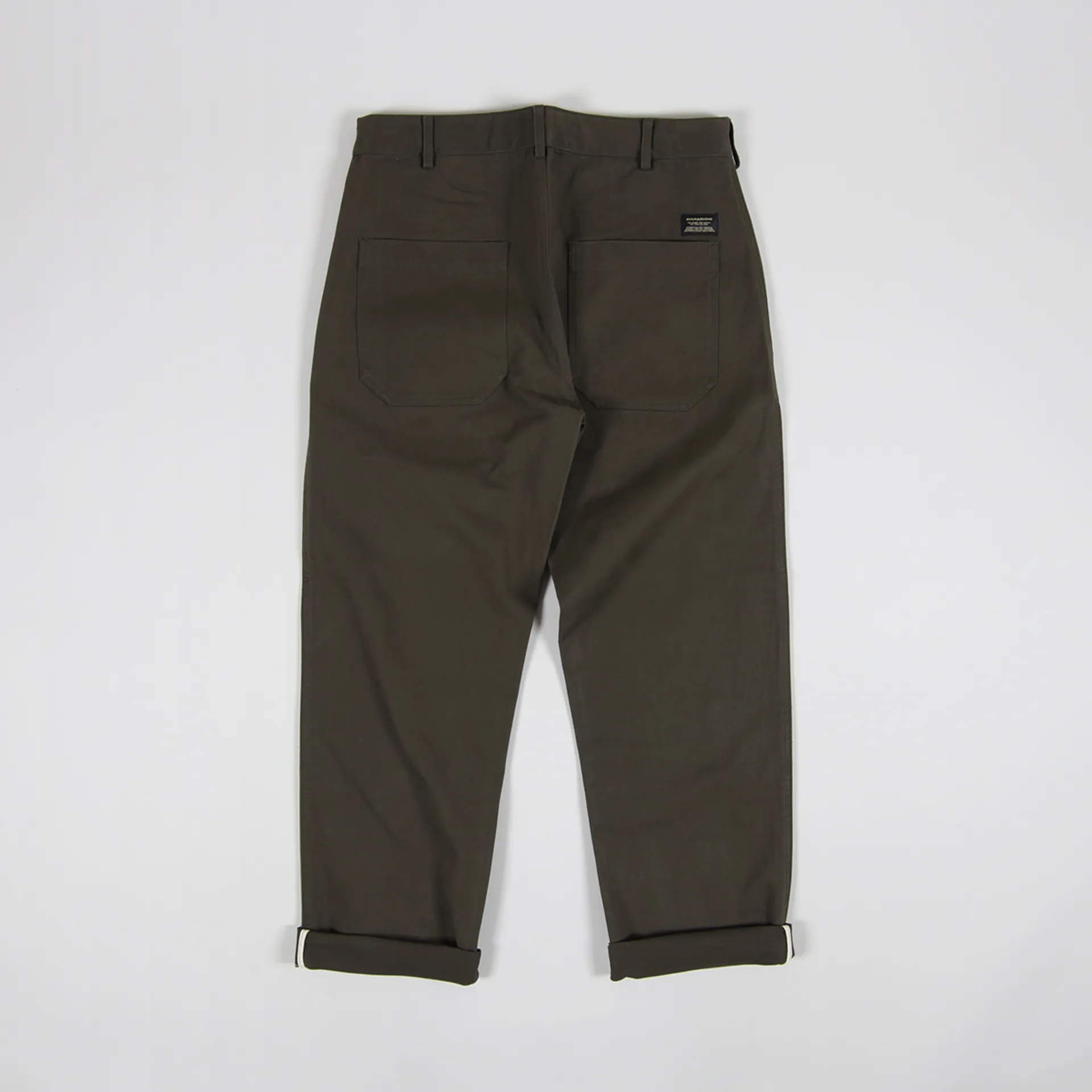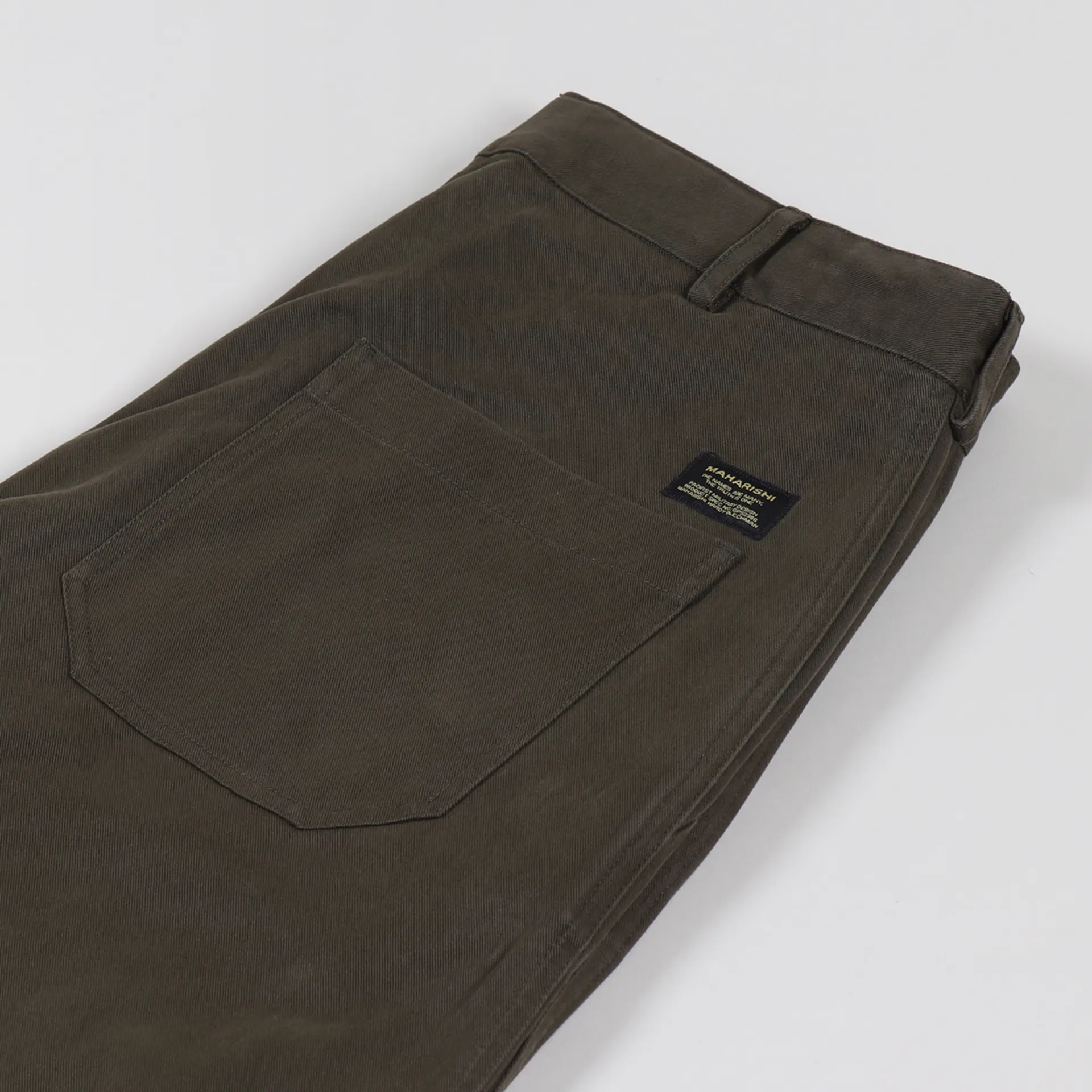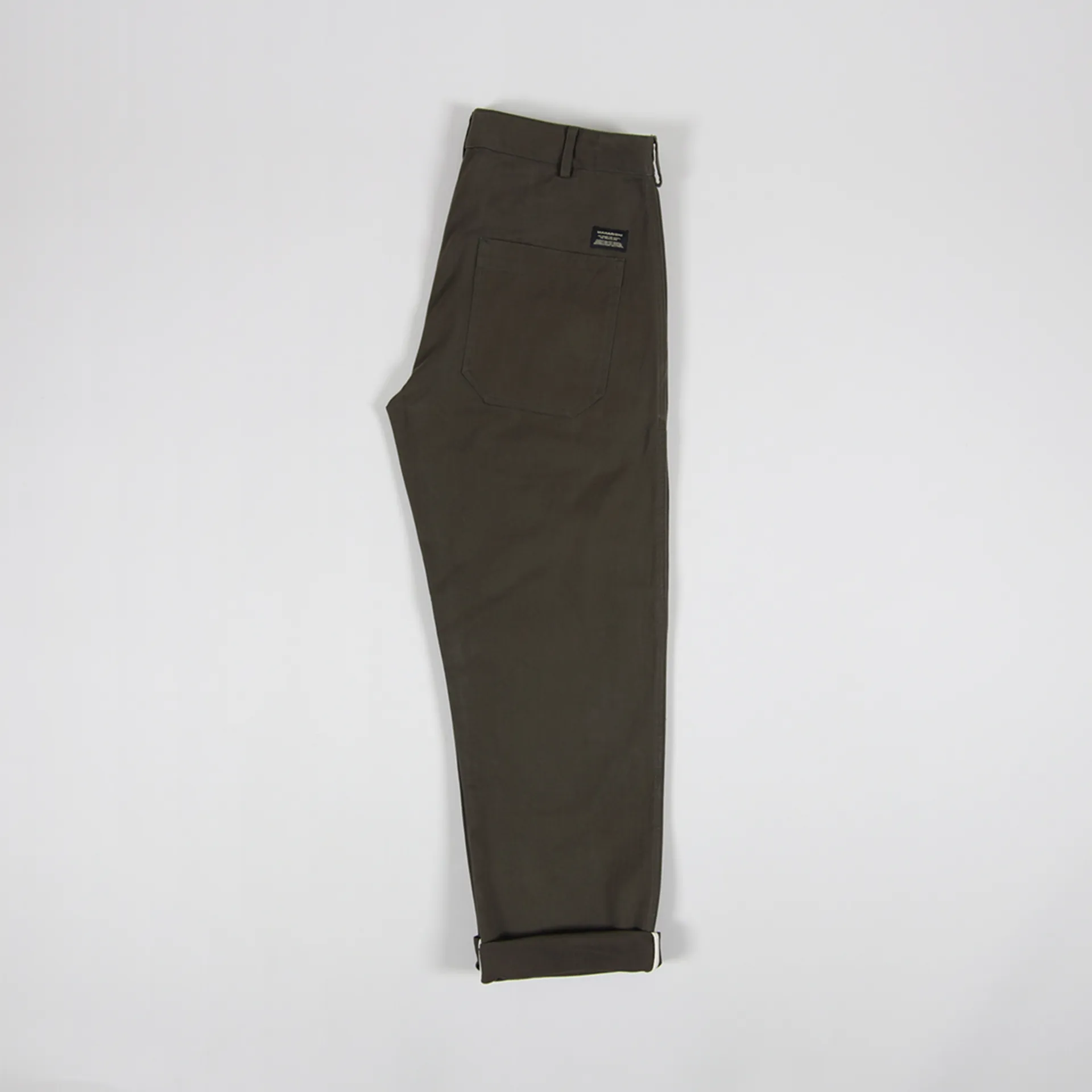 A pair of trousers from Maharishi made from a durable 100% organic cotton twill with a Swiss Riri zip-fly, a woven logo patch and a four pocket design.