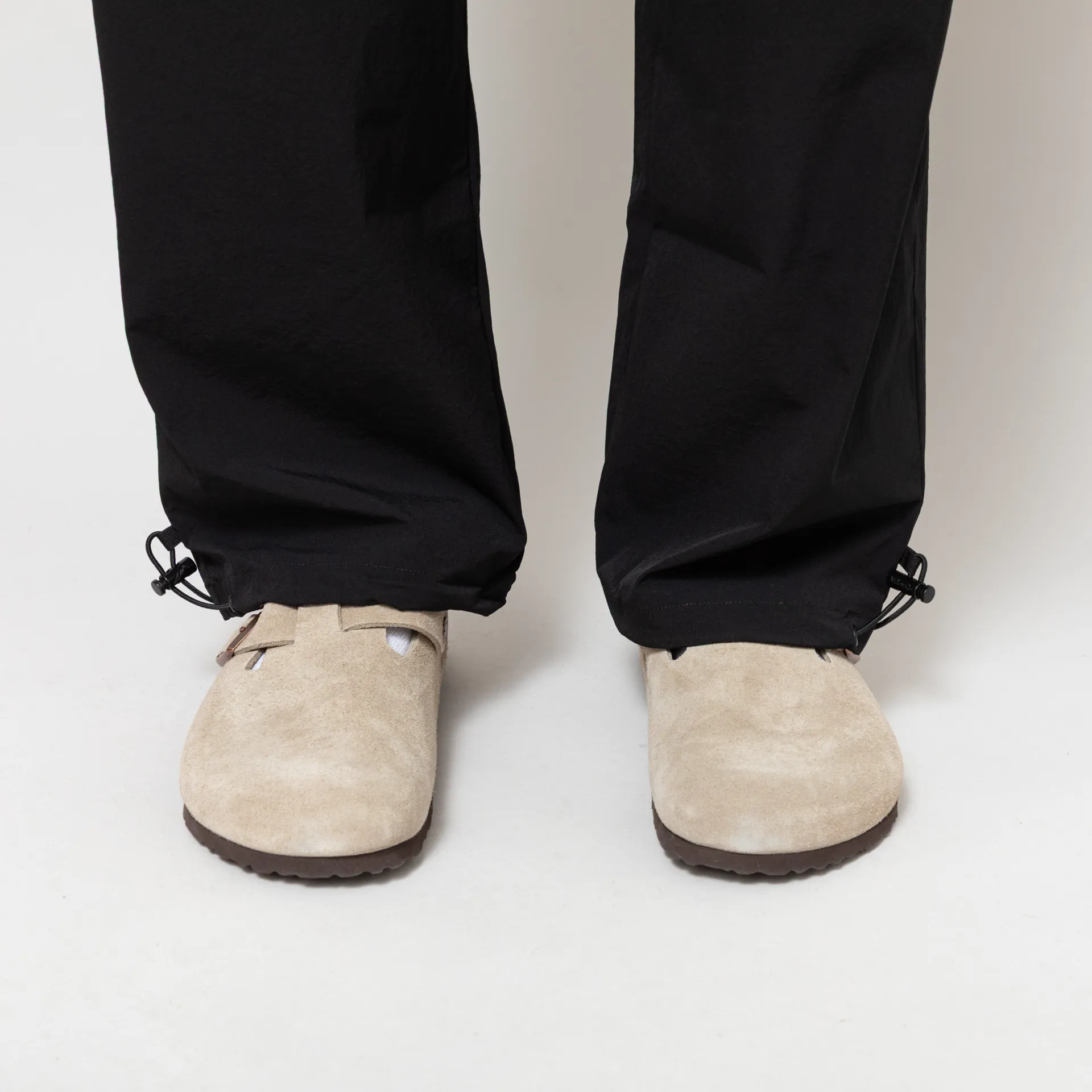 The Everyday Trousers are constructed from a durable stretch nylon fabric in a generous loose fit. They have an elasticated waistband with an integrated belt to adjust, two zipped pockets at the front, a single rear pocket and adjustable cuffs. Finished off with the signature embroidered Mellow Clo logo.