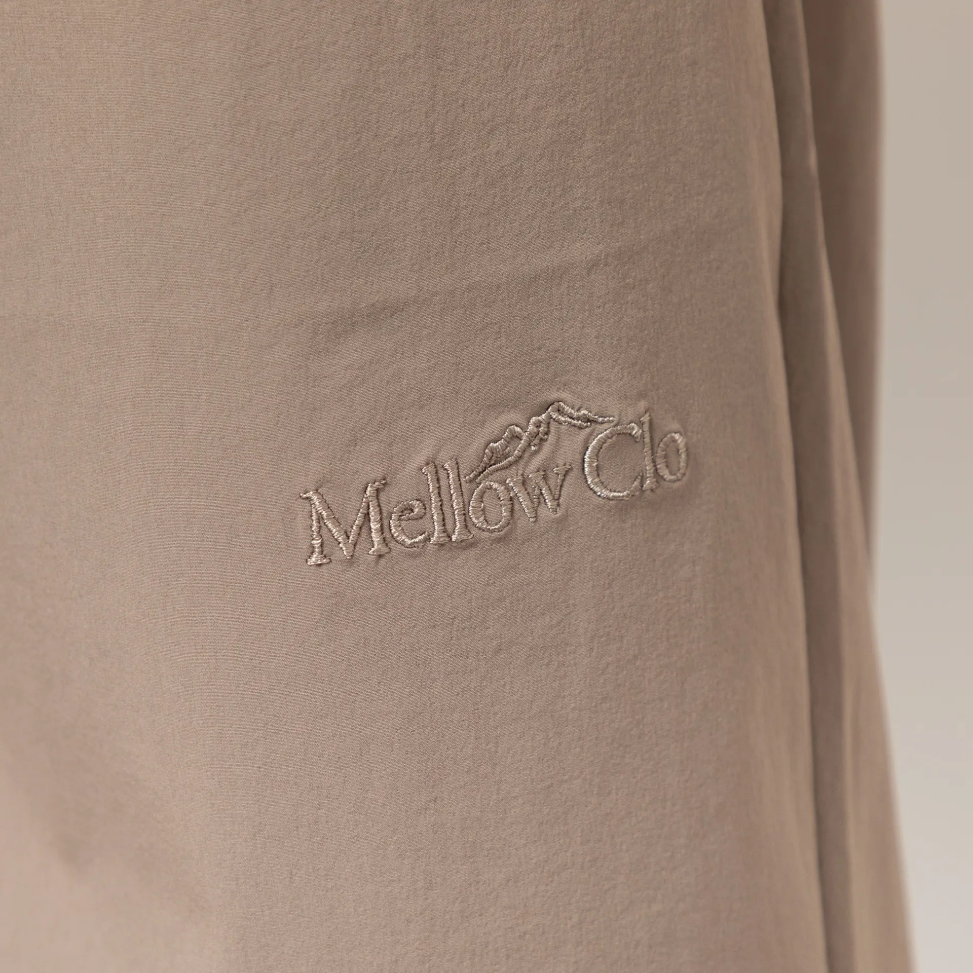 The Everyday Trousers are constructed from a durable stretch nylon fabric in a generous loose fit. They have an elasticated waistband with an integrated belt to adjust, two zipped pockets at the front, a single rear pocket and adjustable cuffs. Finished off with the signature embroidered Mellow Clo logo.