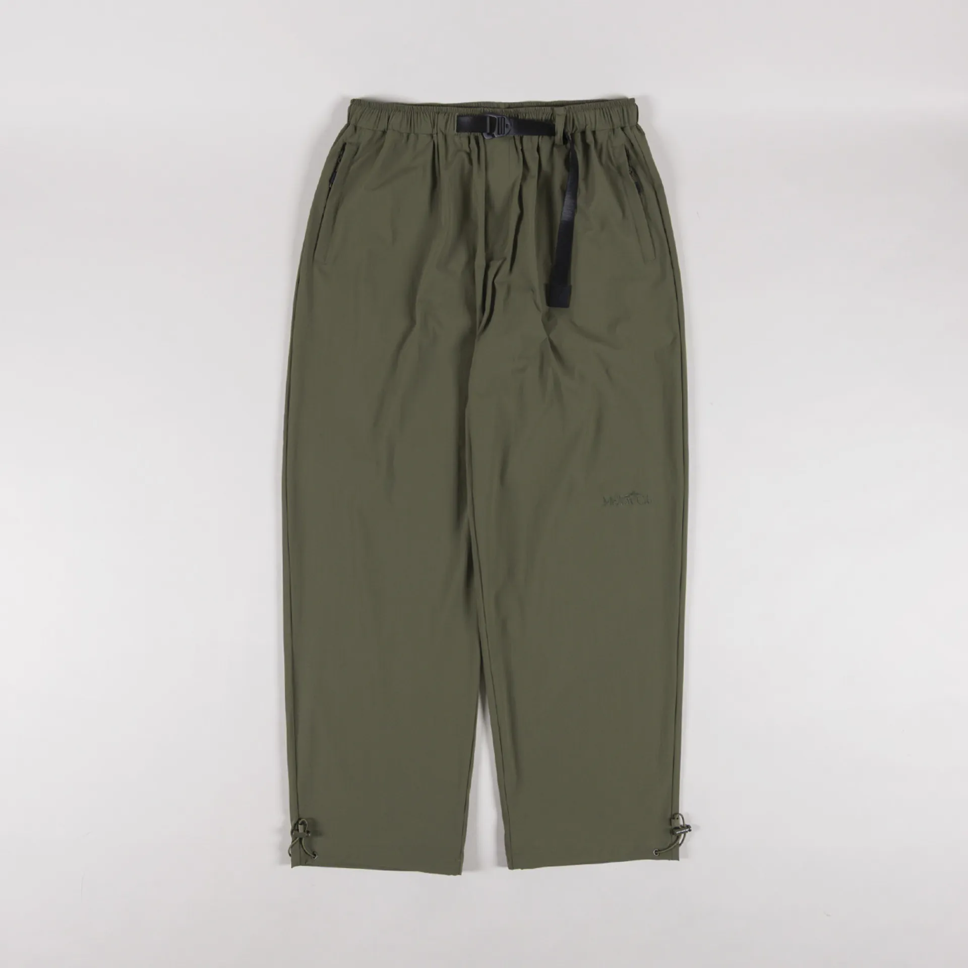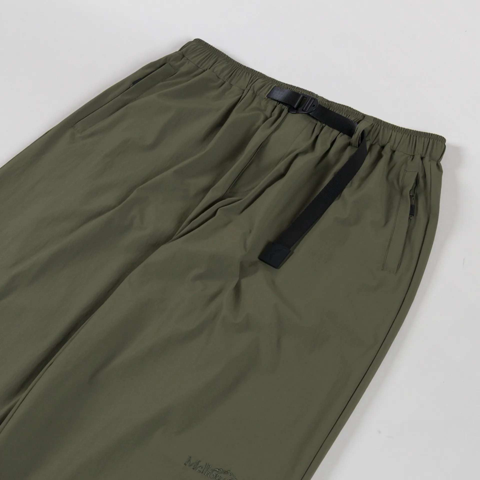 The Everyday Trousers are constructed from a durable stretch nylon fabric in a generous loose fit. They have an elasticated waistband with an integrated belt to adjust, two zipped pockets at the front, a single rear pocket and adjustable cuffs. Finished off with the signature embroidered Mellow Clo logo.