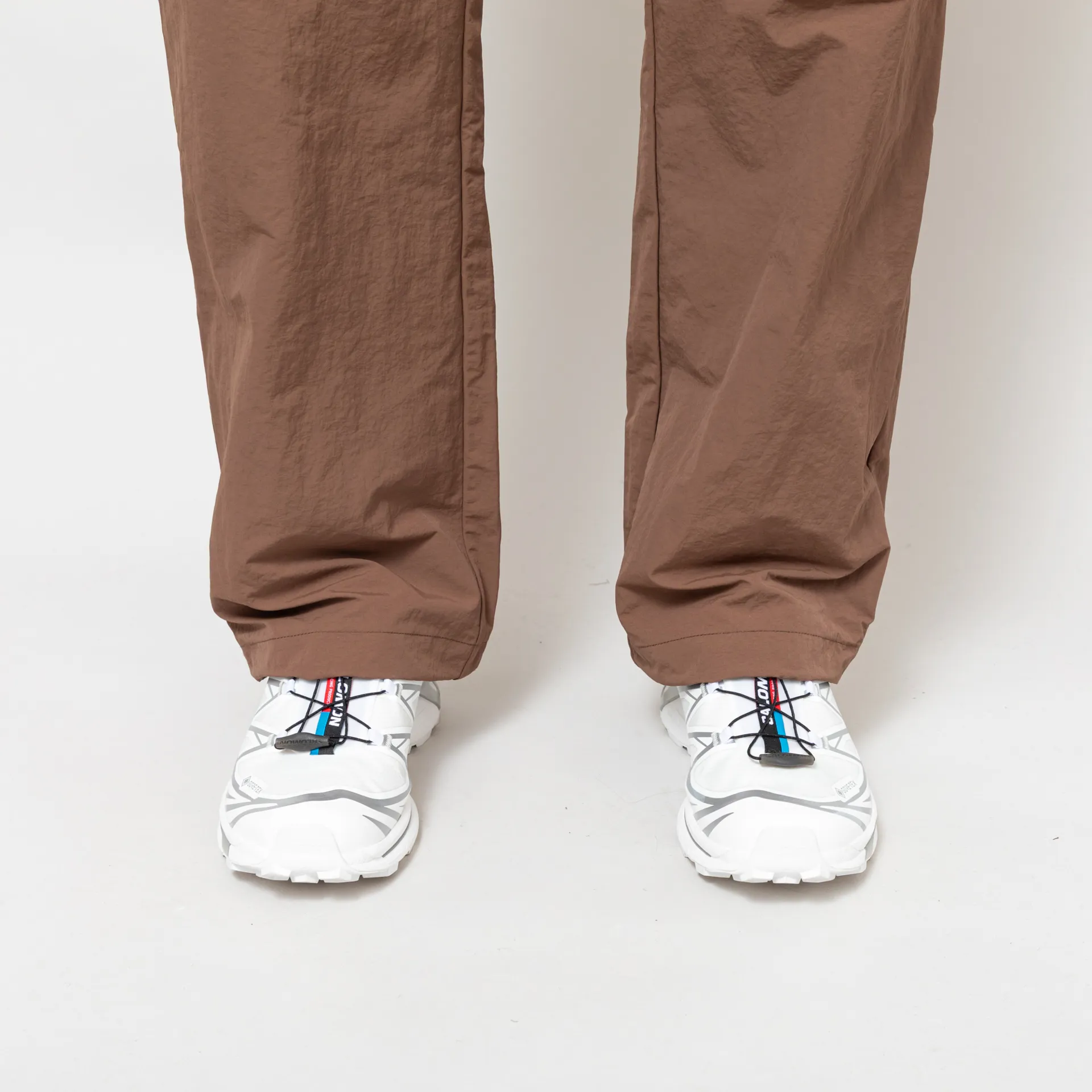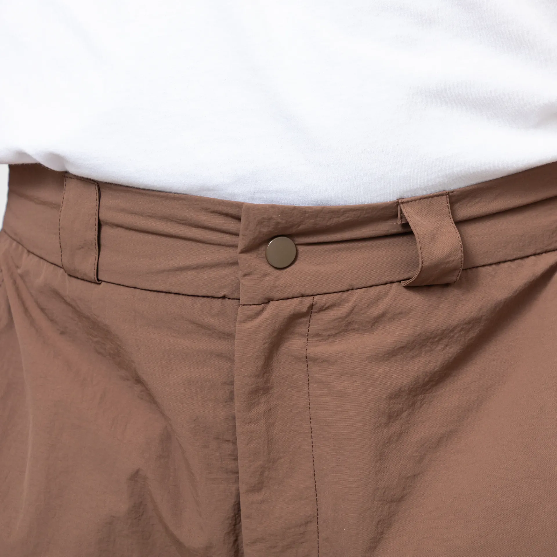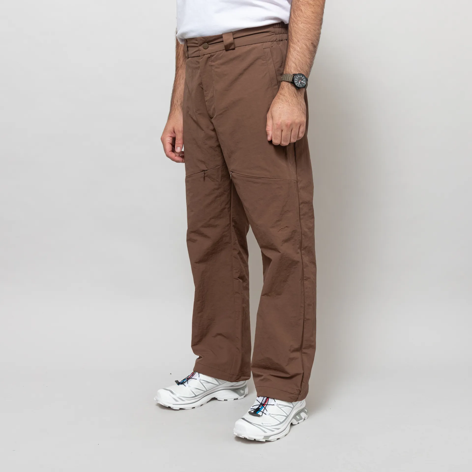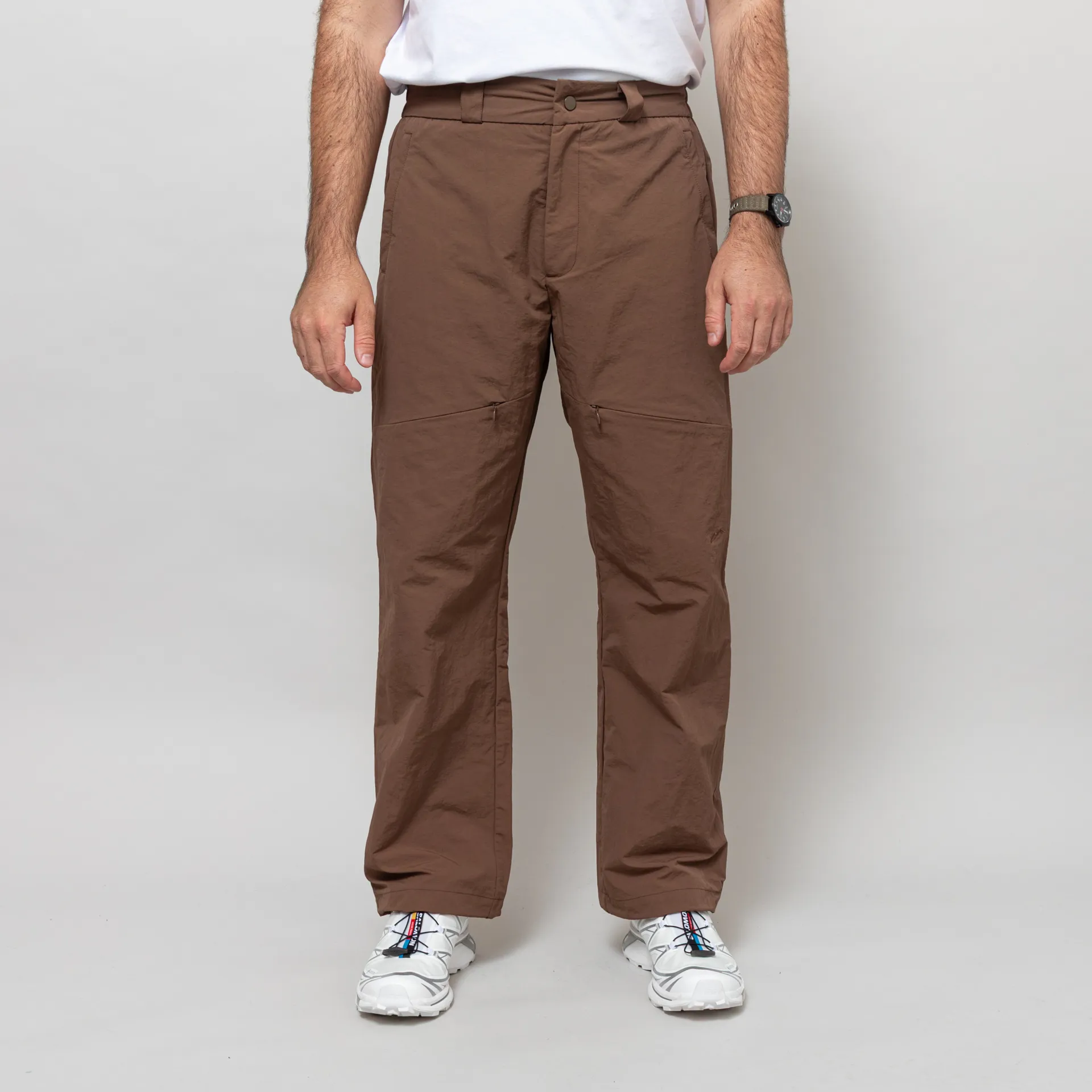 A pair of outdoor trousers from Mellow Clo, constructed from durable 100% nylon. Featuring a zip and snap-button fly, leading to an elasticated waistband with chunky belt loops. They're cut with a regular fitting waist with a relaxed, straight leg that can be tapered in with the toggles at the cuffs. Finished off with two classic zip pockets at the front, two zipped thigh pockets and a single zipped back pocket.