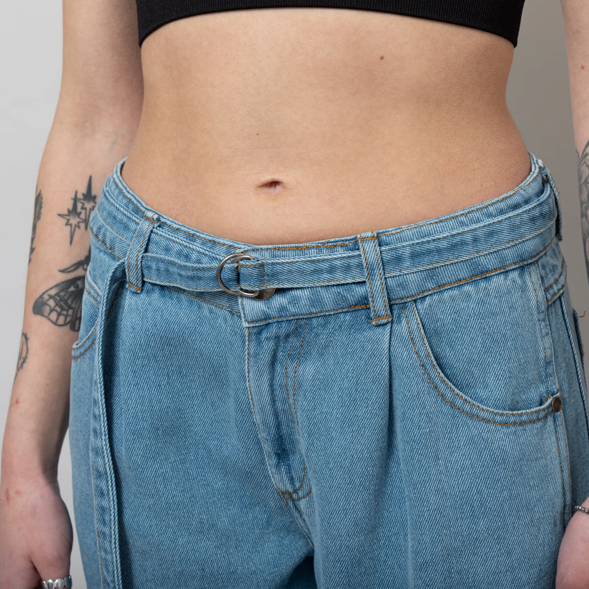 The Popura Jeans from Our Sister are cut in a relaxed fit with a wide leg, constructed from a super soft blend of tencel and cotton. They feature a zip and button fly, with a belt loop waist and a detectable belt. They have two pockets on the front and two classic patch pockets to the rear.