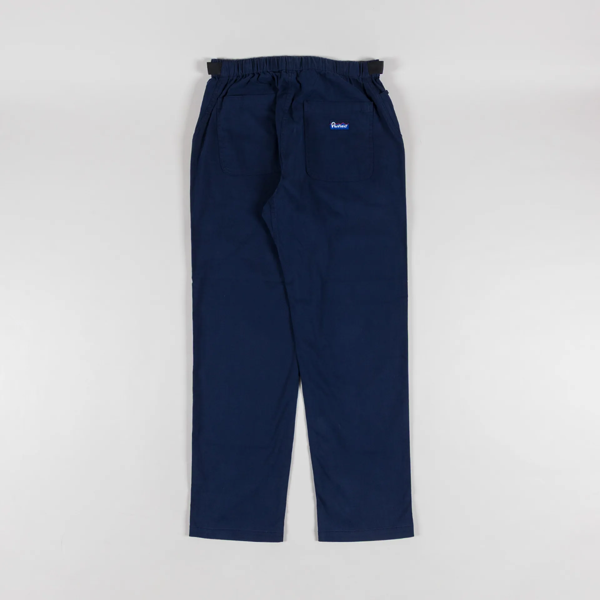 A pair of utility pants from Penfield, cut with a classic straight leg from a hardwearing dobby cotton blend with reinforced stitching for extra durability. They have an elasticated waistband with an integrated belt to adjust the fit, two front pockets, two back patch pockets and a gusset panel construction for freedom of movement. Finished off with the signature Penfield logo patch.