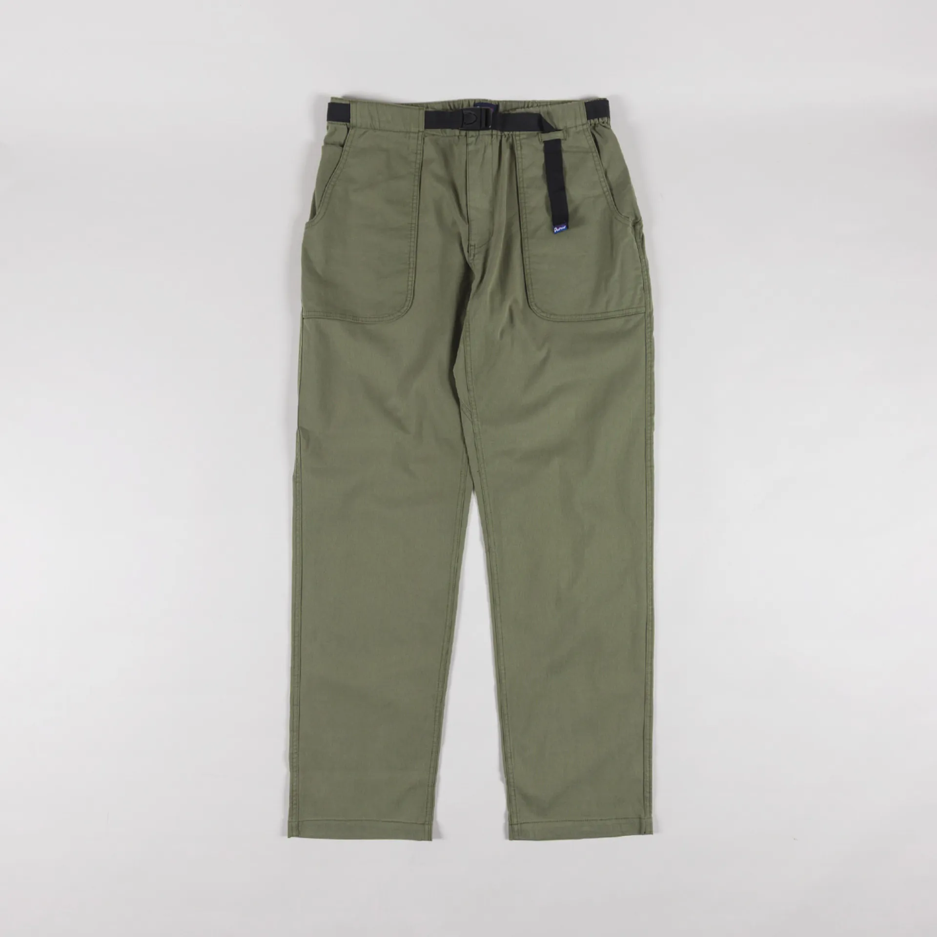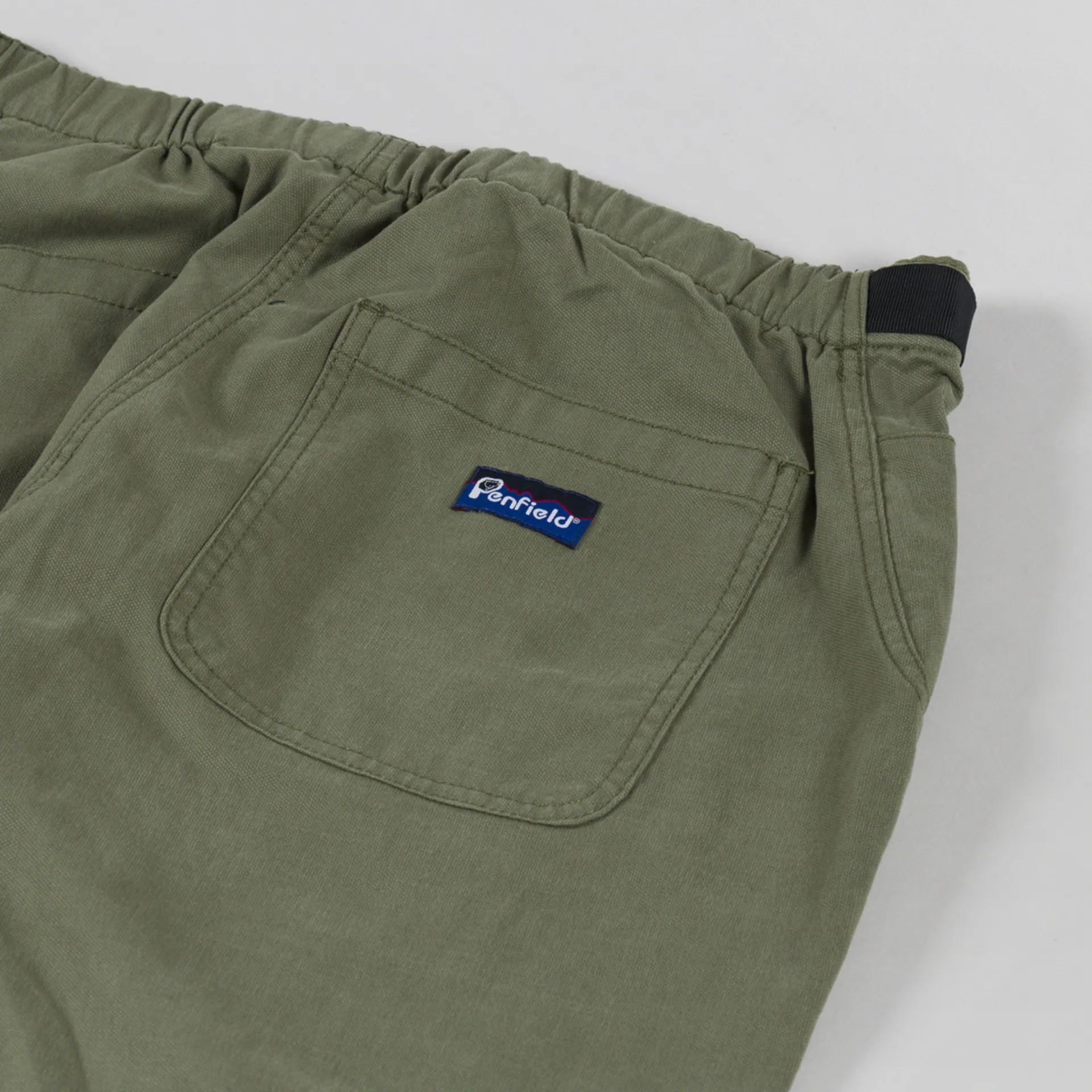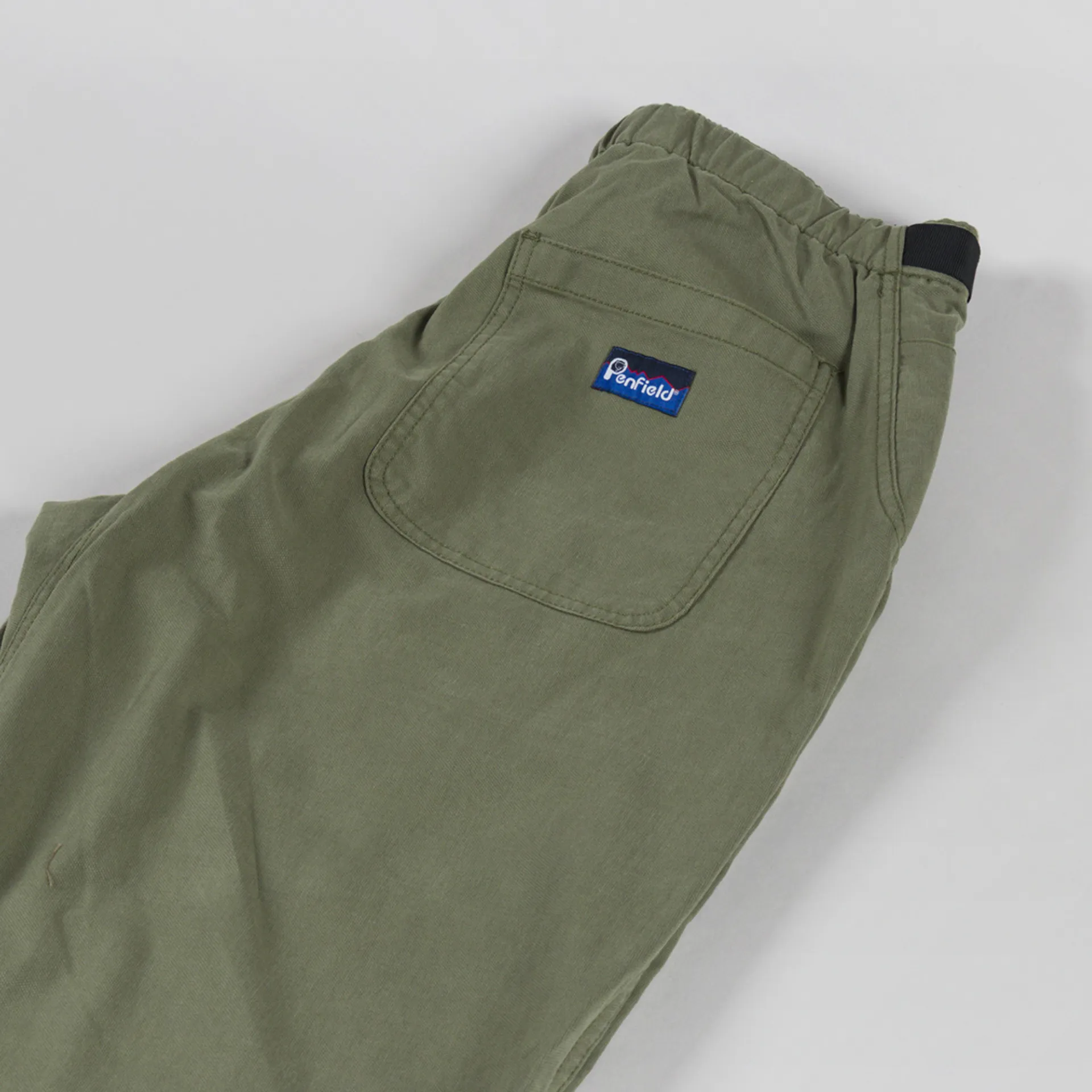 A pair of utility pants from Penfield, cut with a classic straight leg from a hardwearing dobby cotton blend with reinforced stitching for extra durability. They have an elasticated waistband with an integrated belt to adjust the fit, two front pockets, two back patch pockets and a gusset panel construction for freedom of movement. Finished off with the signature Penfield logo patch.