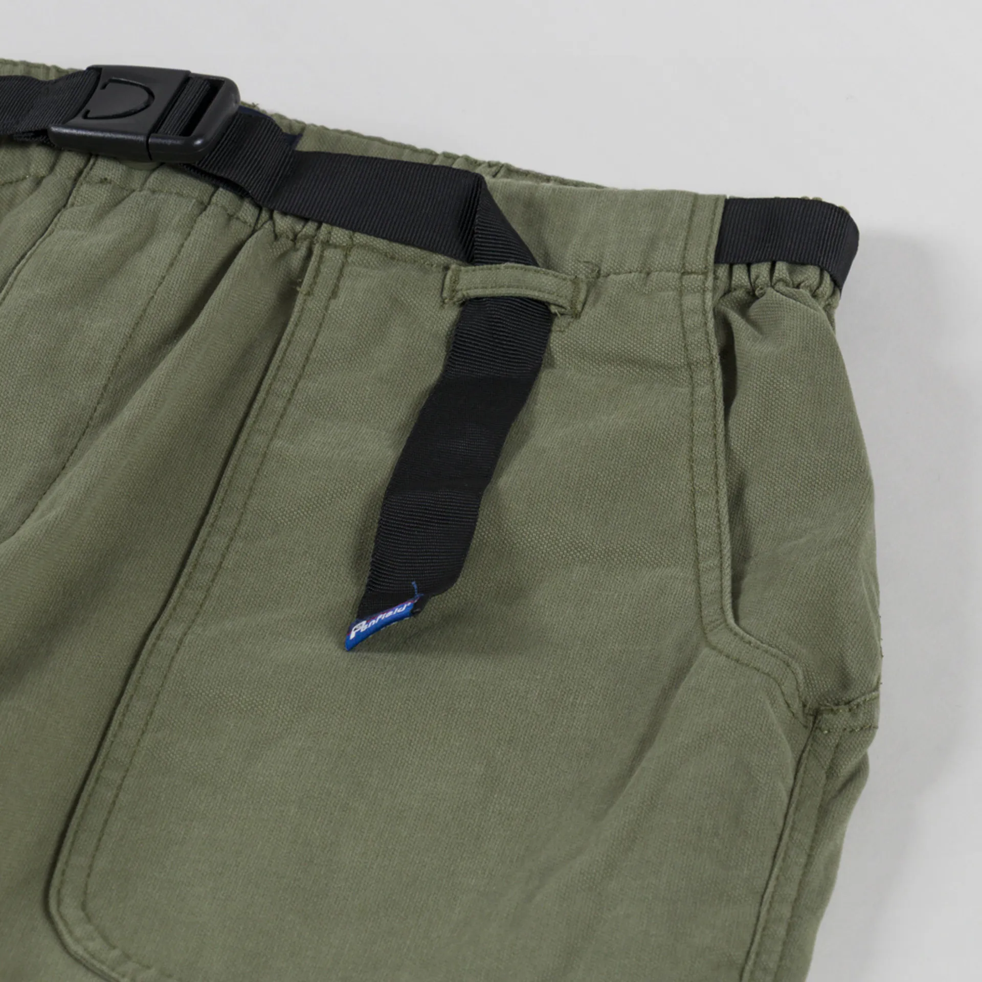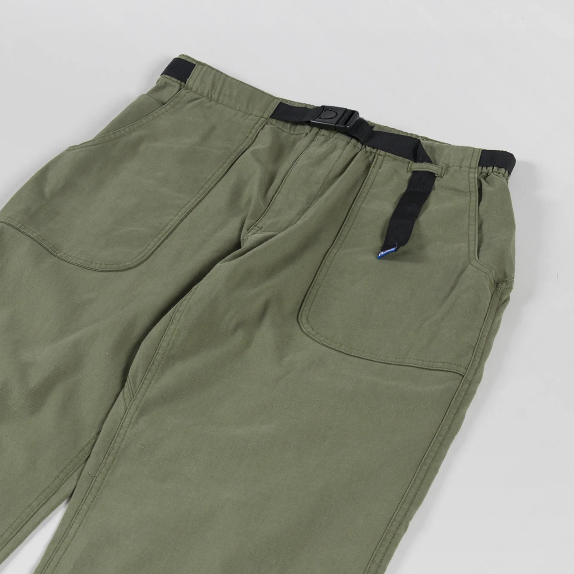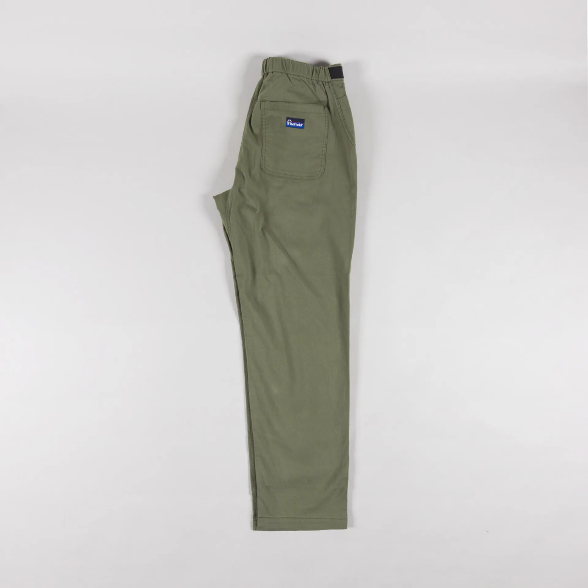 A pair of utility pants from Penfield, cut with a classic straight leg from a hardwearing dobby cotton blend with reinforced stitching for extra durability. They have an elasticated waistband with an integrated belt to adjust the fit, two front pockets, two back patch pockets and a gusset panel construction for freedom of movement. Finished off with the signature Penfield logo patch.