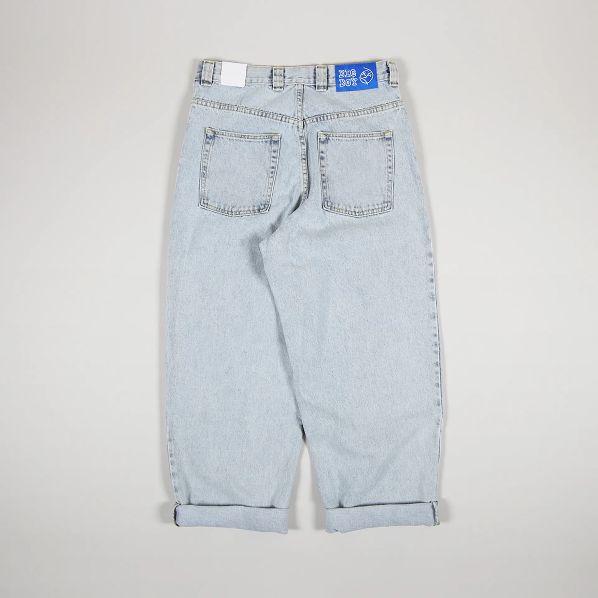 A pair of proper retro jeans from Polar Skate Co. made from a heavy duty, yet soft and comfortable 100% cotton in a washed denim. They have a zip and button fly, five pocket design and an embroidered art character to the right pocket, and a Big Boy Jeans patch to the waist.