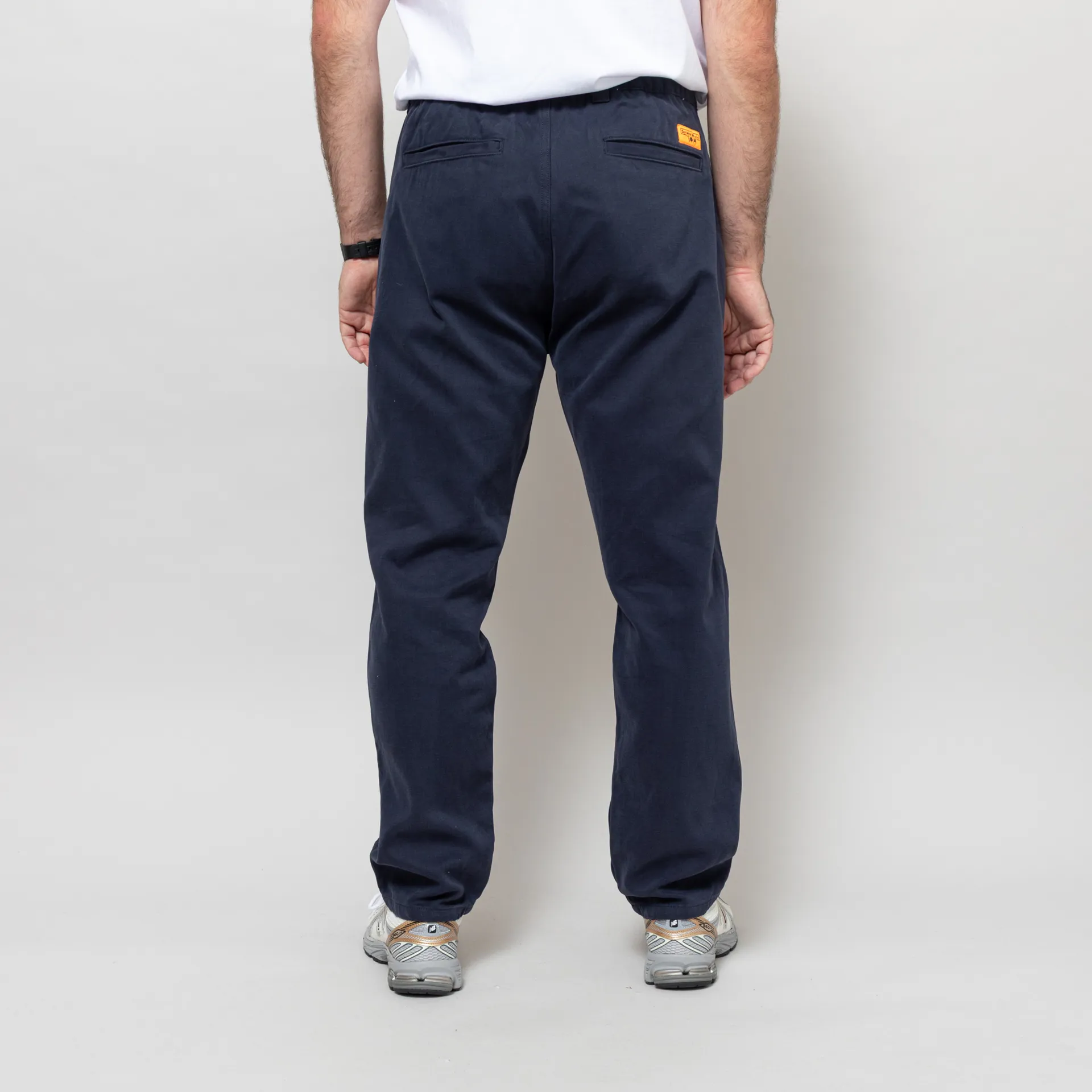 The Moleskin Waiter Pants from Service Works are a more formal version of the classic Chef Pant, cut in a relaxed fit with a tapered leg. They have been constructed from 100% organic cotton moleskin, a hard-wearing, wind-resistant and breathable fabric, ideal for workwear. They feature a zip and button fly, leading to an elastic waistband with belt loops, and pleating details down the front. It has two slanted pockets to the front and two welt pockets to the rear, finished with the classic orange Service Works logo patch.