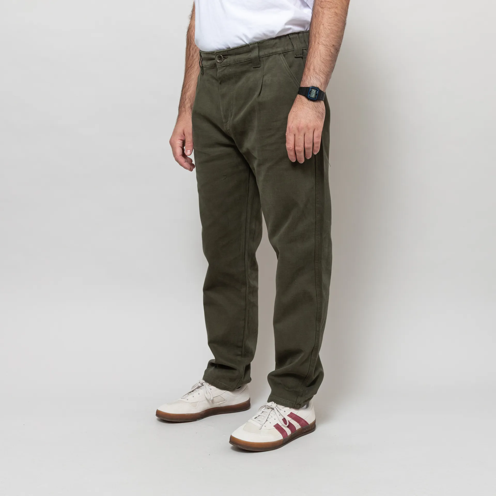 The Moleskin Waiter Pants from Service Works are a more formal version of the classic Chef Pant, cut in a relaxed fit with a tapered leg. They have been constructed from 100% organic cotton moleskin, a hard-wearing, wind-resistant and breathable fabric, ideal for workwear. They feature a zip and button fly, leading to an elastic waistband with belt loops, and pleating details down the front. It has two slanted pockets to the front and two welt pockets to the rear, finished with the classic orange Service Works logo patch.