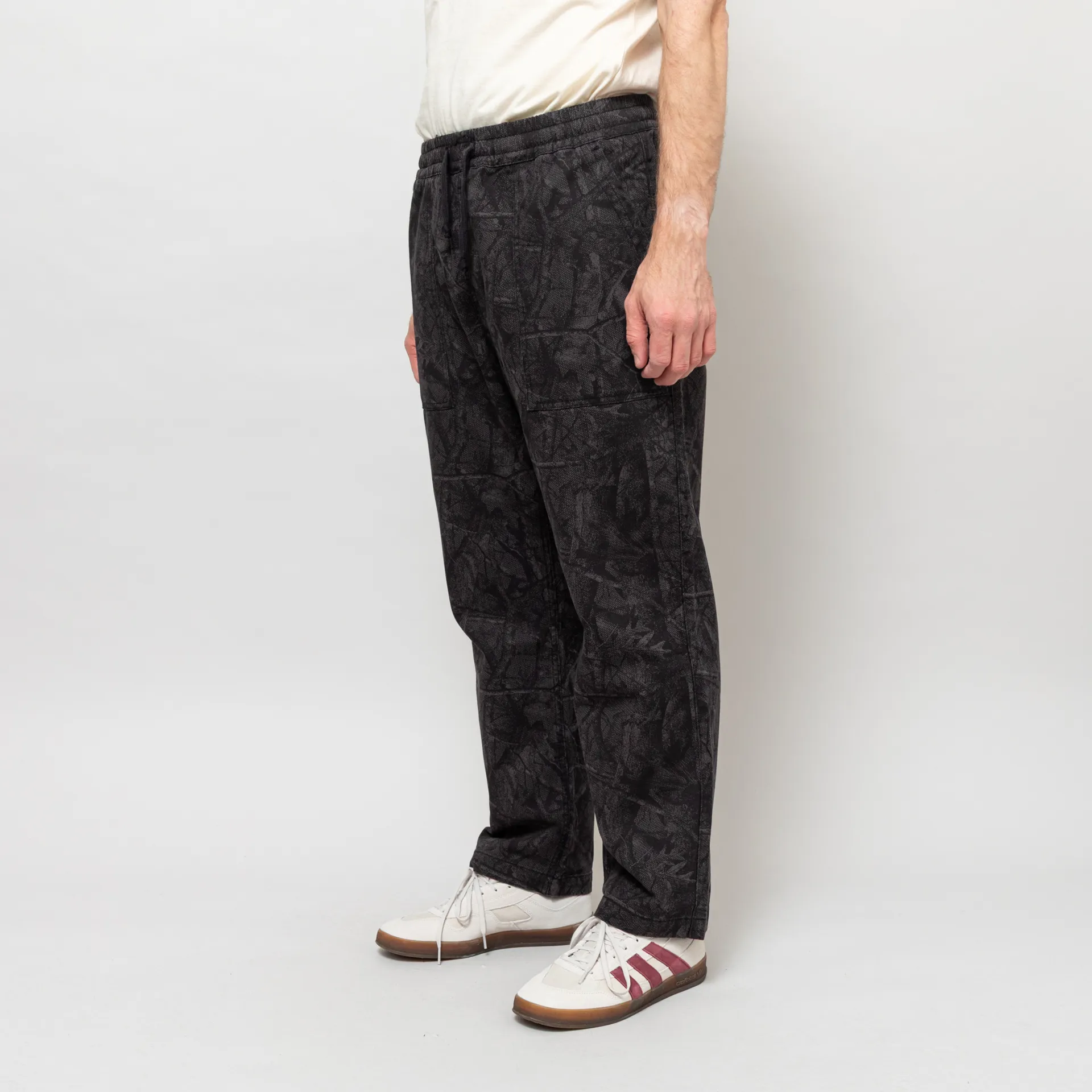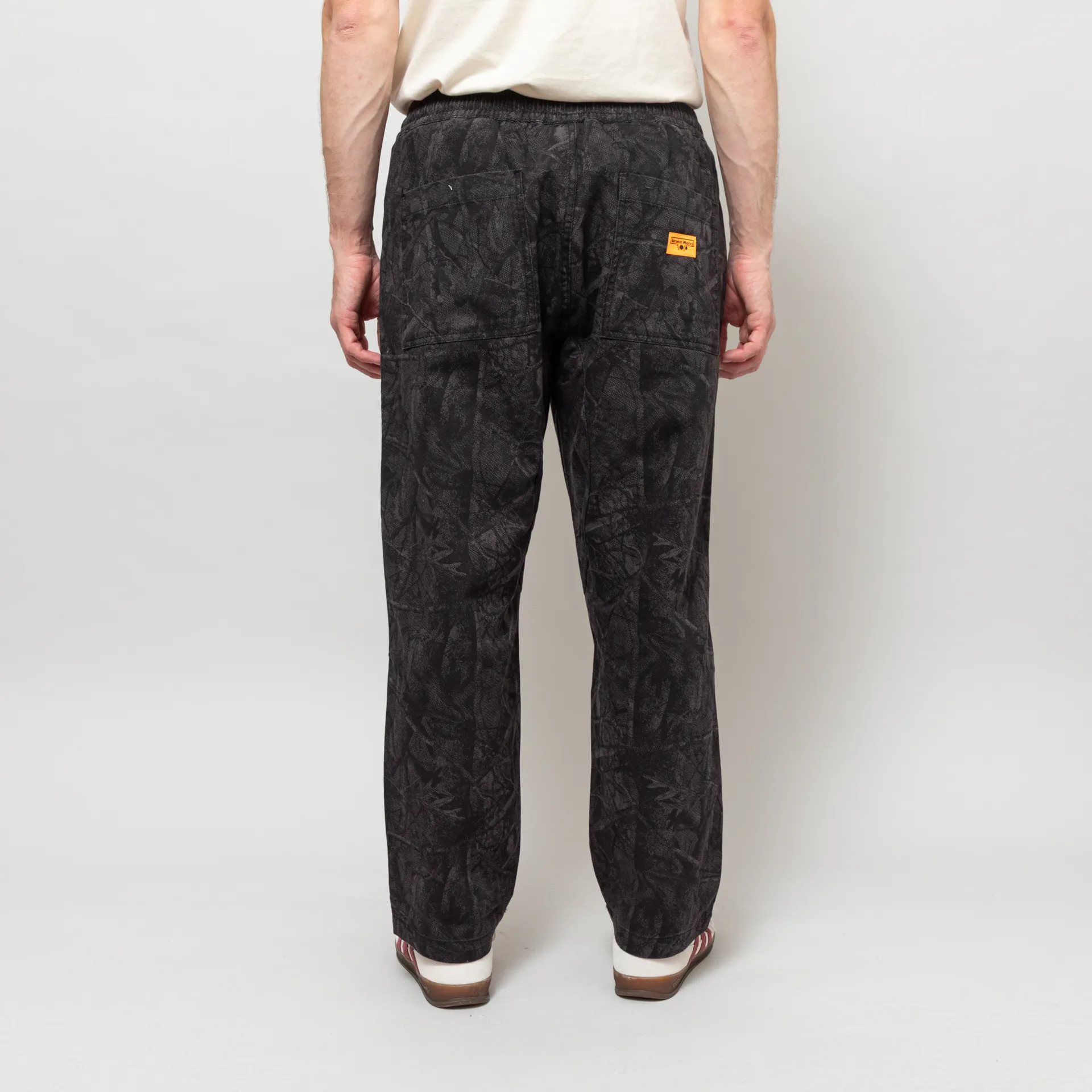 The Xerox Chef Pants from Service Works are cut in a relaxed fit with a straight leg, constructed from 100% organic cotton drill with an all-over rotary printed camo design. These pants feature an elastic waistband, adjustable drawstrings at the front, two front fatigue pockets and two classic patch pockets to the back. Finished with the signature orange Service Works woven logo patch to the rear.