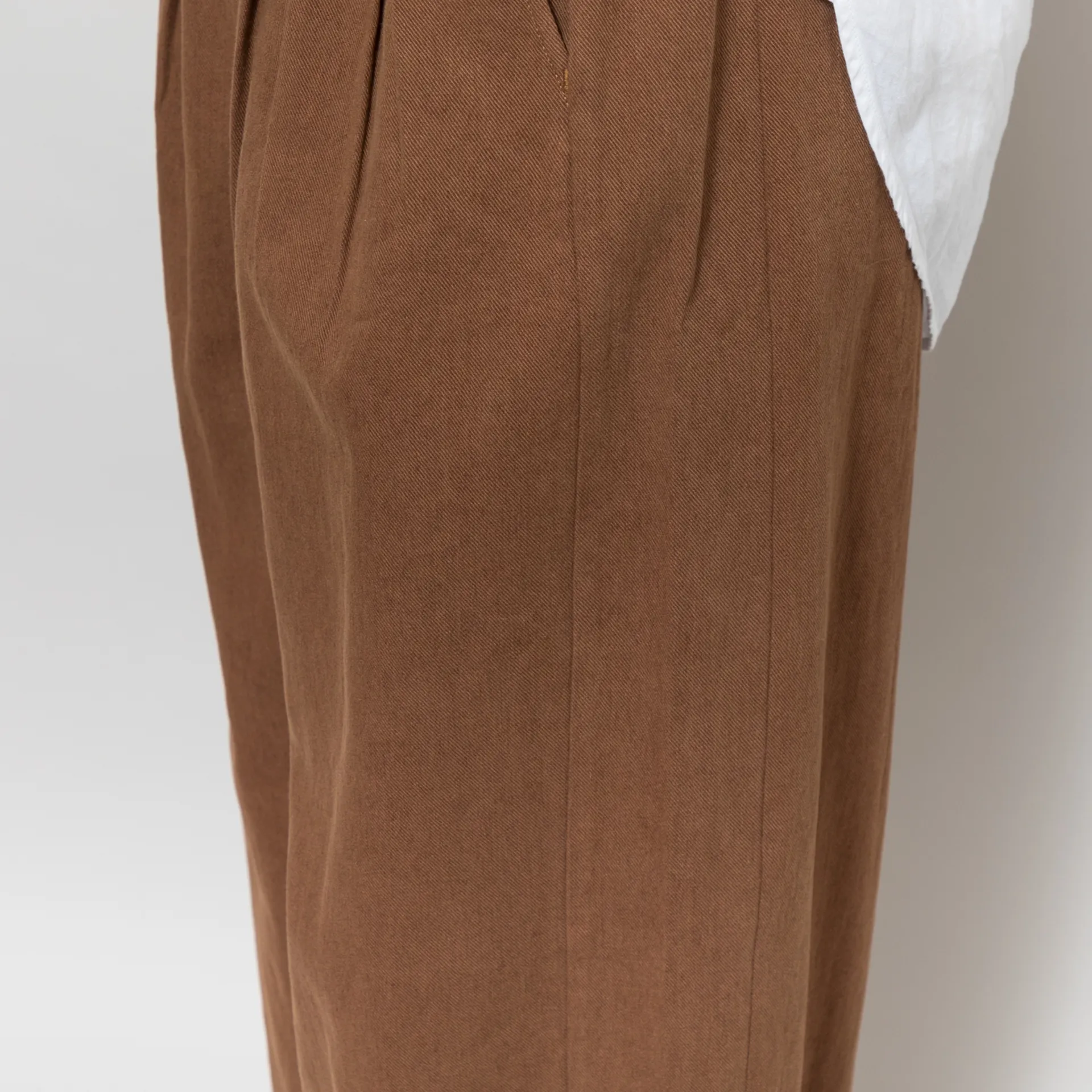 The Leila Trousers from Sideline have been cut in a regular fit with a loose, barrel-shaped leg and are crafted from a durable cotton/linen blend. They have a zip and button fly, leading to a partially elasticated waistband, with front pleat details for added structure, two front pockets and two patch pockets to the back.