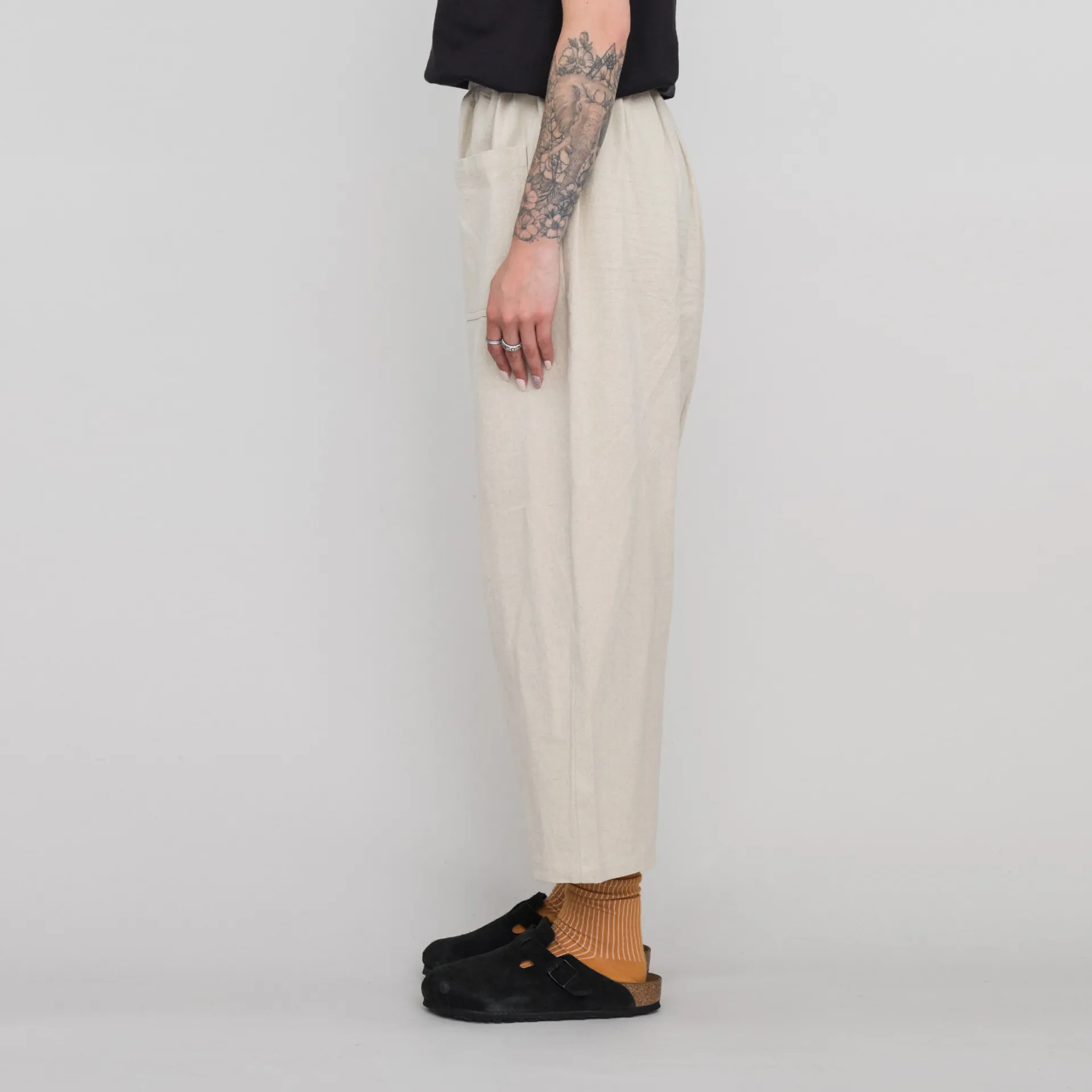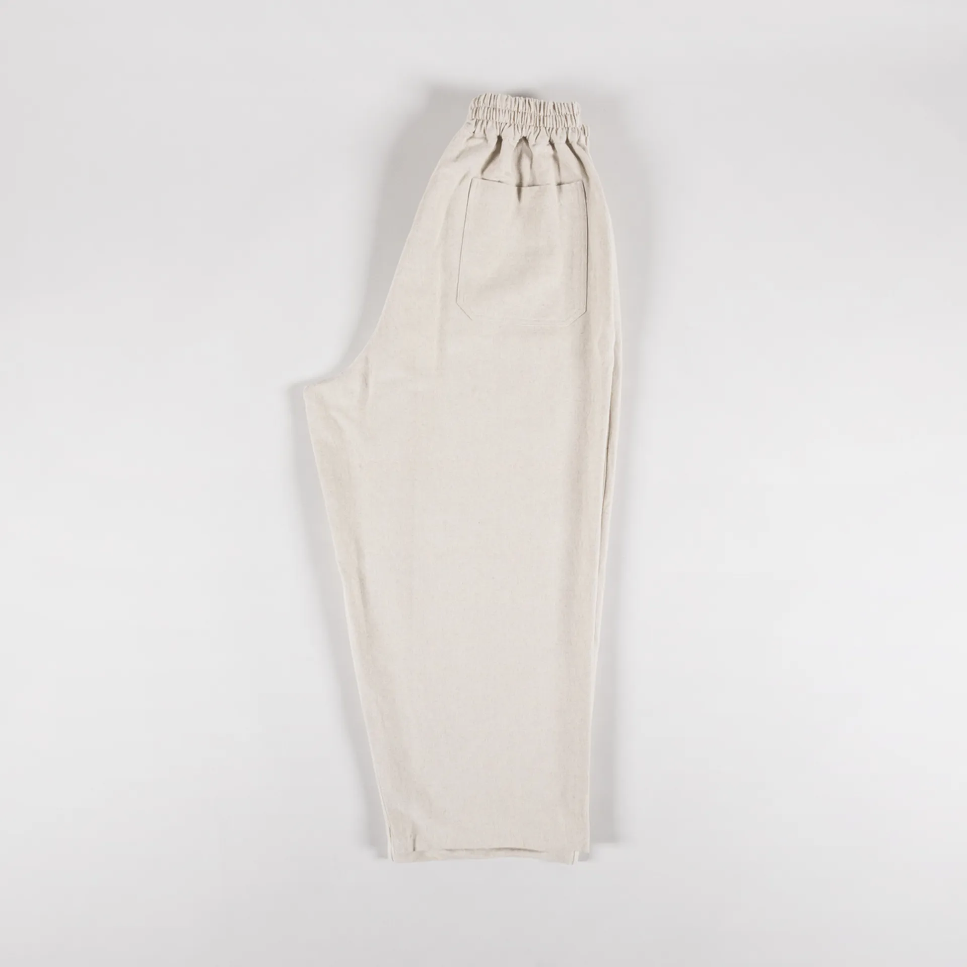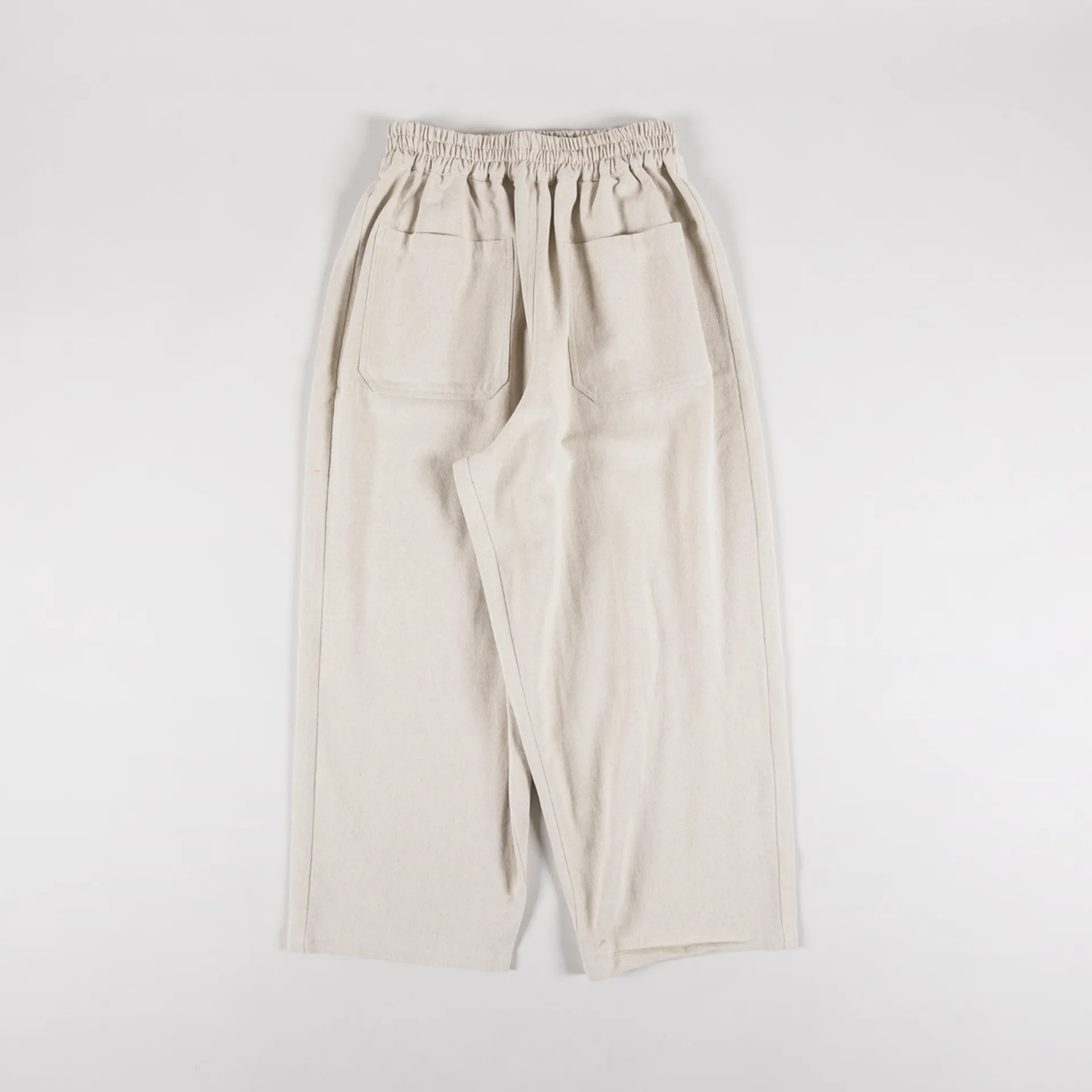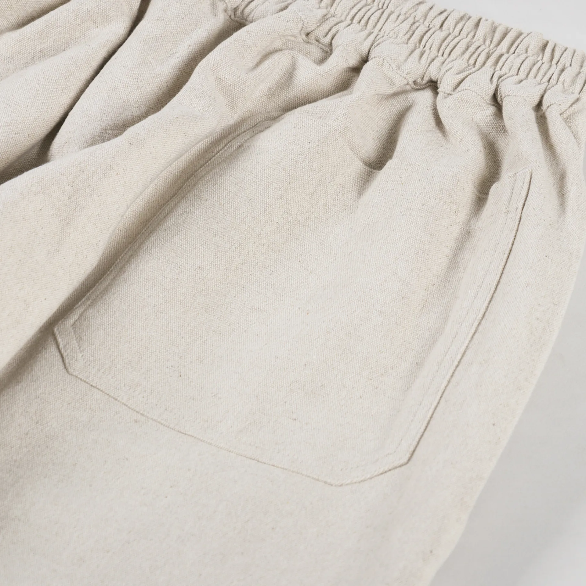 The Mary Trousers are based on Sideline's best-selling Billy Trousers, designed in a loose-fitting leg silhouette, crafted from a cotton indigo blend with a subtle check design within the weave. The elasticated waist sits on the hips, while the leg falls to just above the ankle. They feature a three-pocket design, two spacious patch pockets to the front and a third to the rear.
