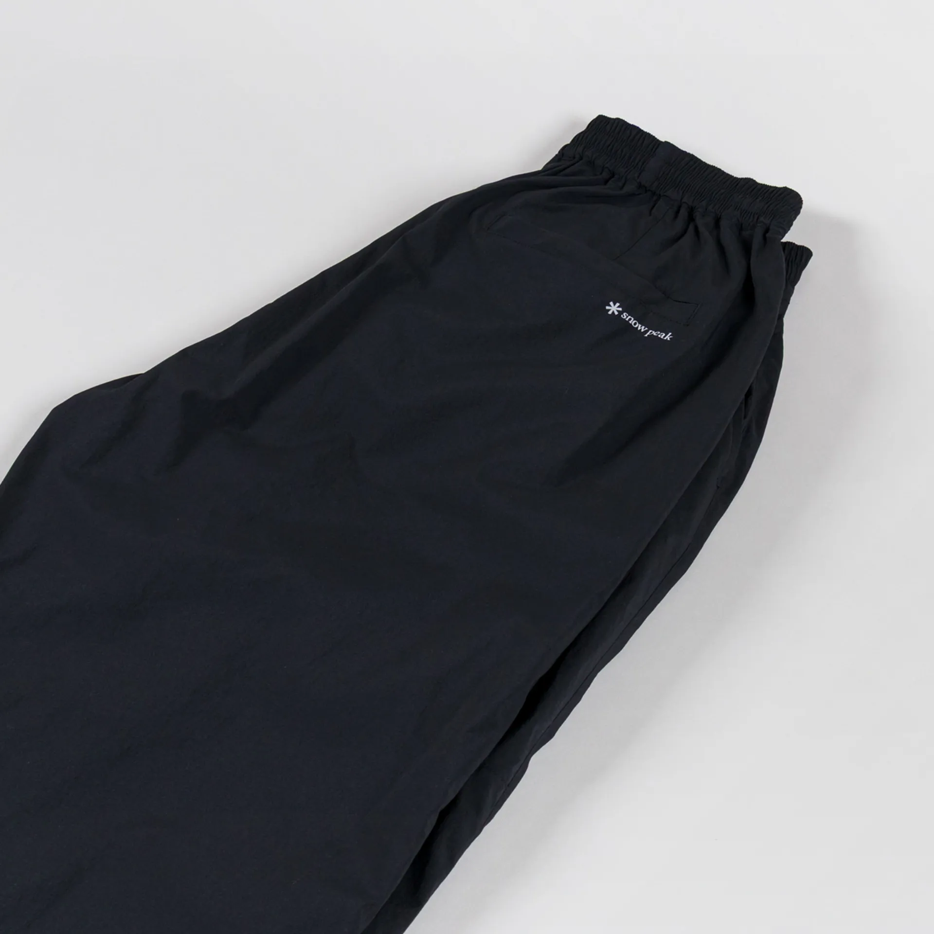 A pair of lightweight nylon trousers from Snow Peak, constructed with a durable water resistant finish for protection against light rainfall. They have an elasticated waistband with internal drawstrings for adjustability and a wide-cut leg for freedom of movement. There's two hand pockets at the front, two back welt pockets and a reflective Snow Peak logo at the back.
