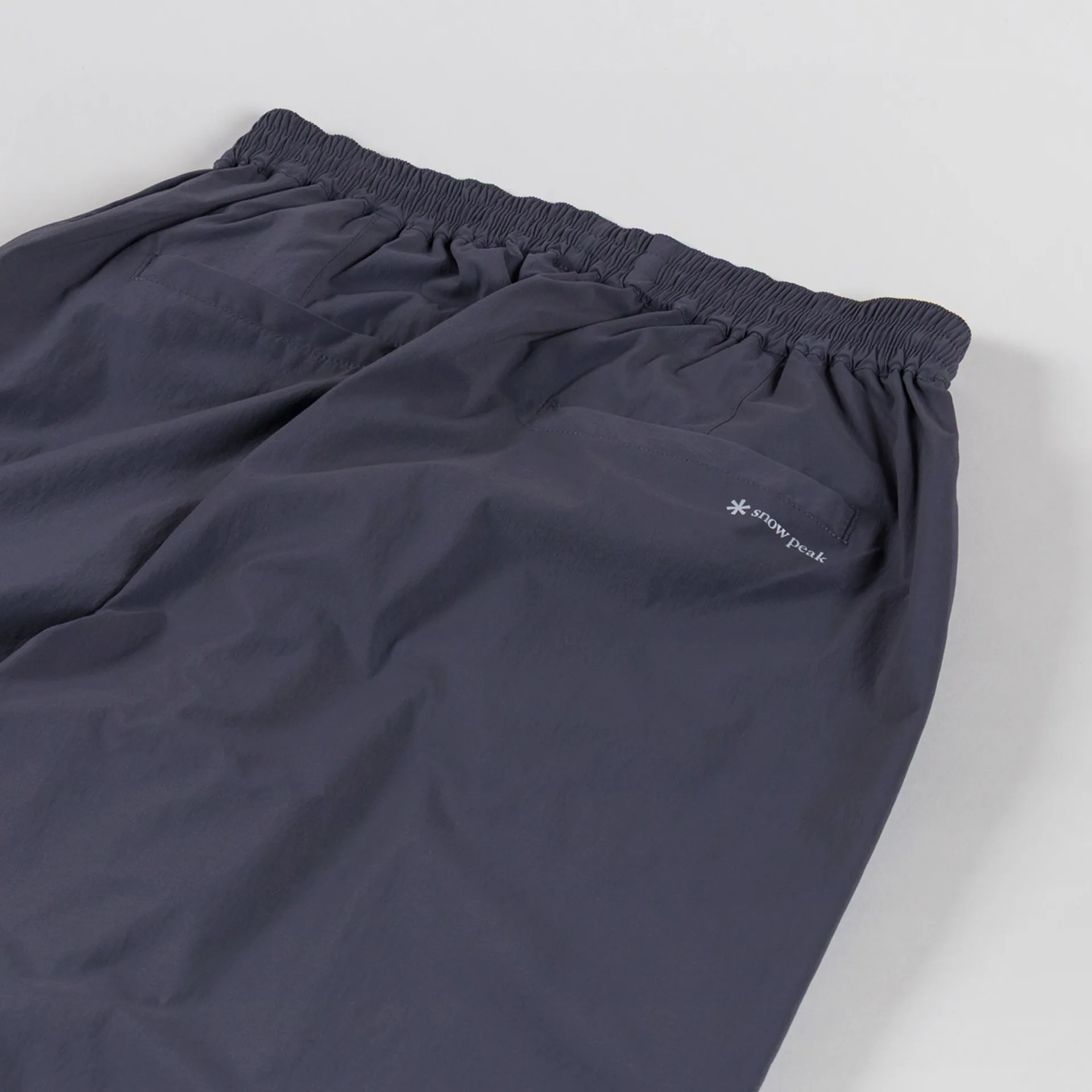 A pair of lightweight nylon trousers from Snow Peak, constructed with a durable water resistant finish for protection against light rainfall. They have an elasticated waistband with internal drawstrings for adjustability and a wide-cut leg for freedom of movement. There's two hand pockets at the front, two back welt pockets and a reflective Snow Peak logo at the back.