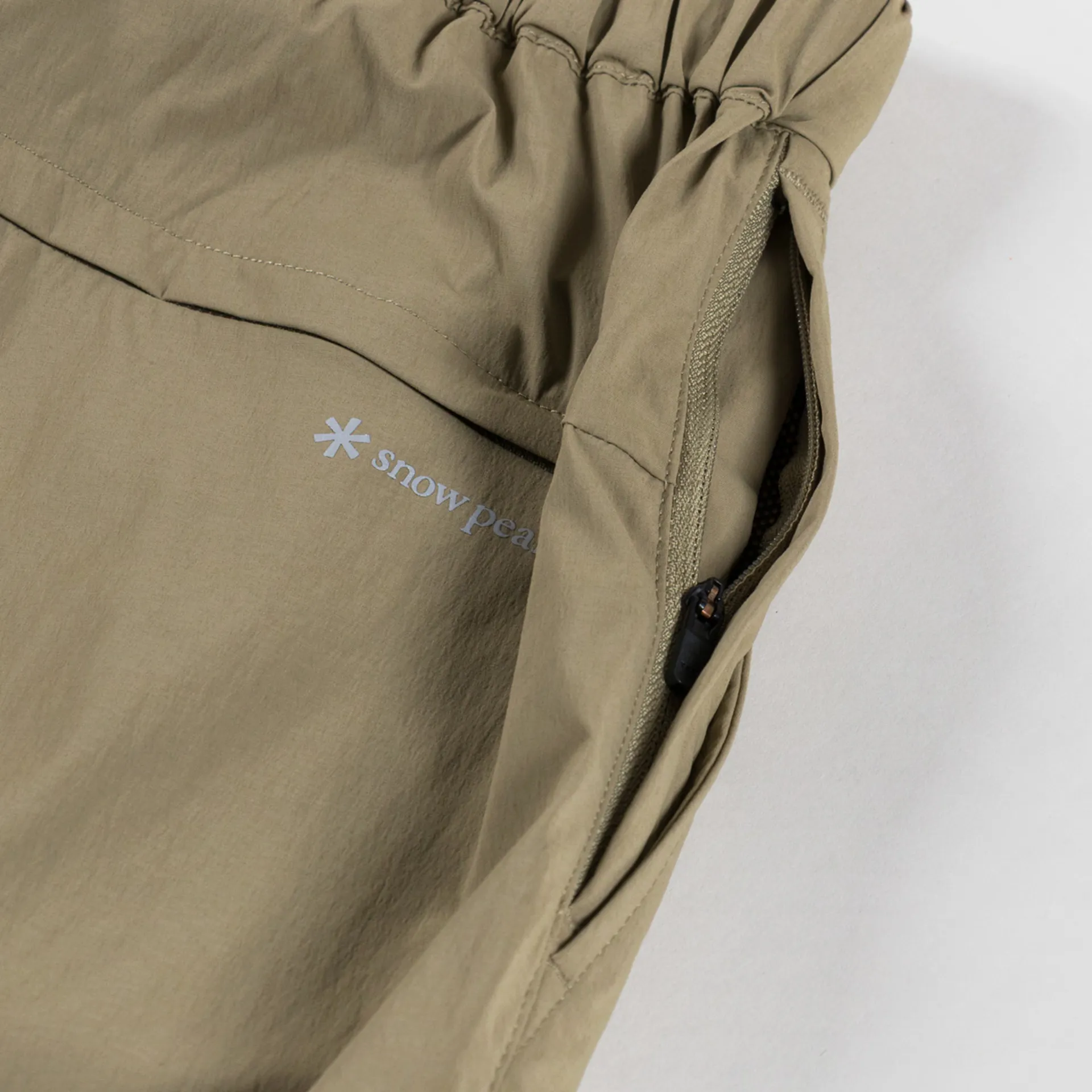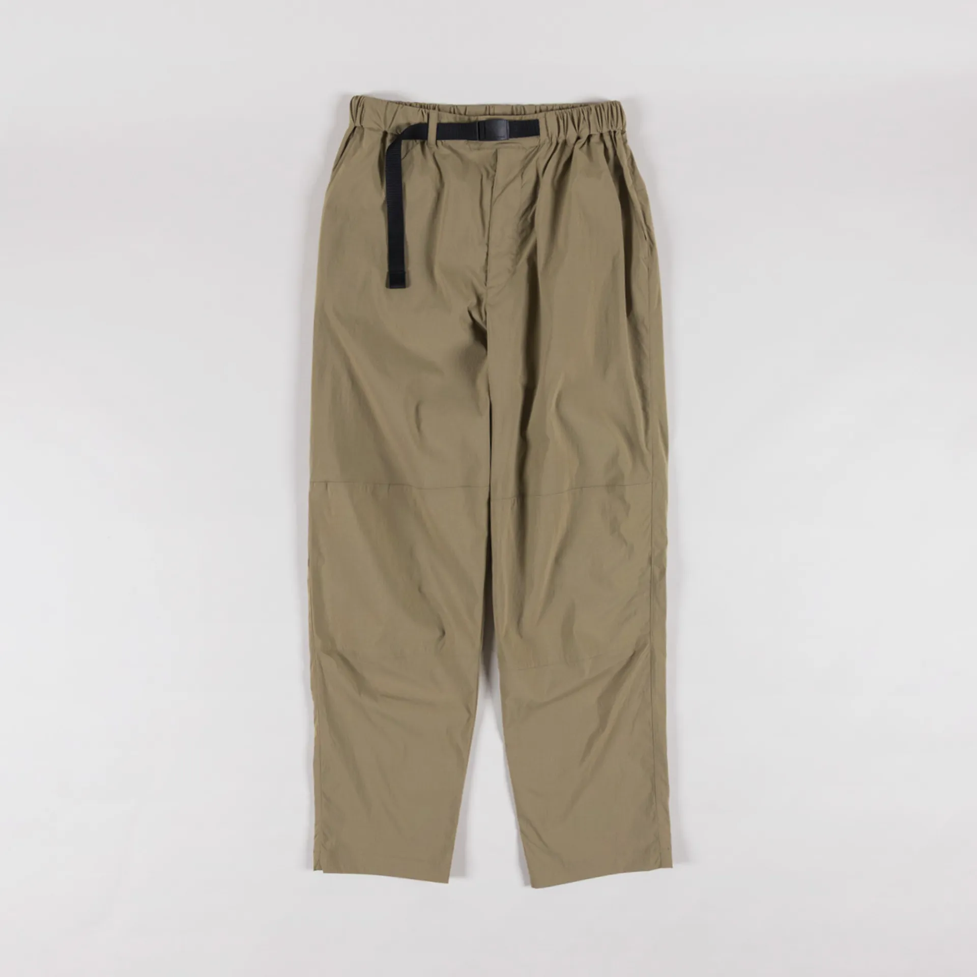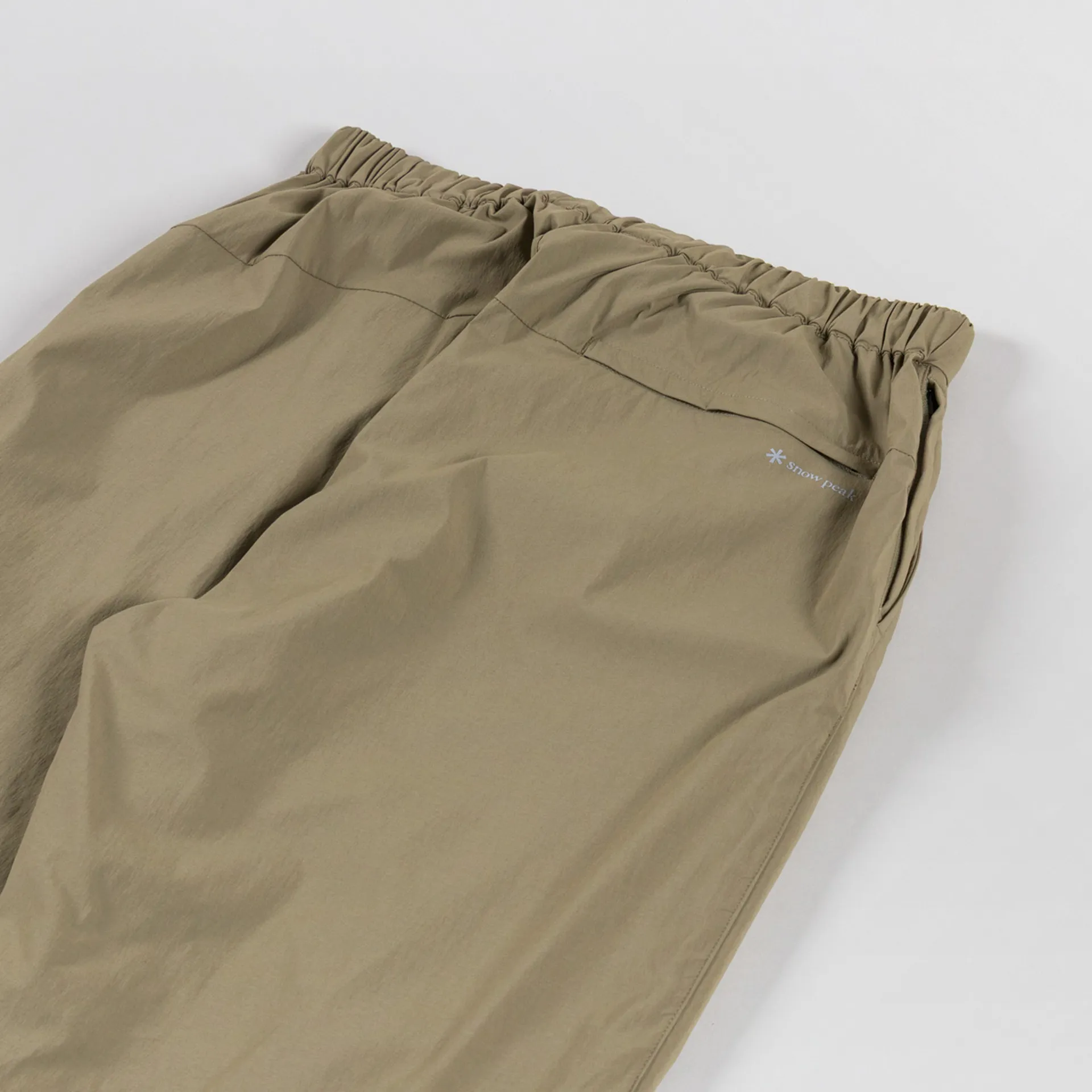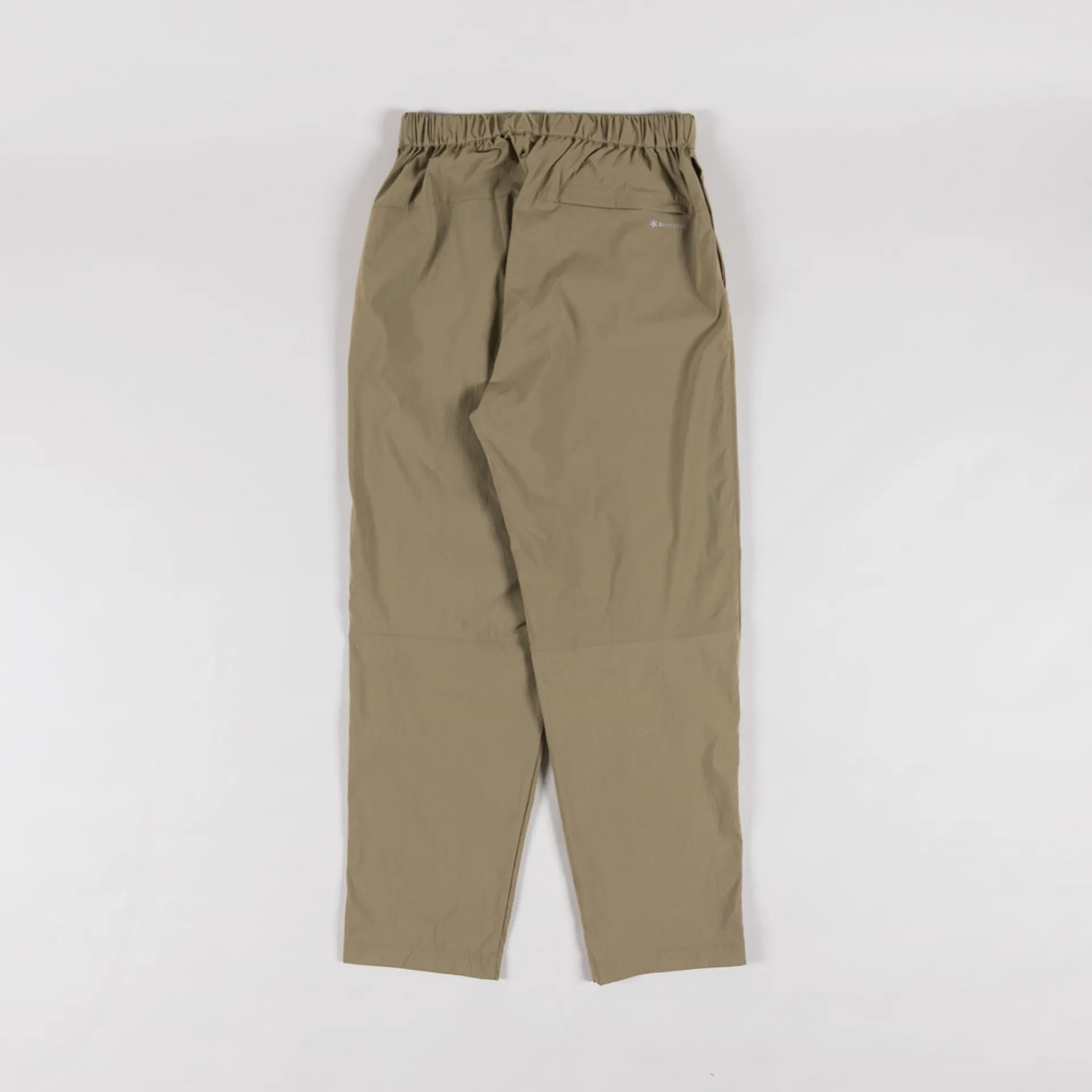 A pair of lightweight nylon trousers from Snow Peak, cut with a regular fitting waist and a straight leg. They have a durable water-resistant finish for protection against light rainfall, an elasticated waistband with integrated belt for adjustability and a classic three-pocket design. Finished with the signature Snow Peak logo to the rear.