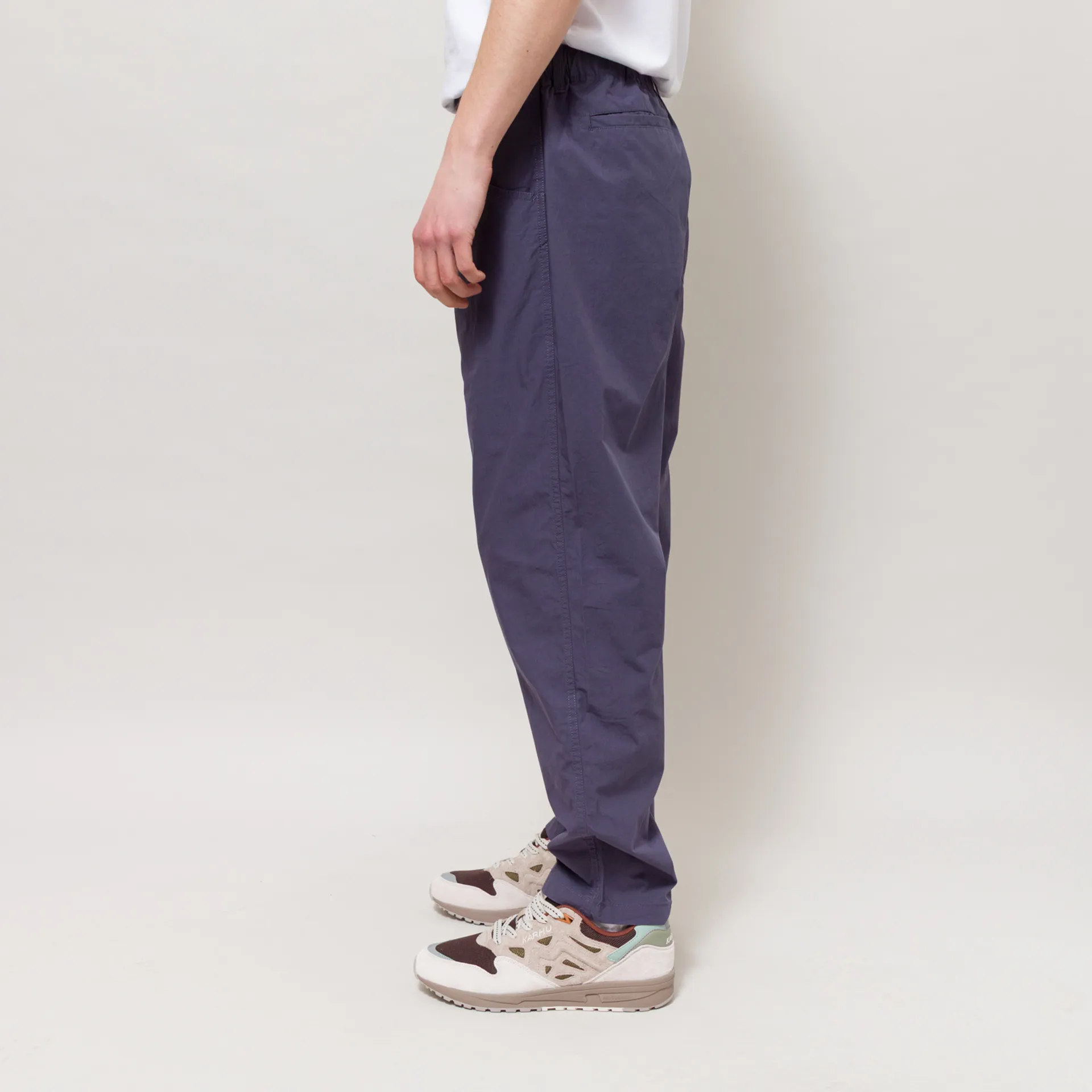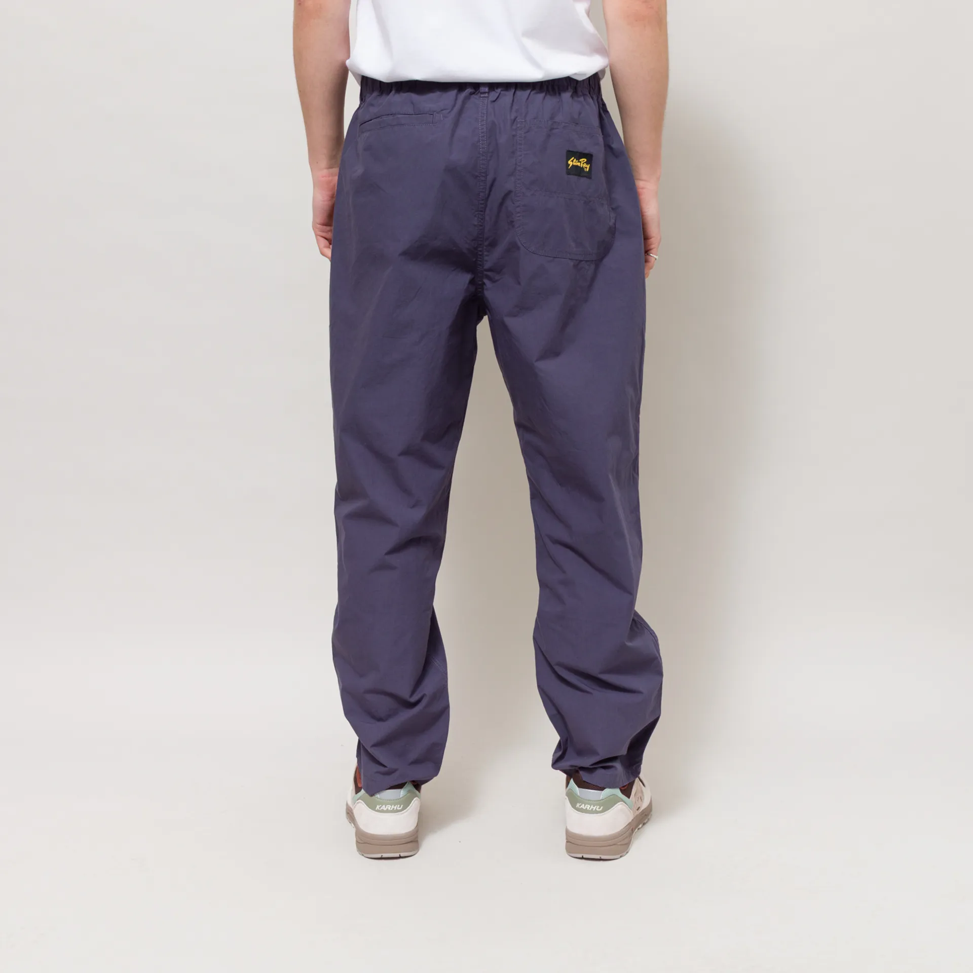 A pair of lightweight trousers from Stan Ray, constructed from durable cotton poplin fabric and cut in a relaxed fit with a tapered leg. They have a zip and button fly, leading to an elastic waistband, with internal drawstrings to adjust the fit. With three pockets at the front, a welt pocket and a patch pocket at the back, complete with a woven Stan Ray label.