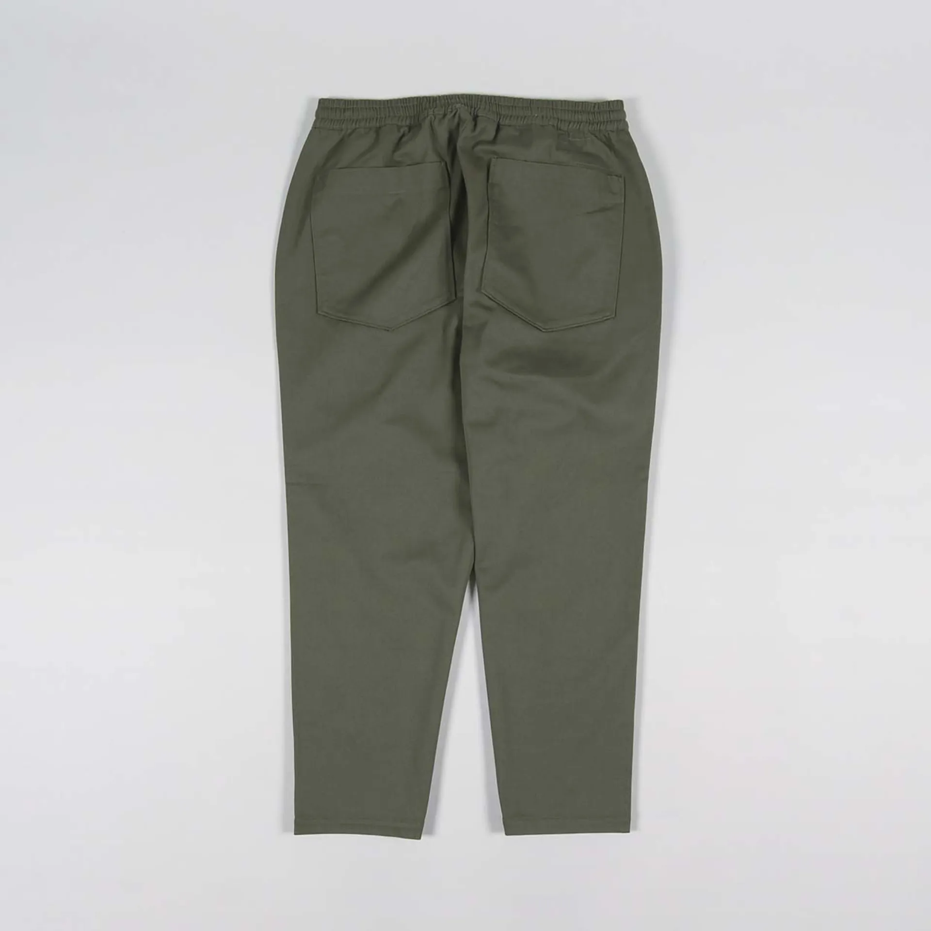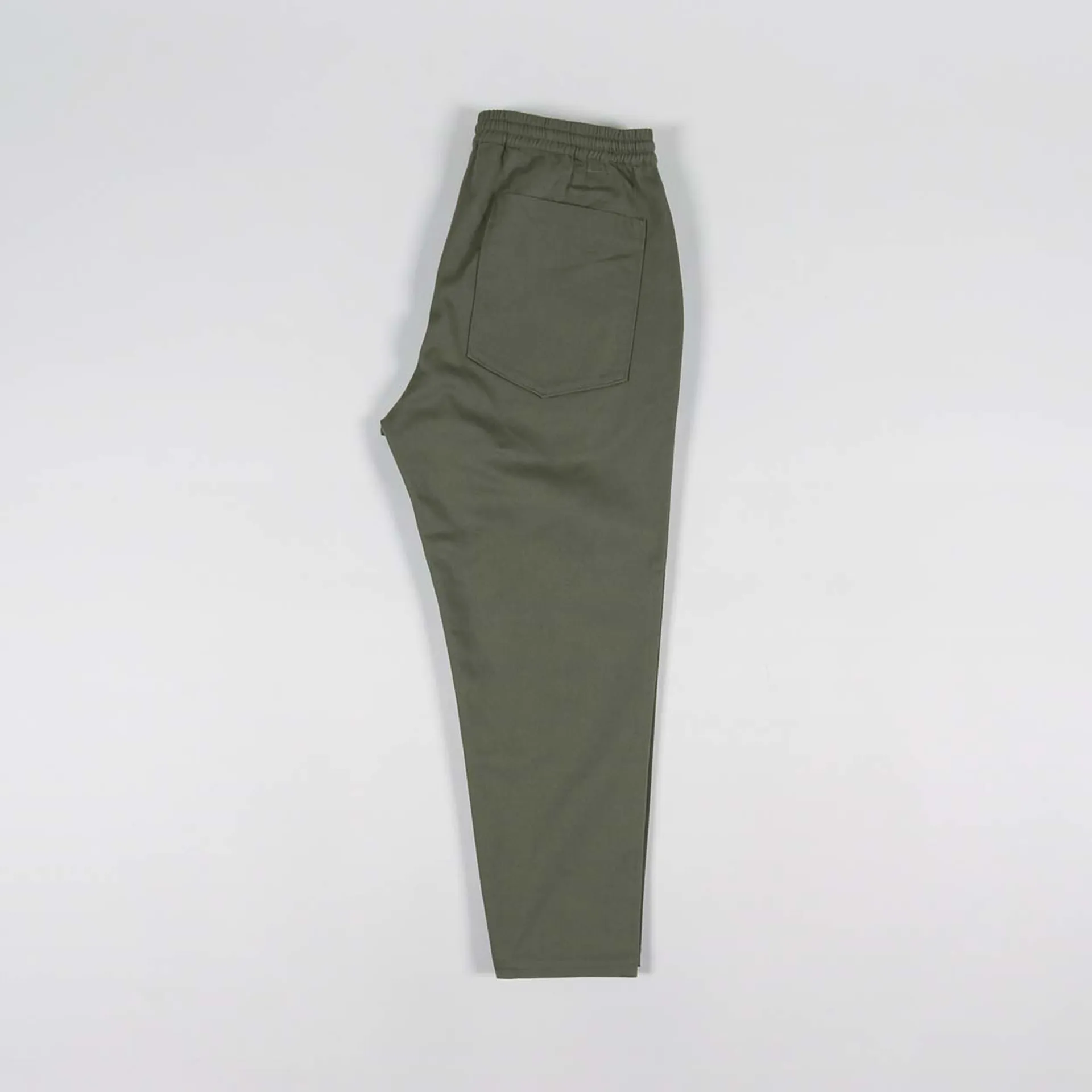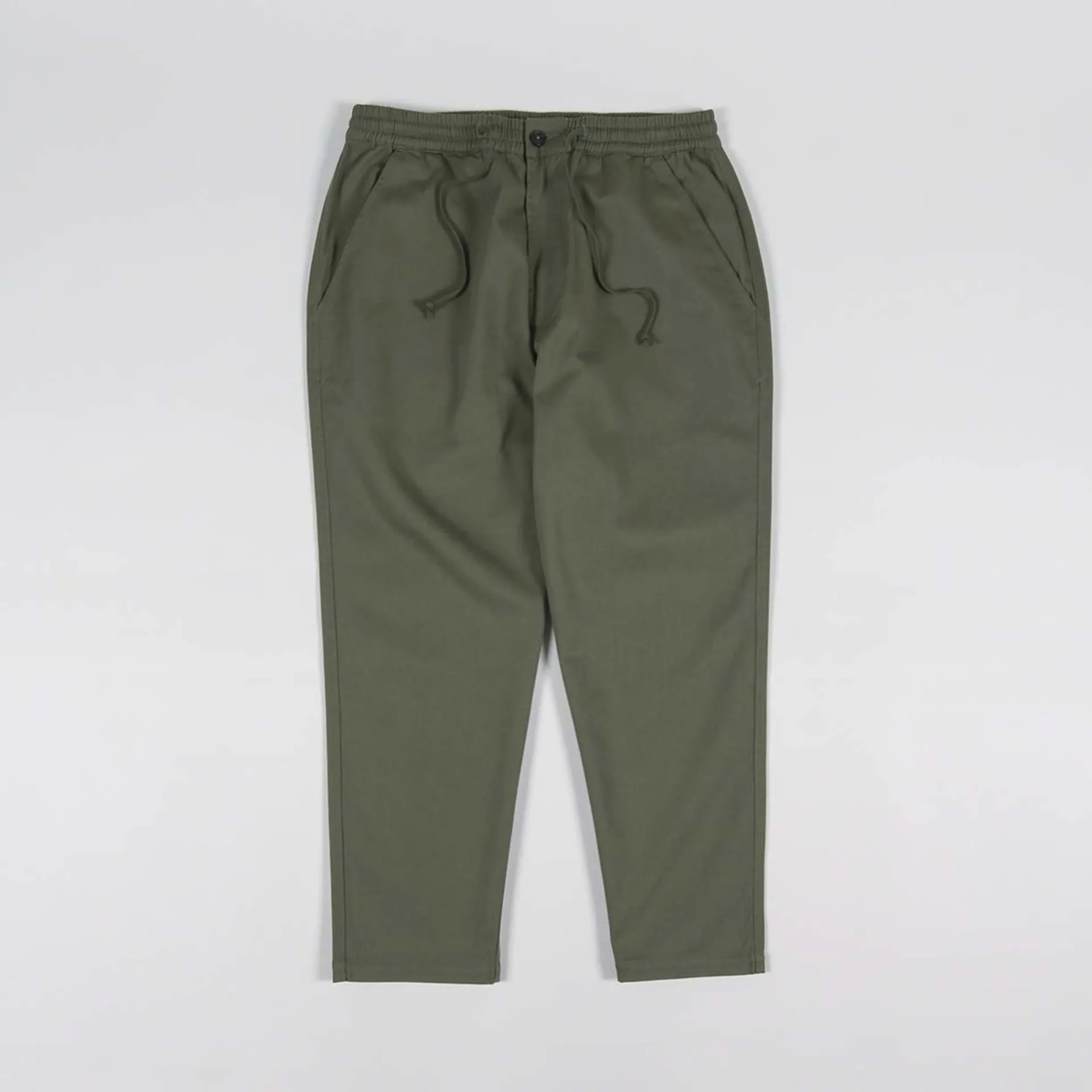 A pair of trousers from Universal Works, made from a proper comfortable 100% cotton in a classic twill with an elasticated and drawstring waist, a zip and button fly and a four pocket design.