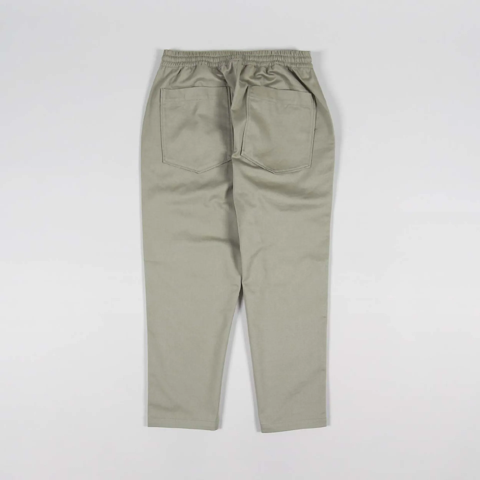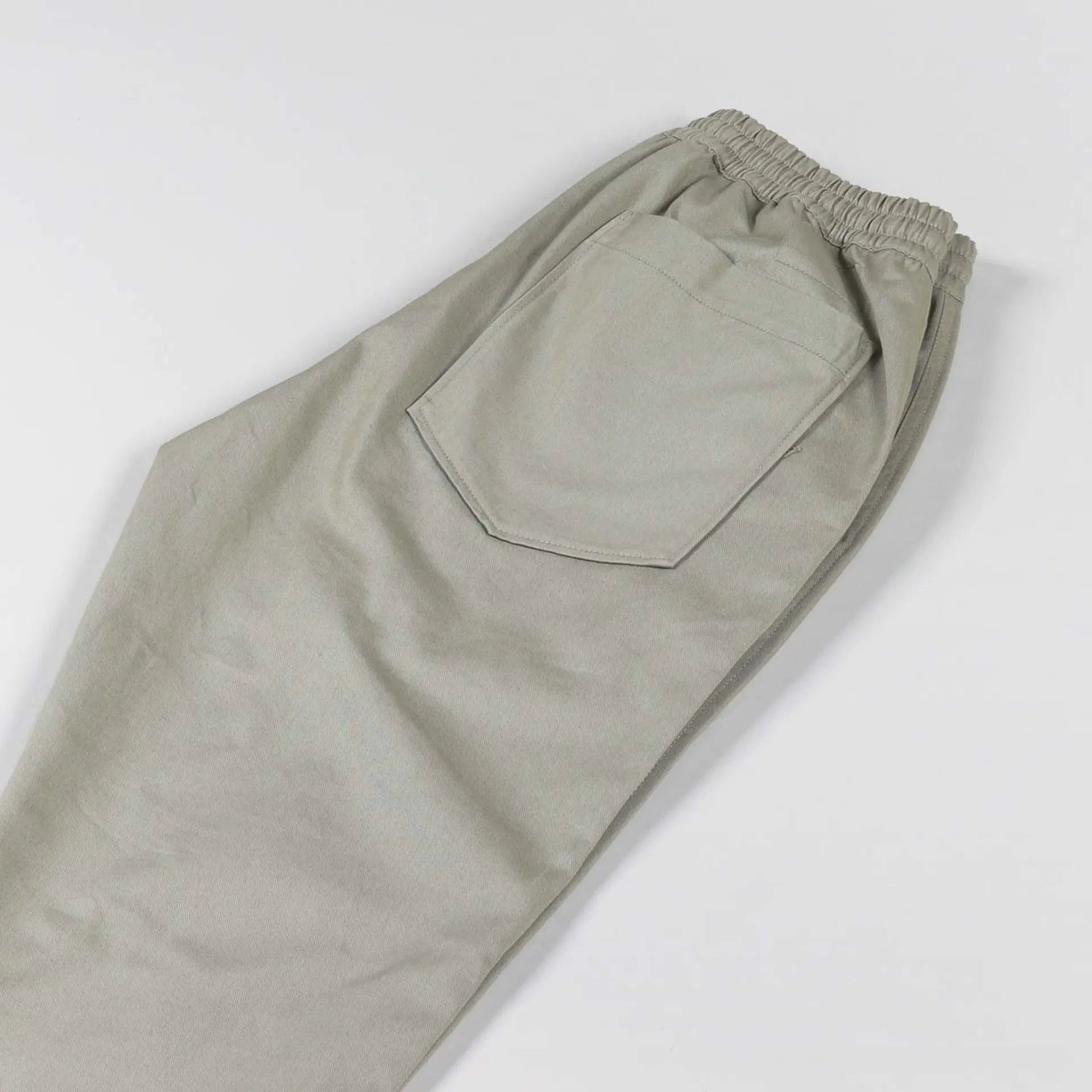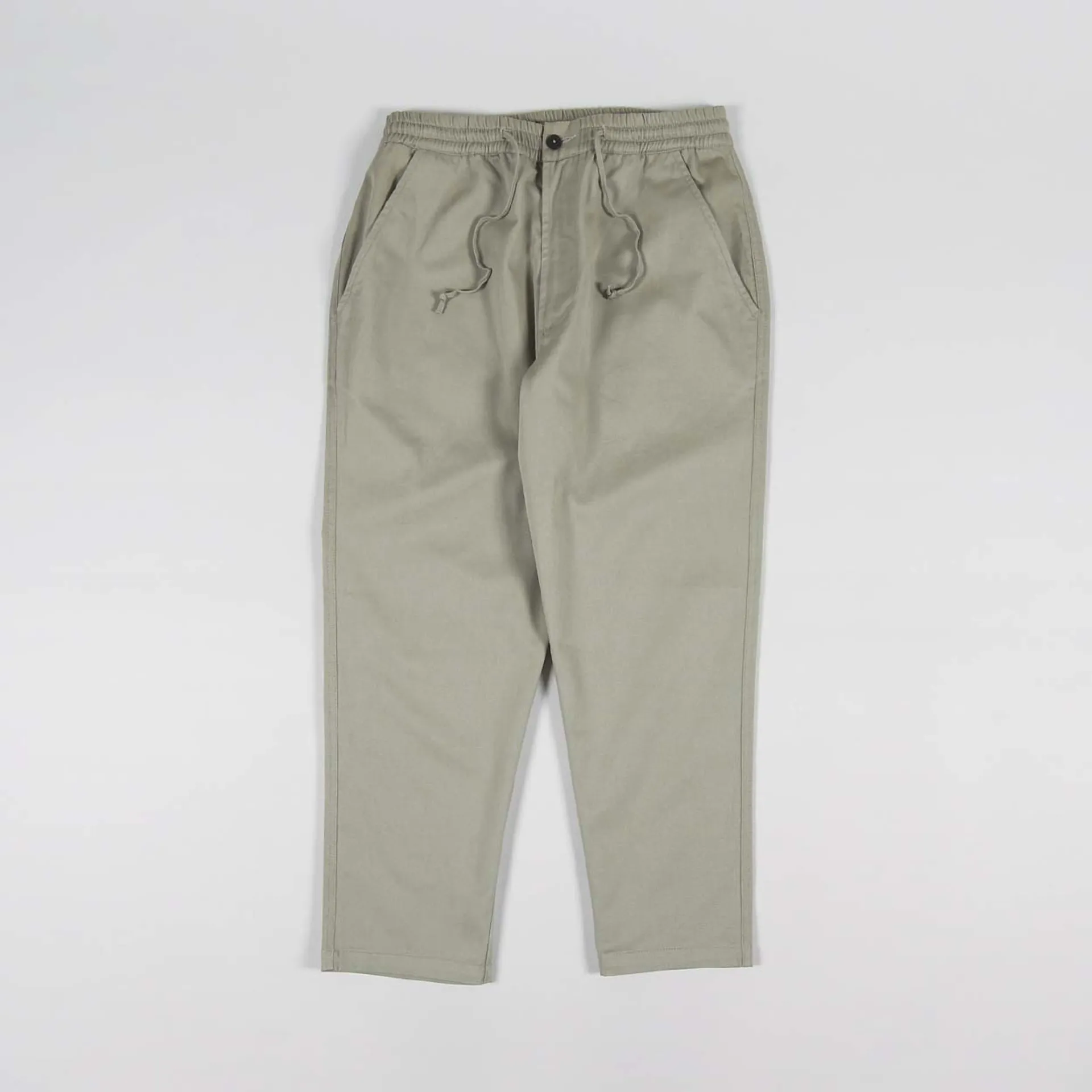 A pair of trousers from Universal Works, made from a proper comfortable 100% cotton in a classic twill with an elasticated and drawstring waist, a zip and button fly and a four pocket design.