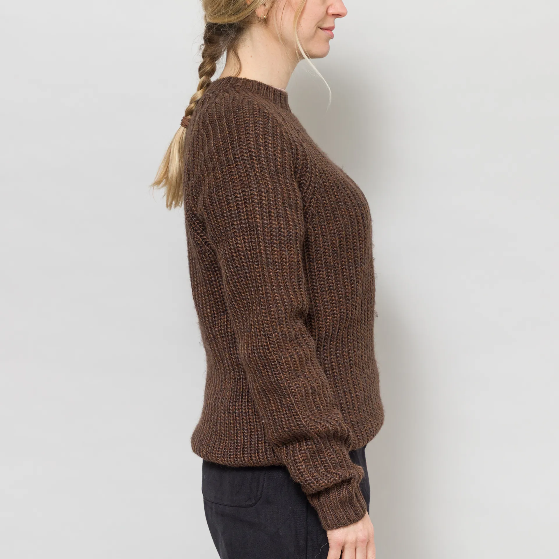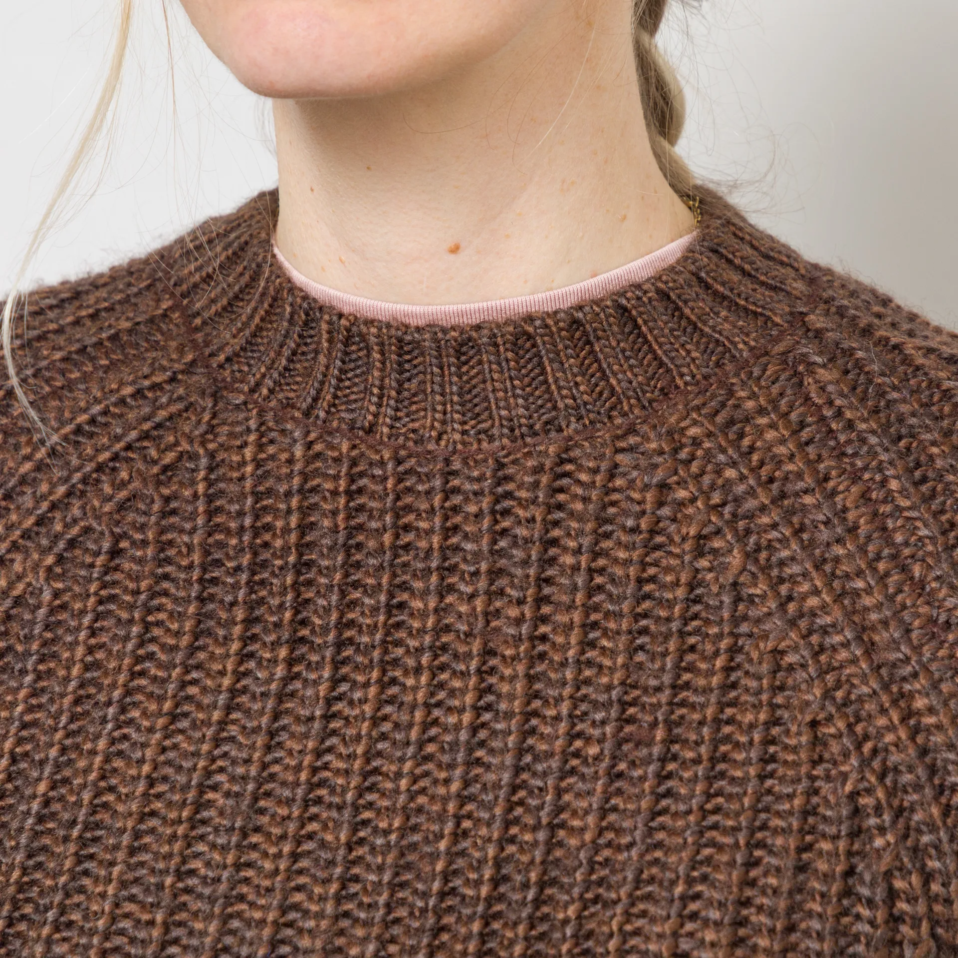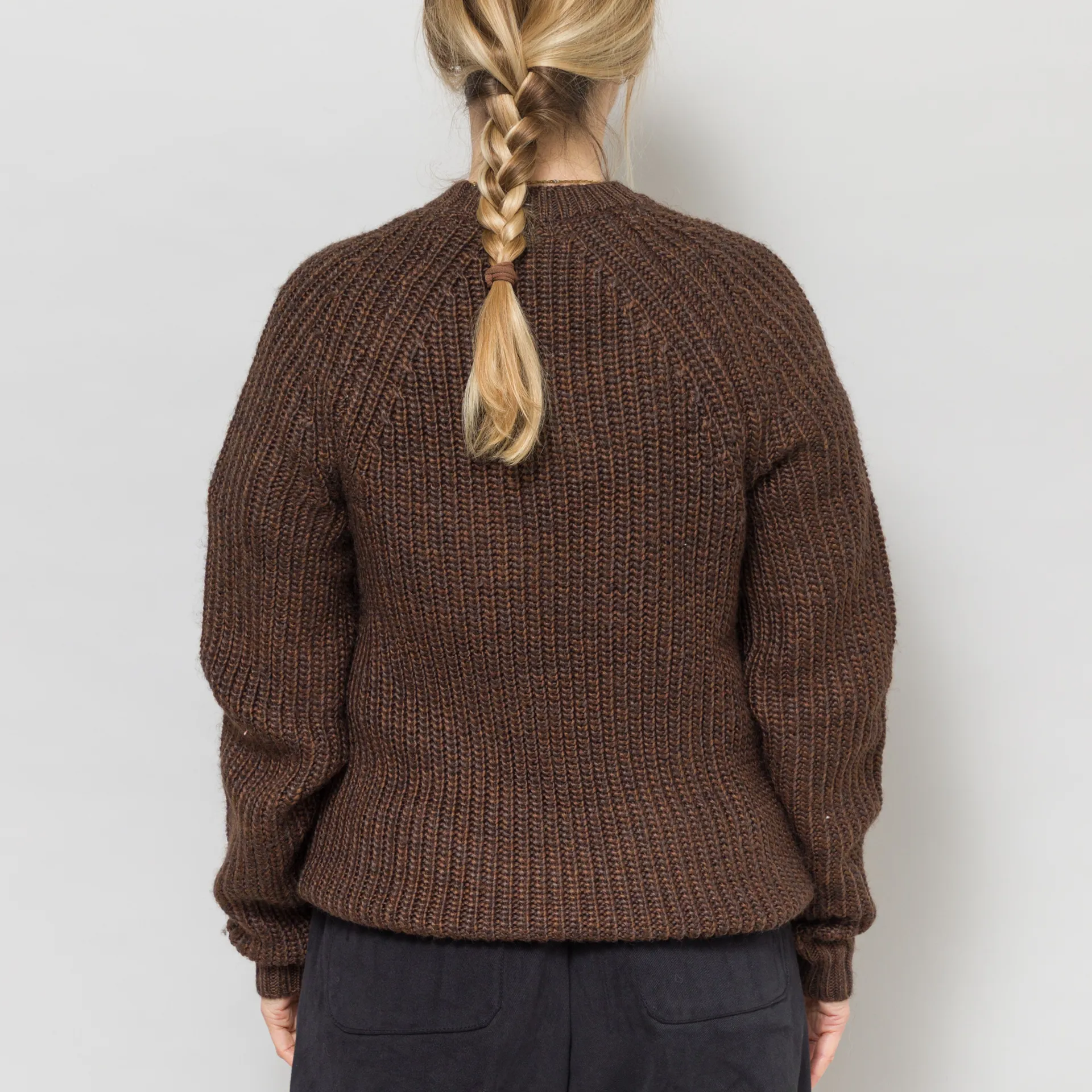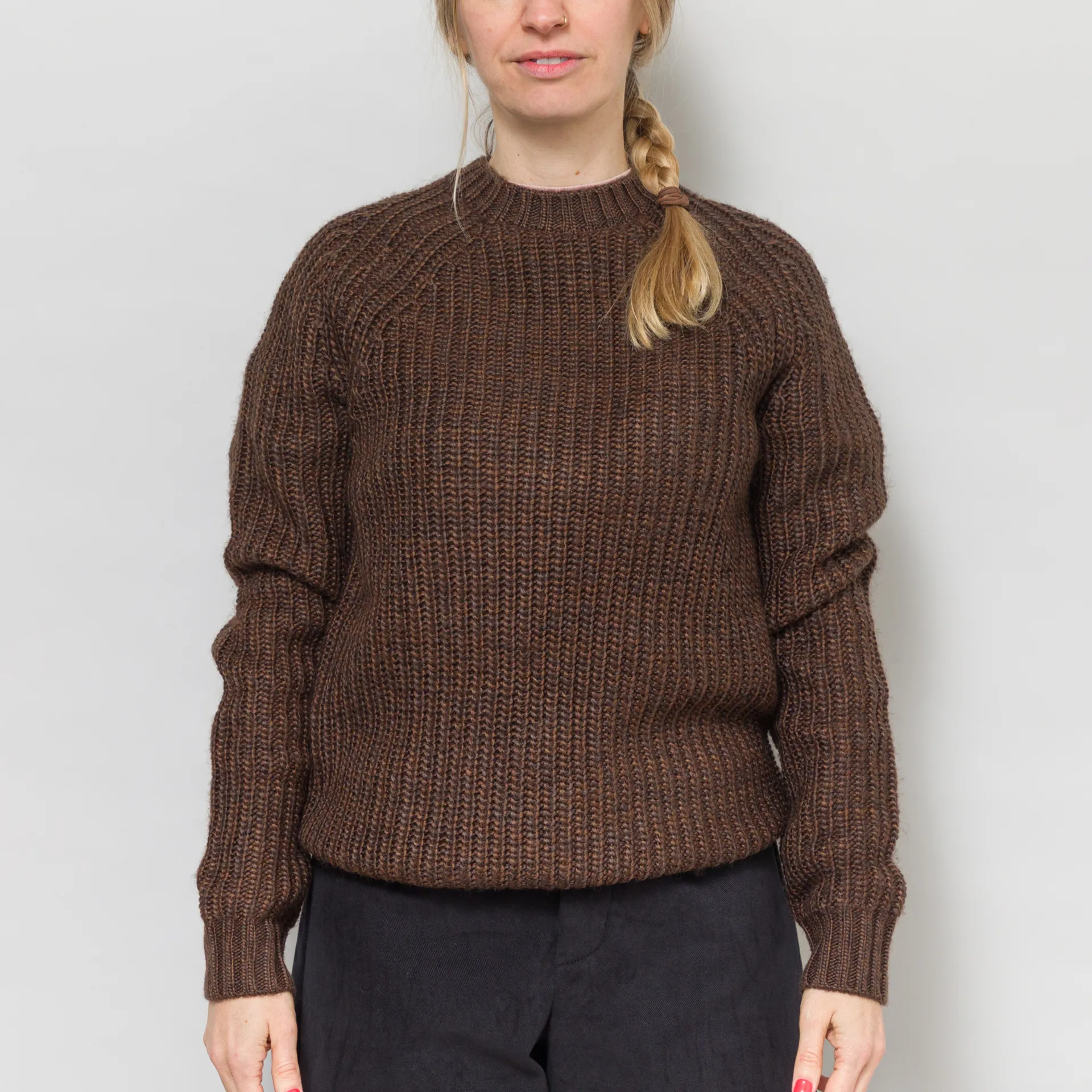 A knitted sweater from Anerkjendt, crafted from a soft wool/recycled polyester blend with a chunky knit construction.