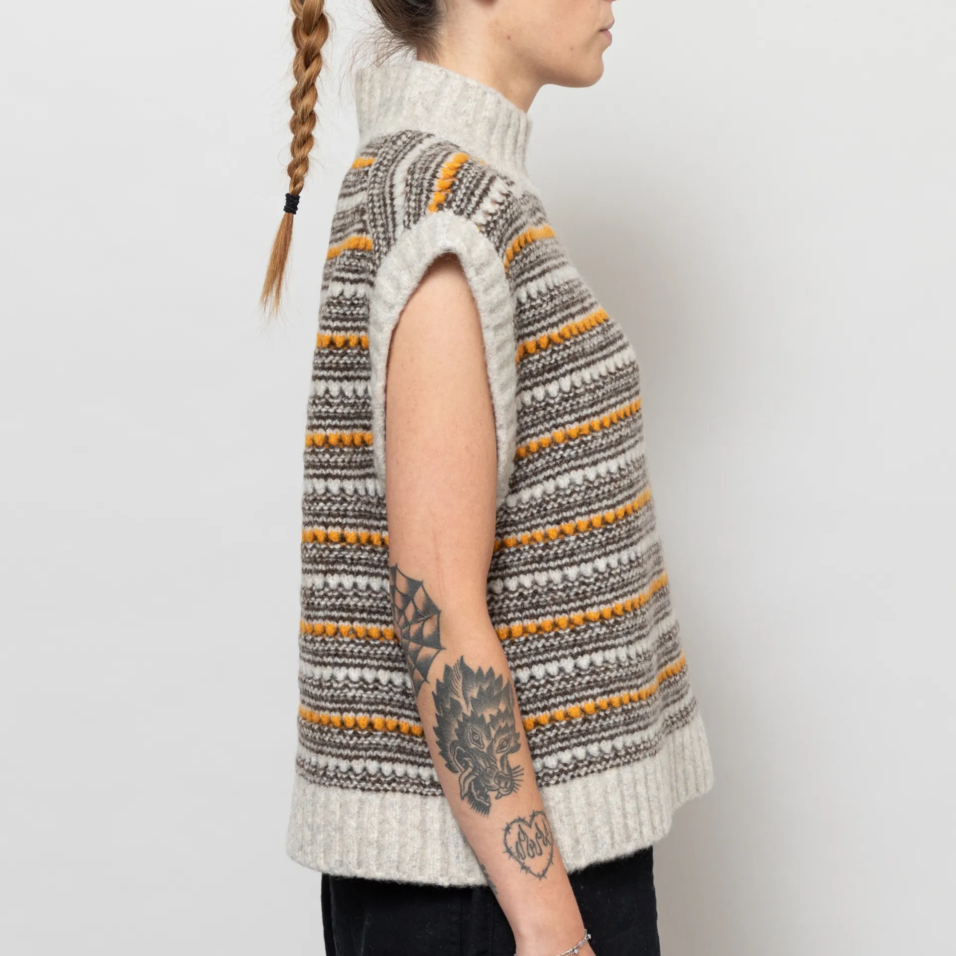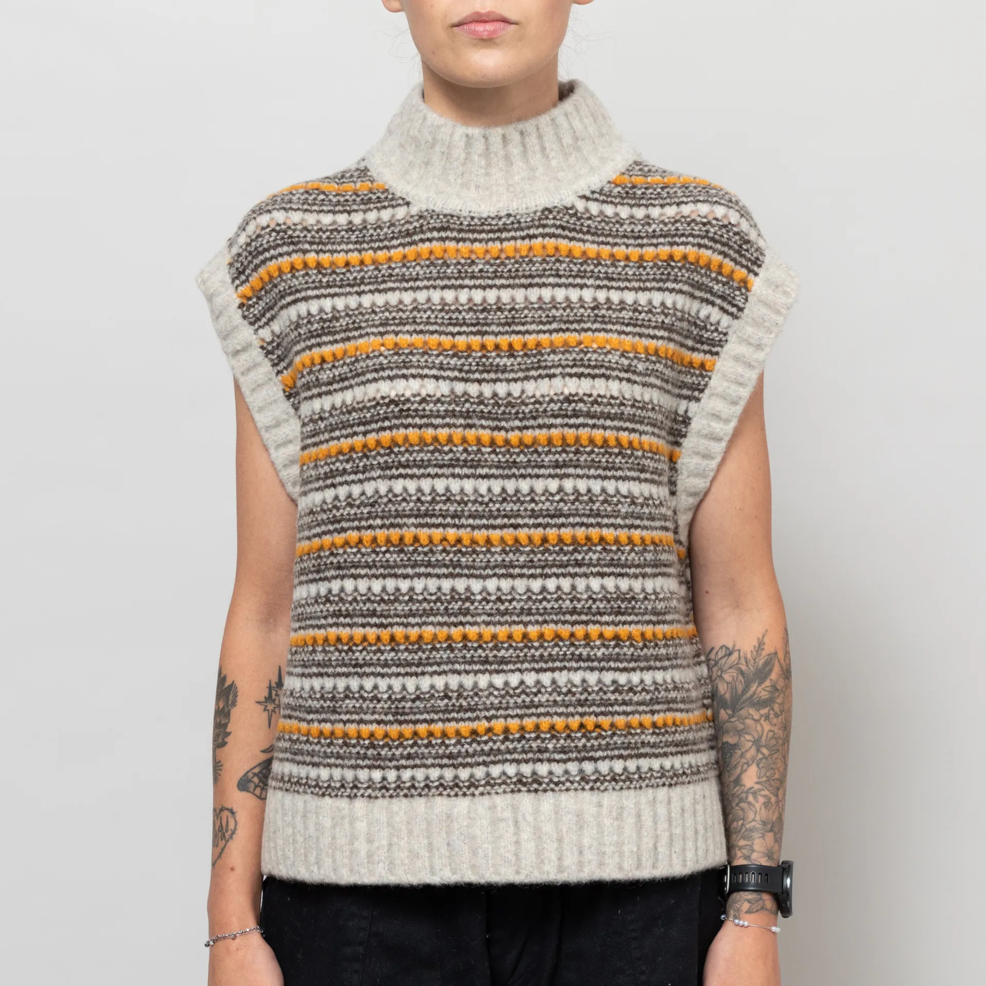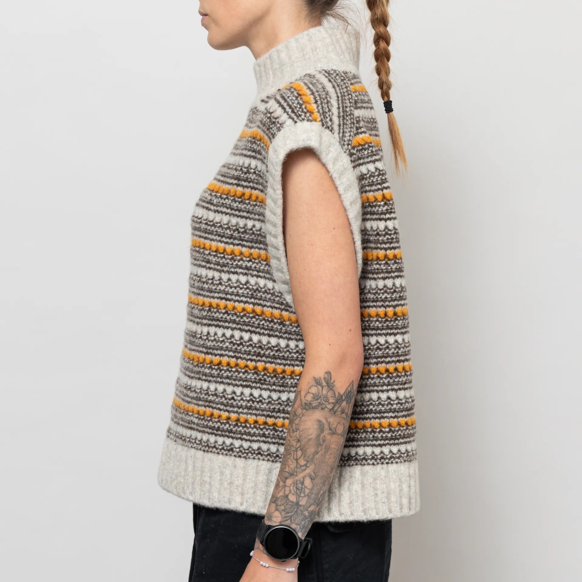 A knitted sweater vest from Basic Apparel, constructed from a soft and warm blend of polyamide, viscose, wool and cashmere. It's cut in a loose fit and drapes nicely over the shoulders, with a traditional all-over pattern and ribbed trims.