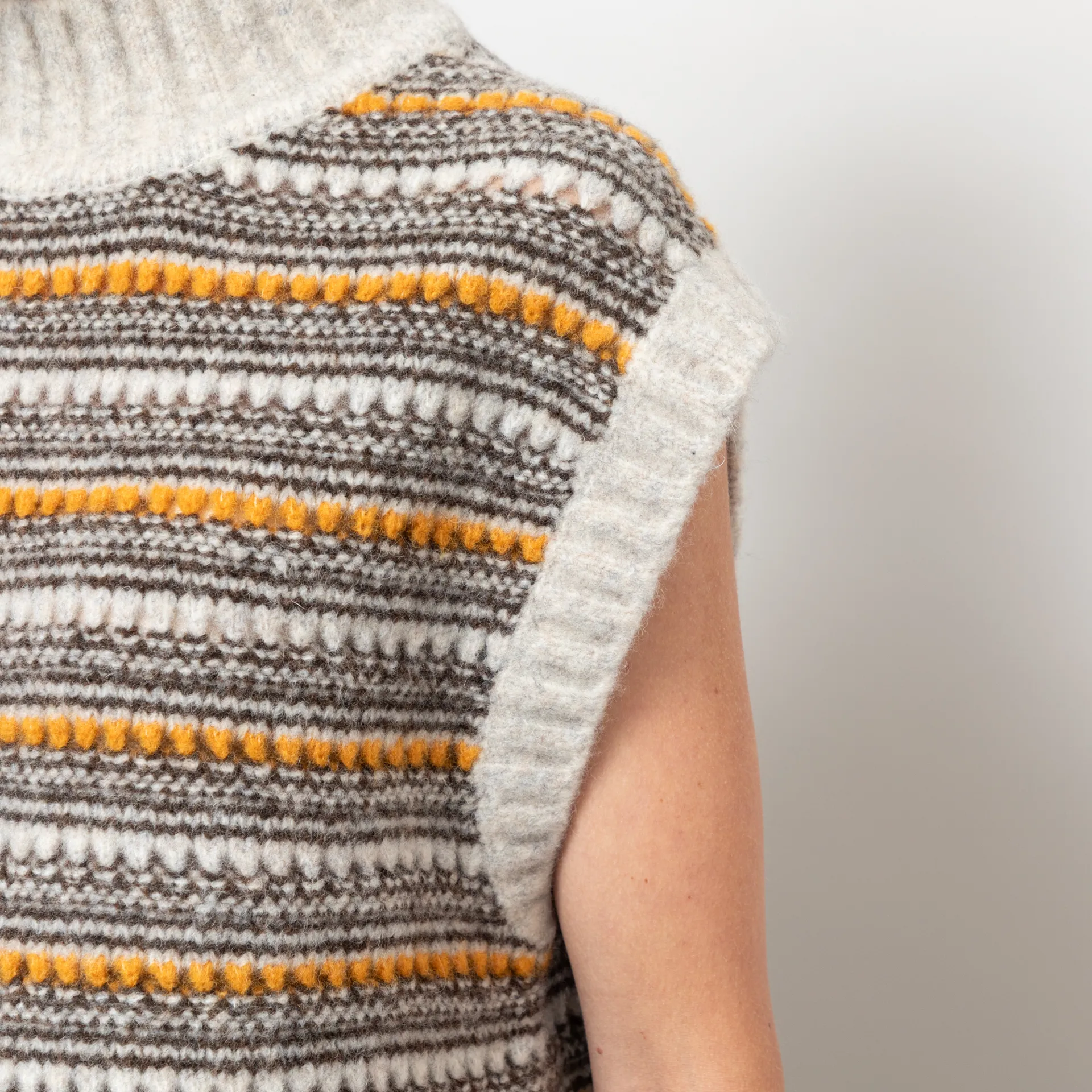 A knitted sweater vest from Basic Apparel, constructed from a soft and warm blend of polyamide, viscose, wool and cashmere.