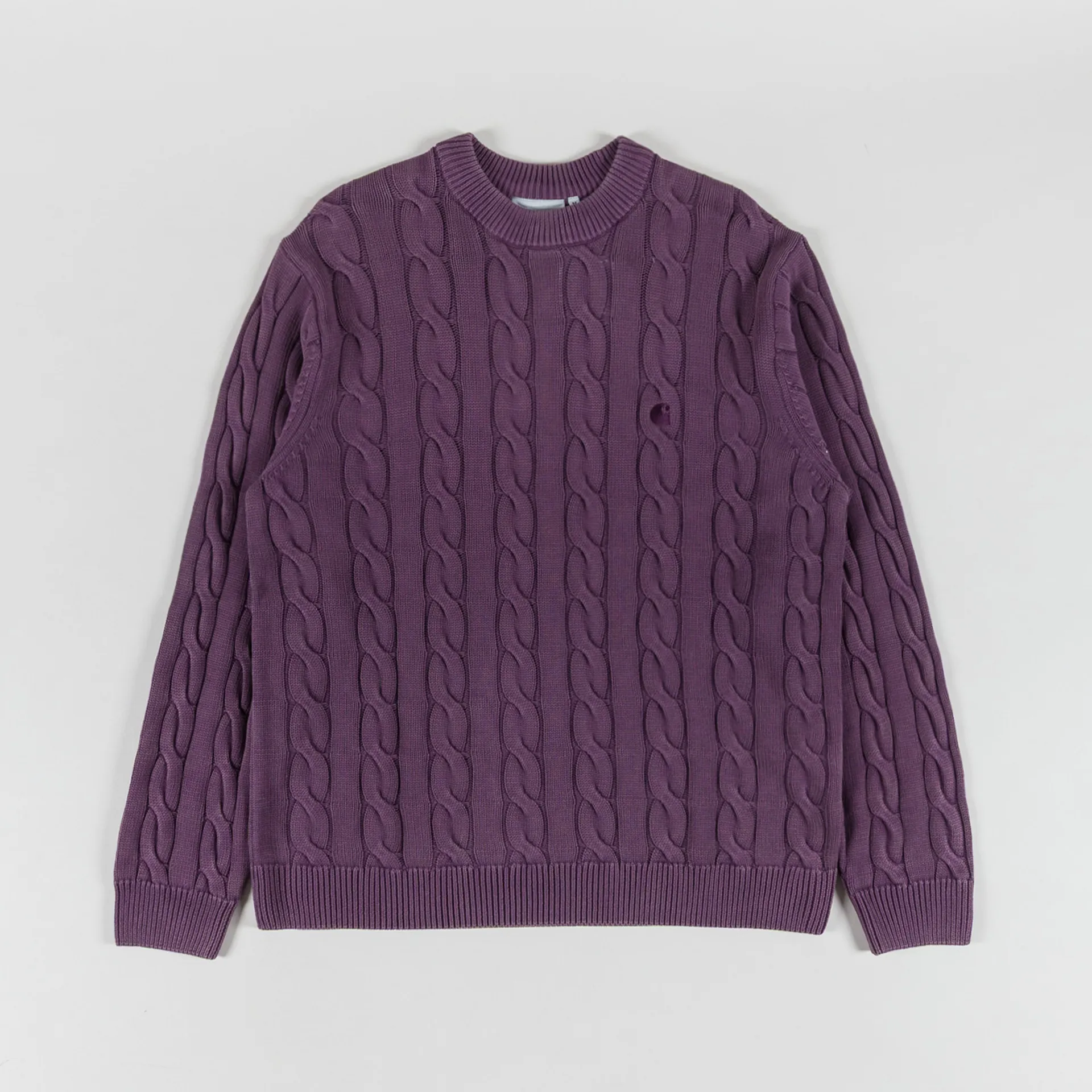 The Carter Sweater from Carhartt WIP is cut in a relaxed fit for a casual silhouette. It has been constructed from 100% cotton yarn in a cable-knit design, over-dyed for a unique look and more complex colour configuration. It features a ribbed crewneck, hem and cuffs, with a tonal embroidered 'C' logo to the chest.
