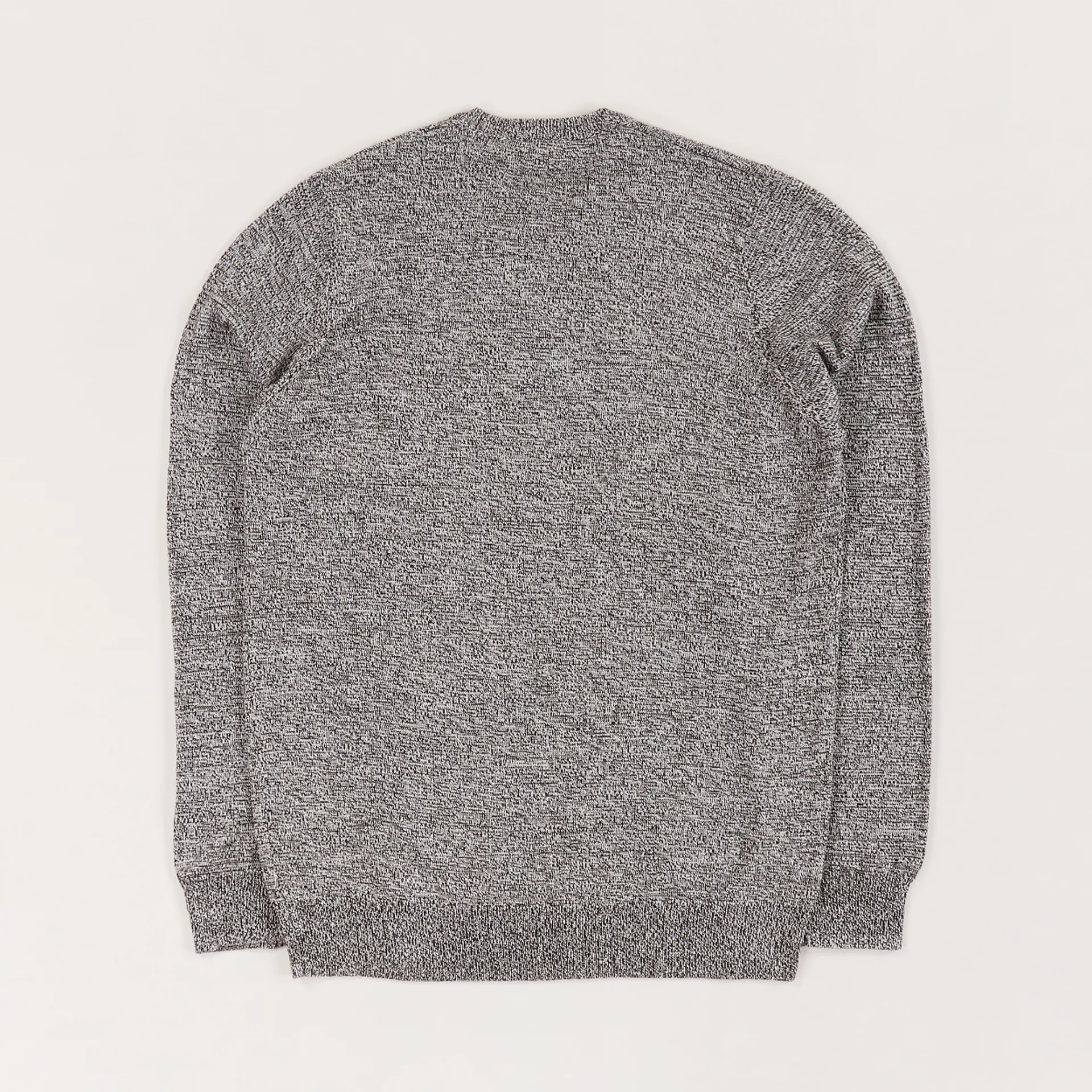 A simple knitted sweater made from a 50/50% blend of cotton and acrylic. It's warm, comfortable and lightweight and has a ribbed crew neck, hem and cuffs and a woven logo patch sewn to the hem.