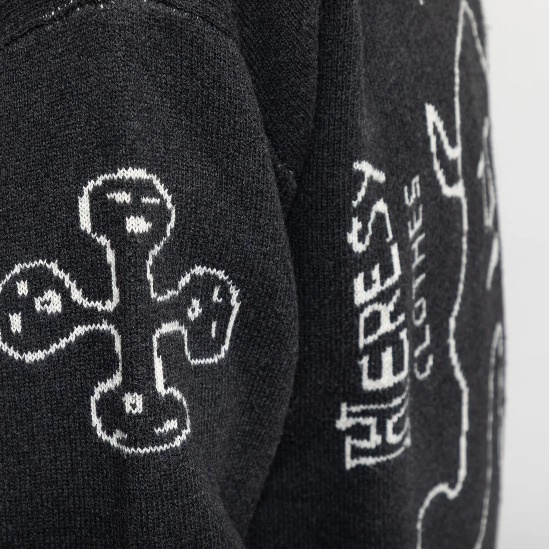 A knitted jumper from Heresy, cut in a relaxed fit for a casual silhouette and constructed from 100% cotton brushed yarn with all-over 'plague' graphics.