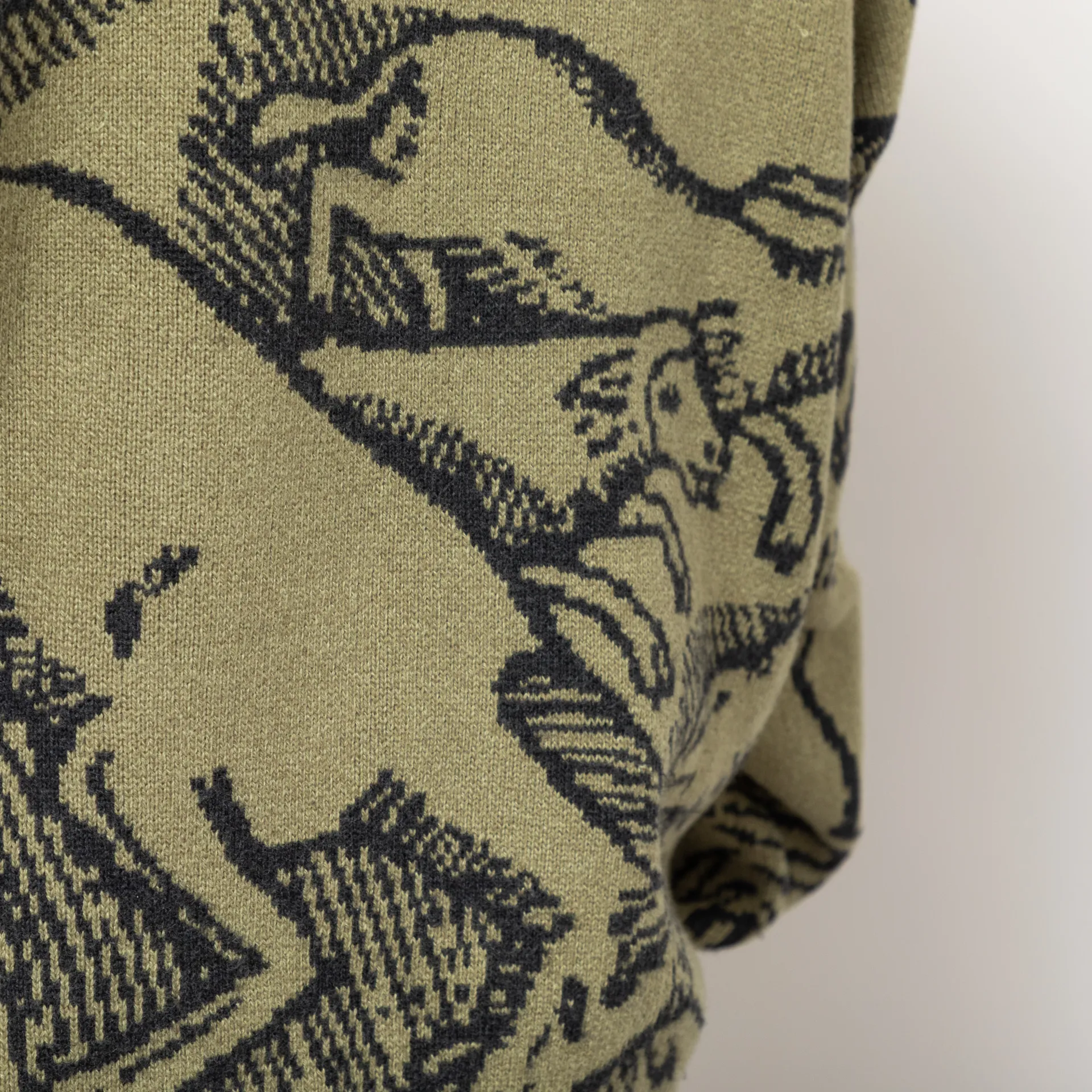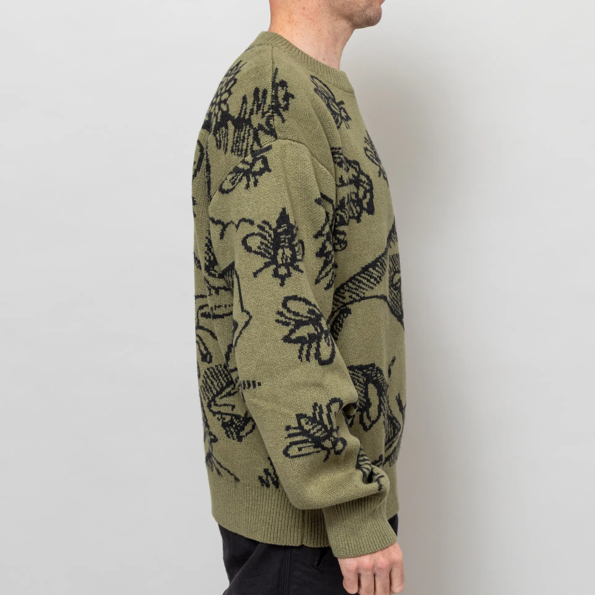 A knitted jumper from Heresy, cut in a relaxed fit for a casual silhouette and constructed from 100% cotton brushed yarn with all-over 'plague' graphics.