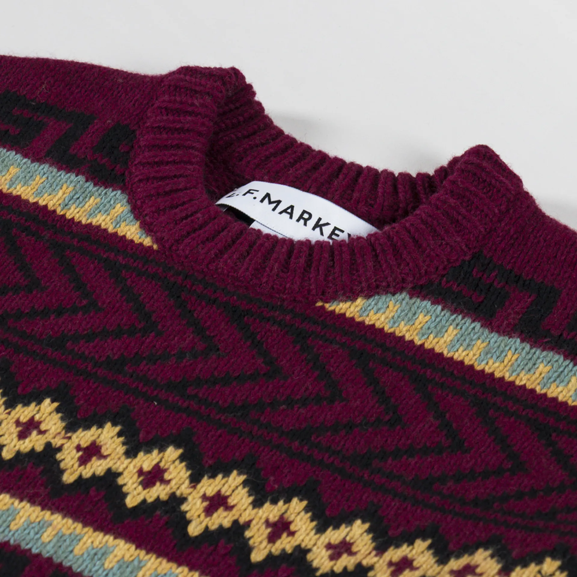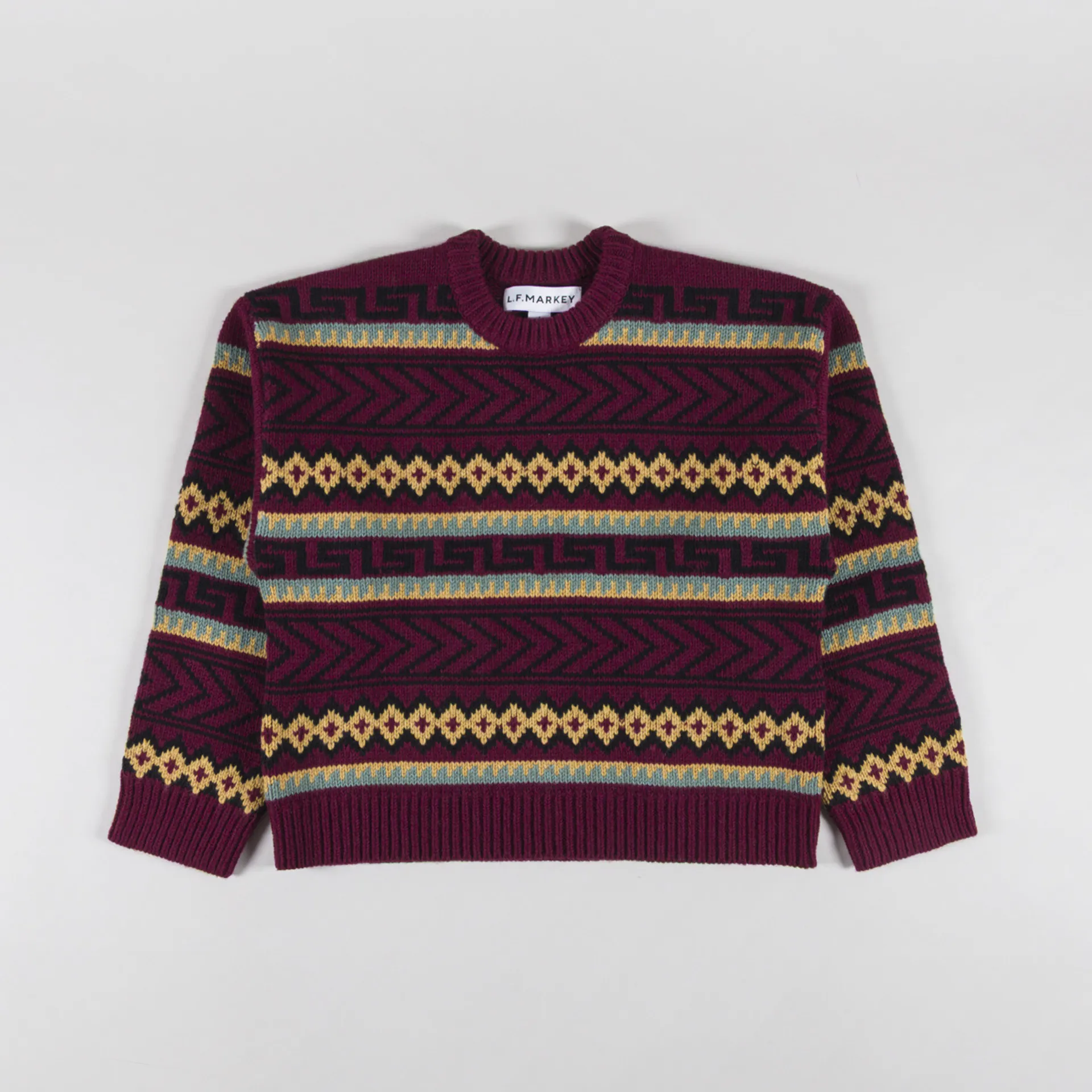 L.F. Markey Womens Bjorn Knit Burgundy Intarsia