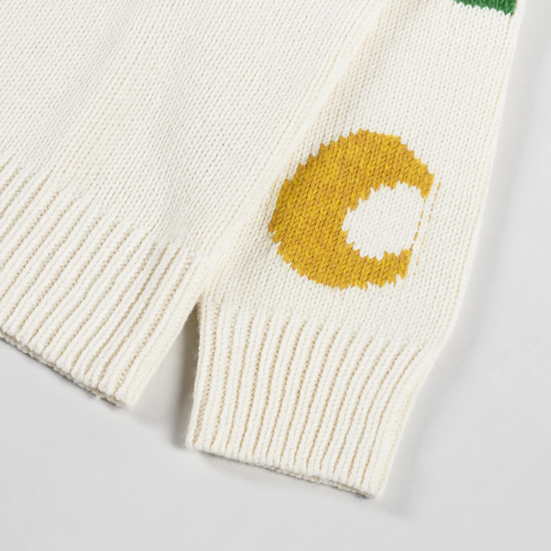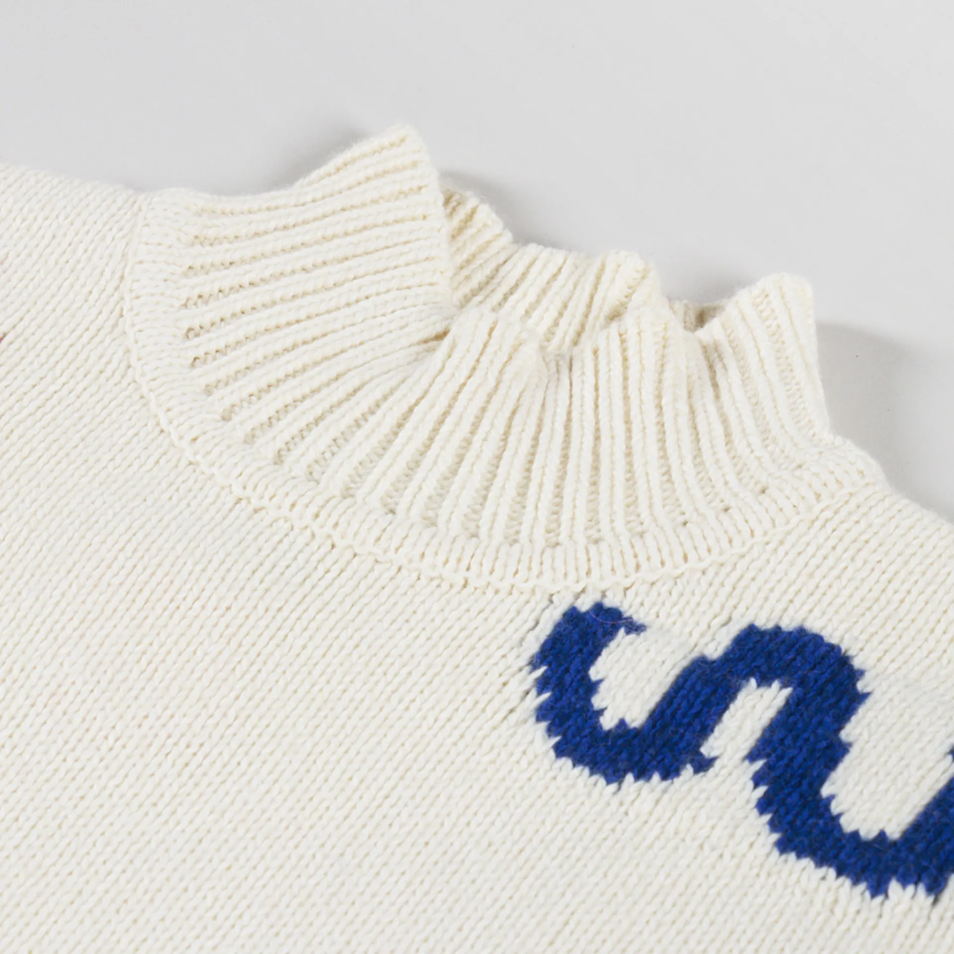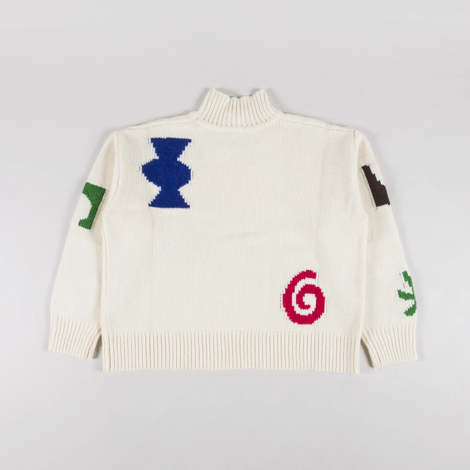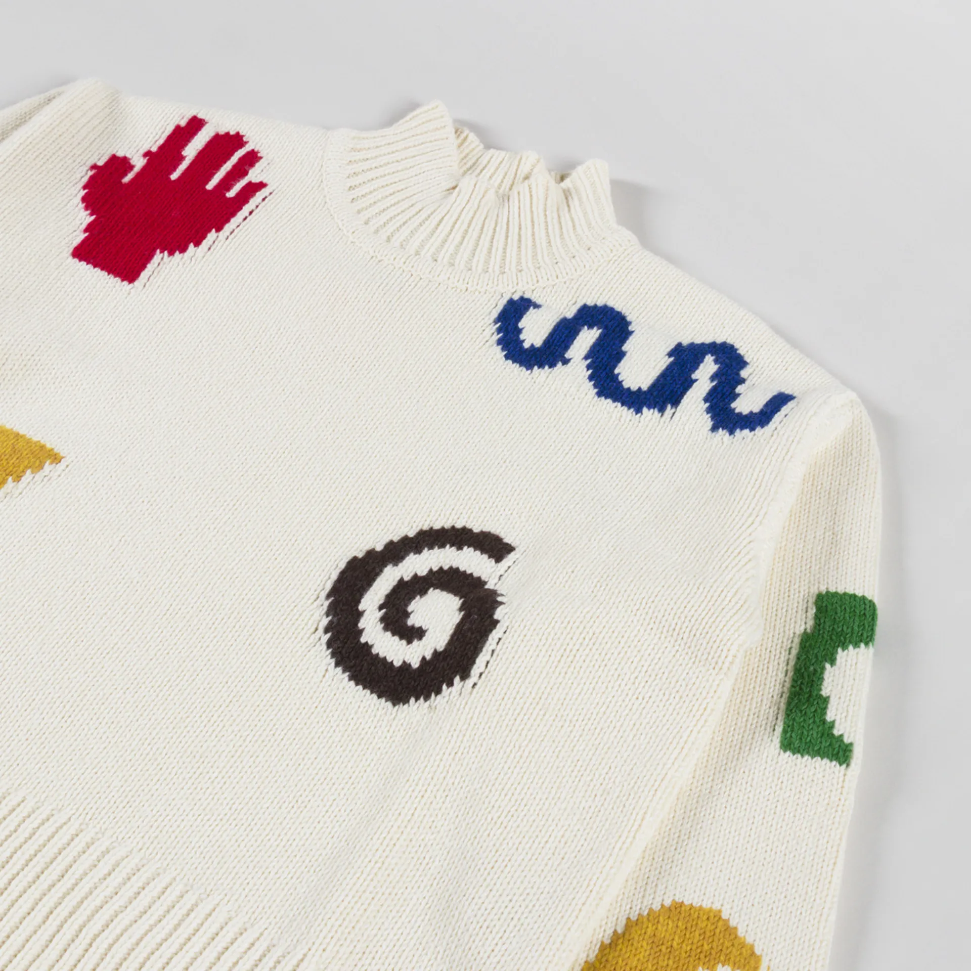 A knitted sweater from L.F. Markey, constructed from a soft wool blend and cut in a relaxed fit for a slouchy silhouette. It features vibrant intarsia motifs throughout, with a ribbed hem and cuffs, then finished with a classic high neckline.